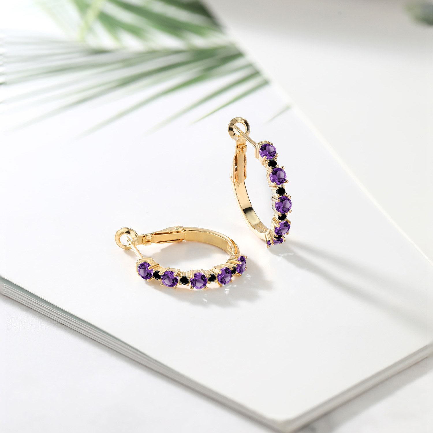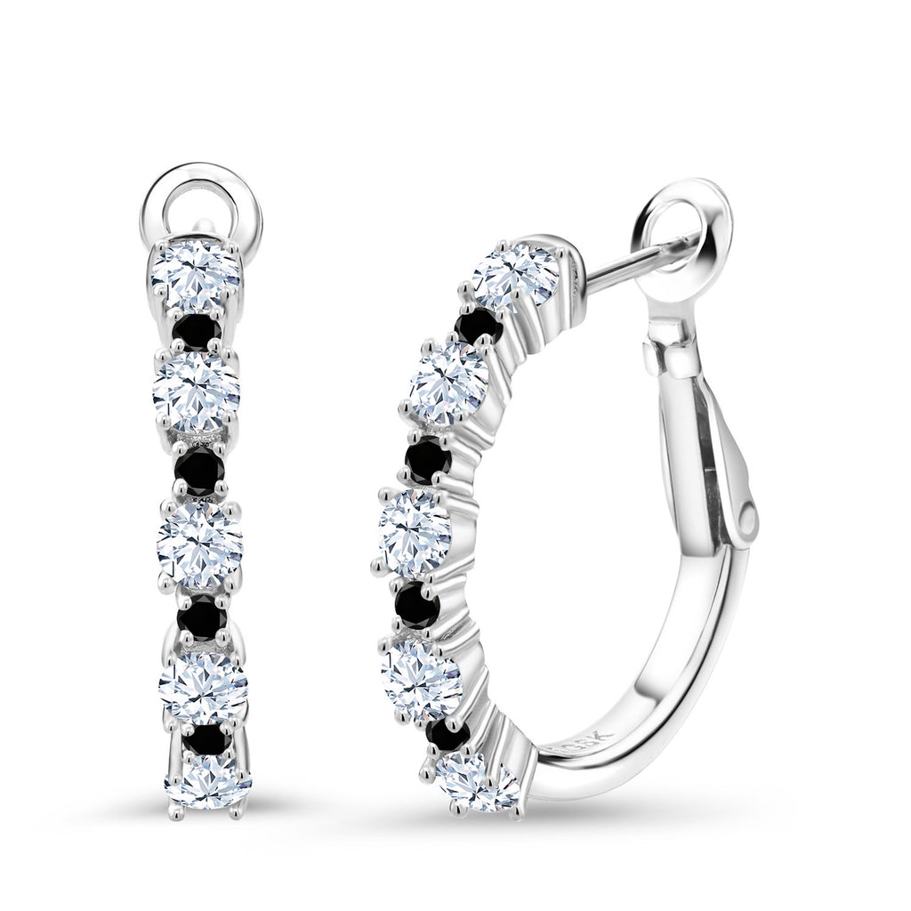 Gemstone Birthstone and Black Diamond Hoop Earrings for Women | 925 Sterling Silver | Round 3MM and 1.8MM | 3/7 Inch Diameter | Fine Jewelry for Her Mom Wife
