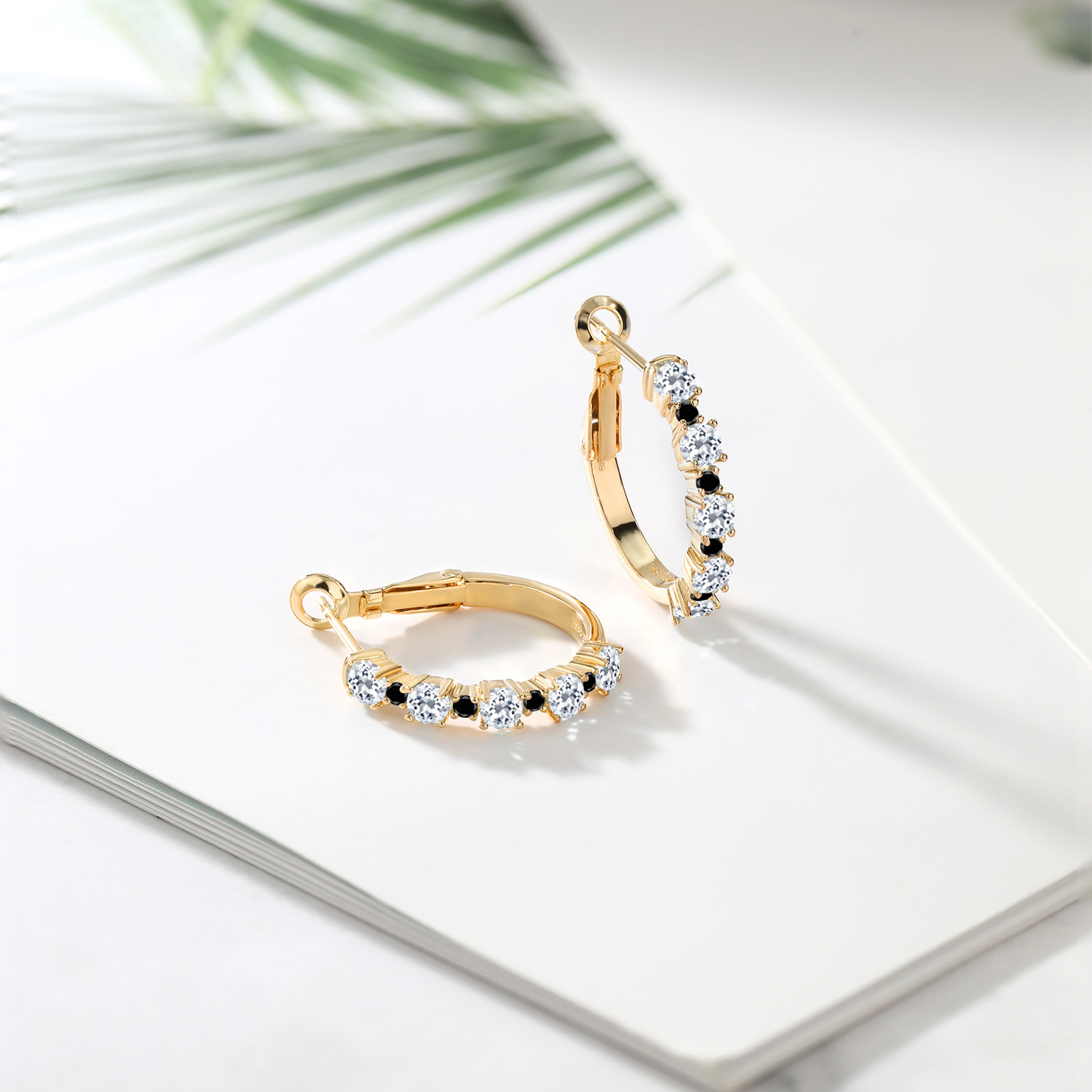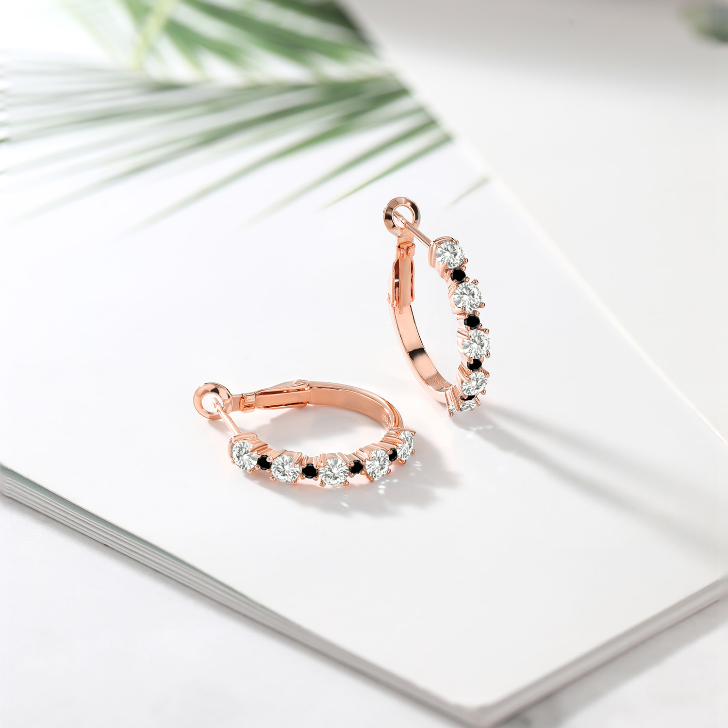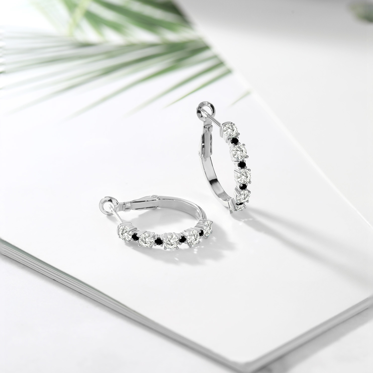 Black Diamond Accents: Each 1.8MM black diamond accent stone adds bold contrast and modern edge to these alternating hoop earrings. Their inky allure creates a sleek, luxurious pattern around the entire curve. Sized at 3/7 inch in diameter, the hoops frame the ear with subtle intensity. Prong settings allow light to reflect off the black diamonds’ natural facets, amplifying their moody brilliance for a daring yet timeless aesthetic.