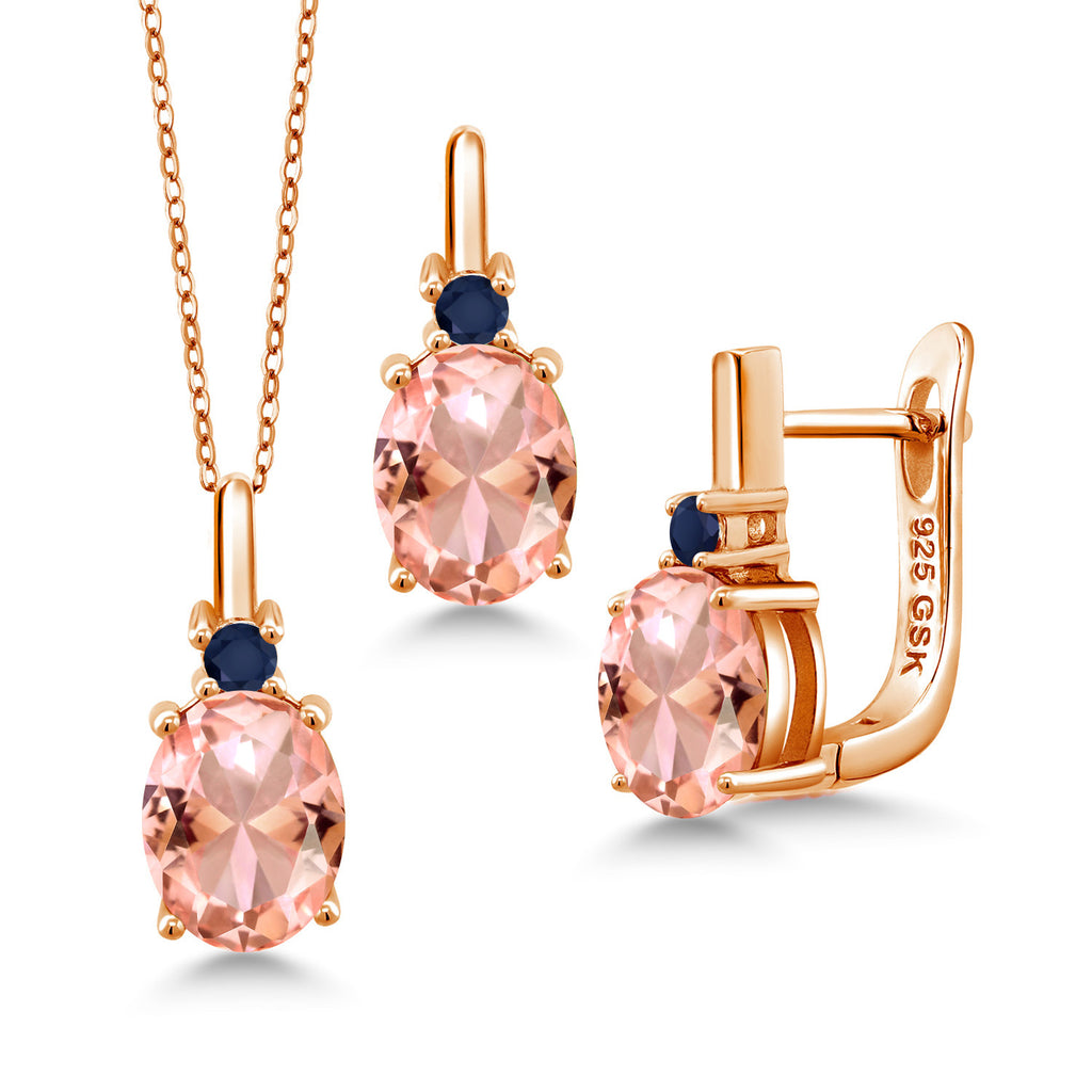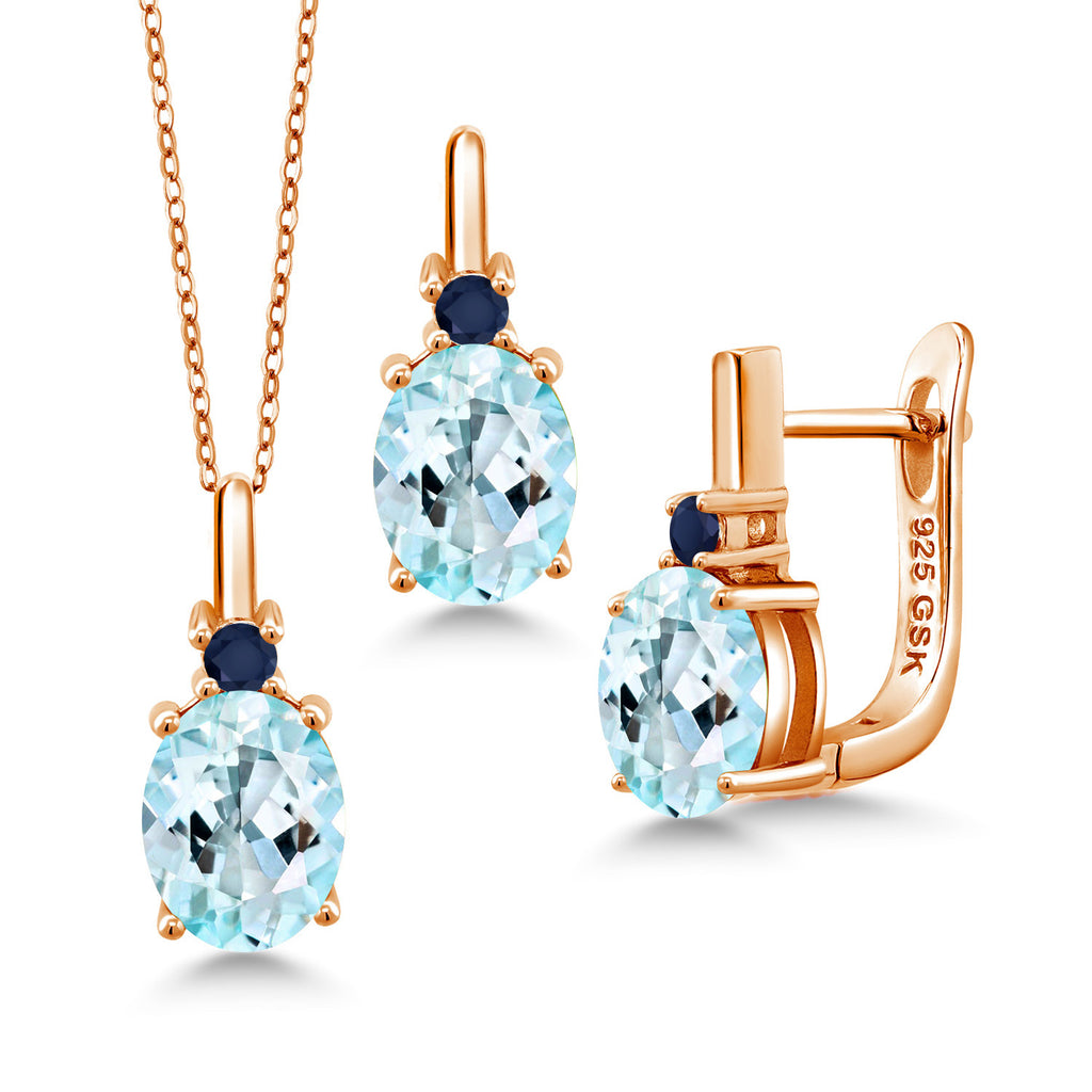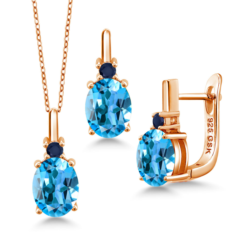 Gemstone Birthstone and Blue Sapphire Pendant and Earrings Jewelry Set for Women in 18K Rose Gold Plated Silver | Oval 8X6MM and Round 2.5MM | With 18 Inch Chain