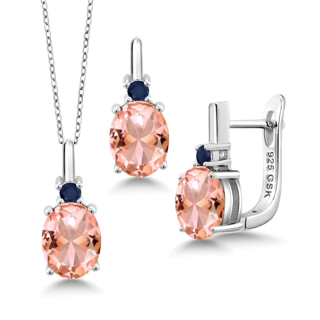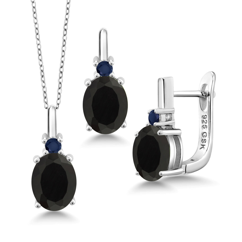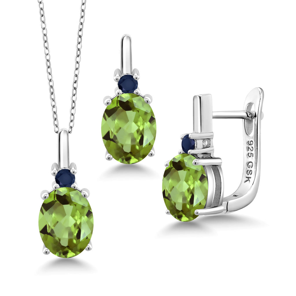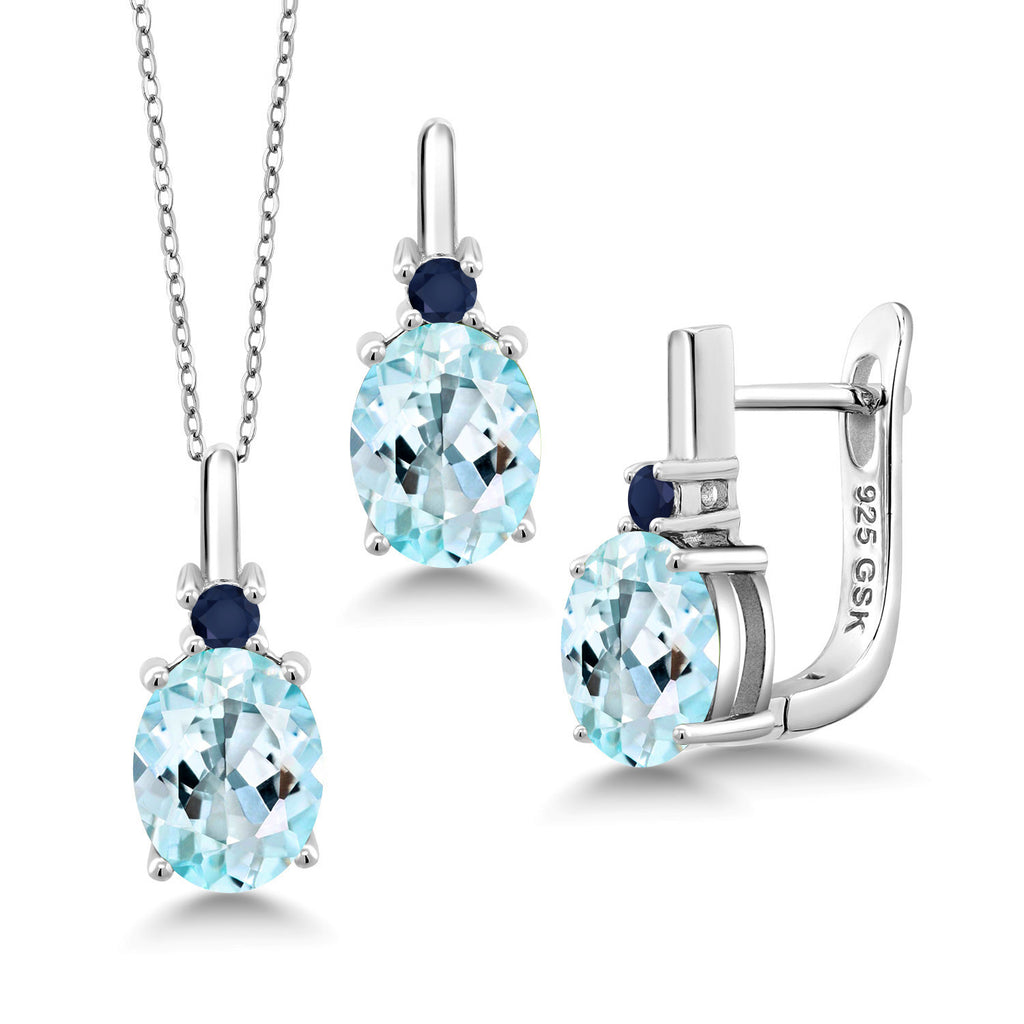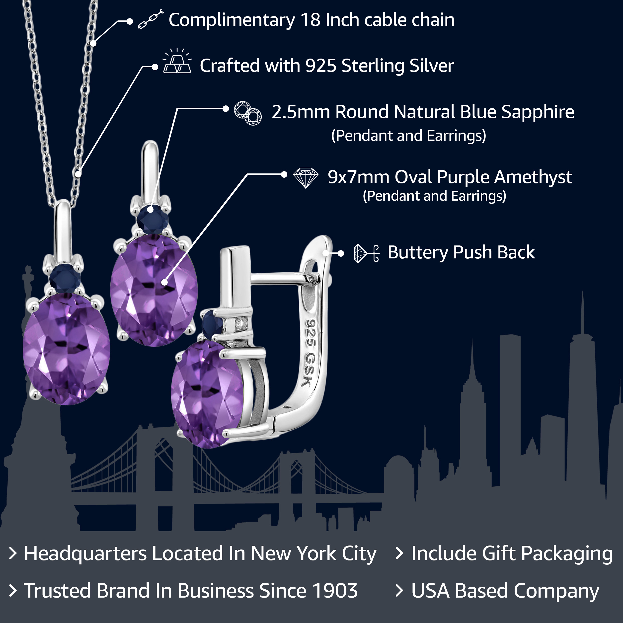Gemstone Birthstone and Blue Sapphire Pendant and Earrings Jewelry Set for Women in 925 Sterling Silver | Oval 8X6MM and Round 2.5MM | Fine Jewelry Set for Her Mom Women Wife | With 18 Inch Chain