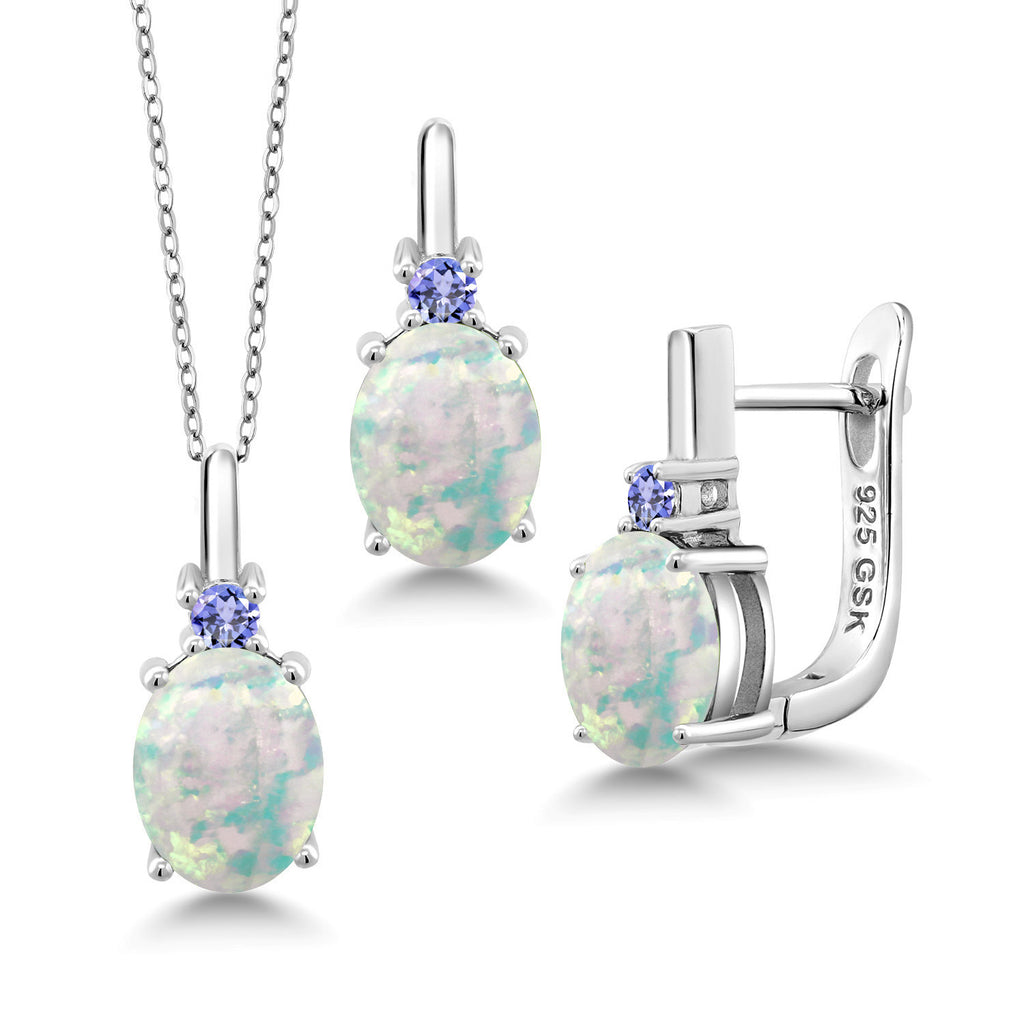 Gemstone Birthstone and Blue Tanzanite Pendant and Earrings Jewelry Set for Women | 925 Sterling Silver | Oval 8X6MM and Round 2.5MM | Fine Jewelry Set for Her Mom Women Wife | With 18 Inch Chain