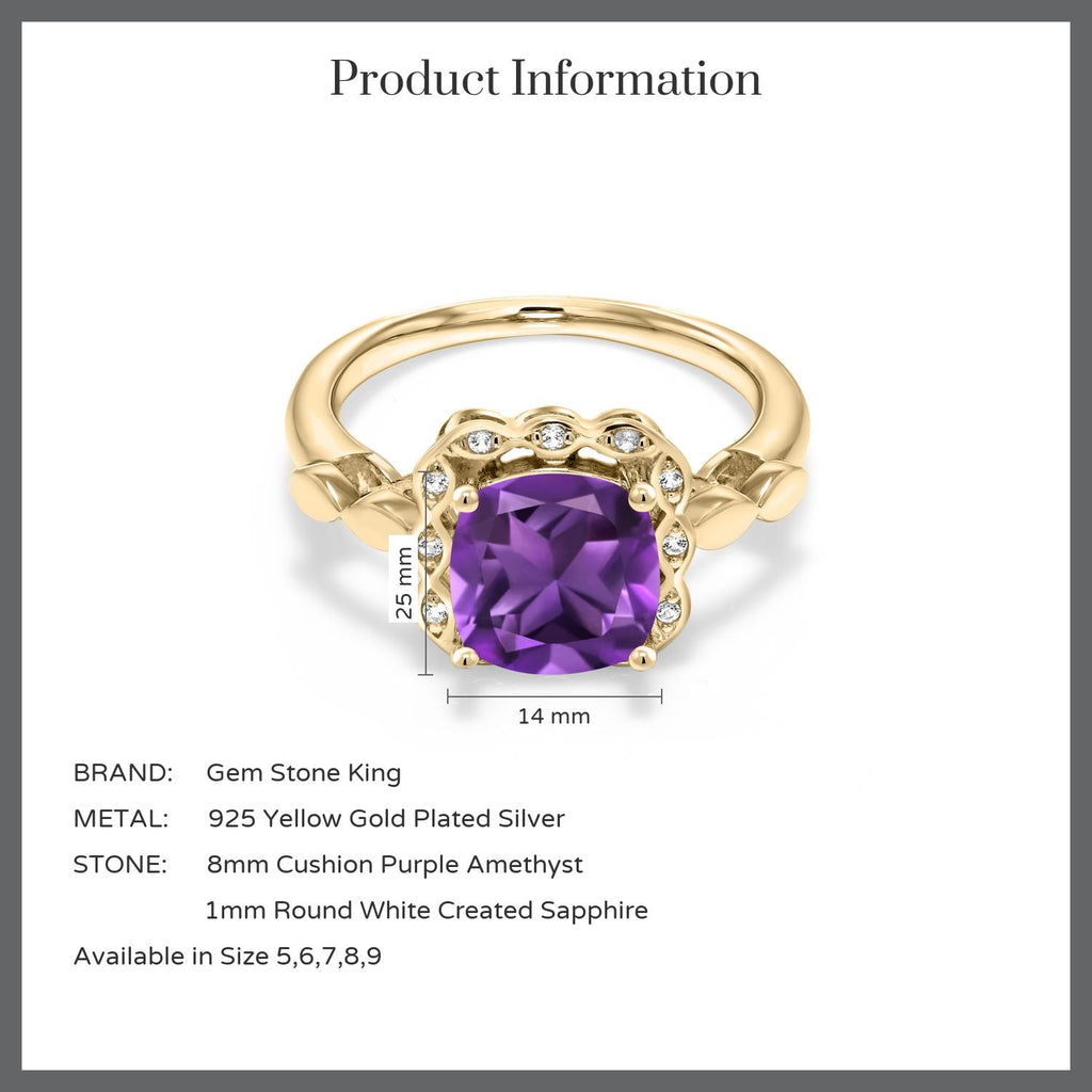2-Tone Engagement Ring For Women | 925 Silver and 10K Yellow Gold | Gemstone Birthstone | 6MM Cushion Cut | Wedding Anniversary Promise Ring | Available In Size 5, 6, 7, 8, 9