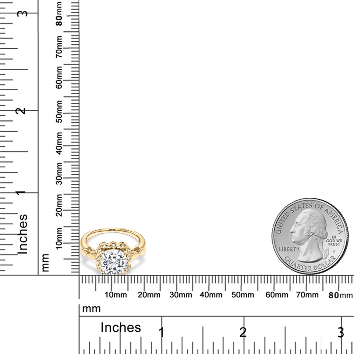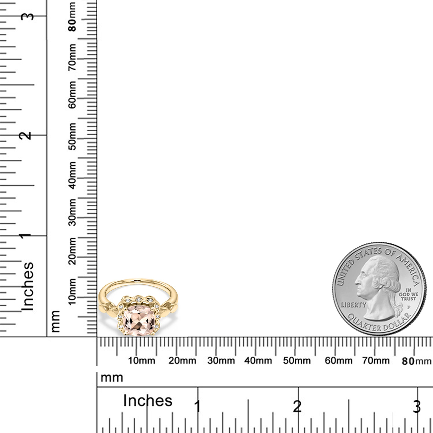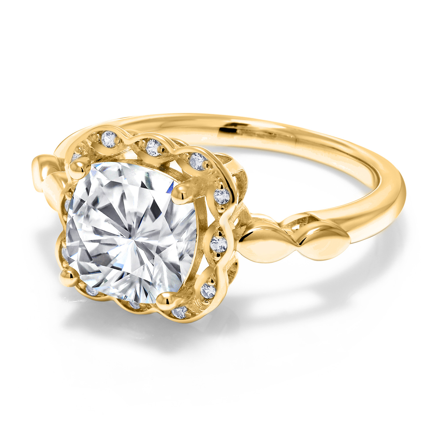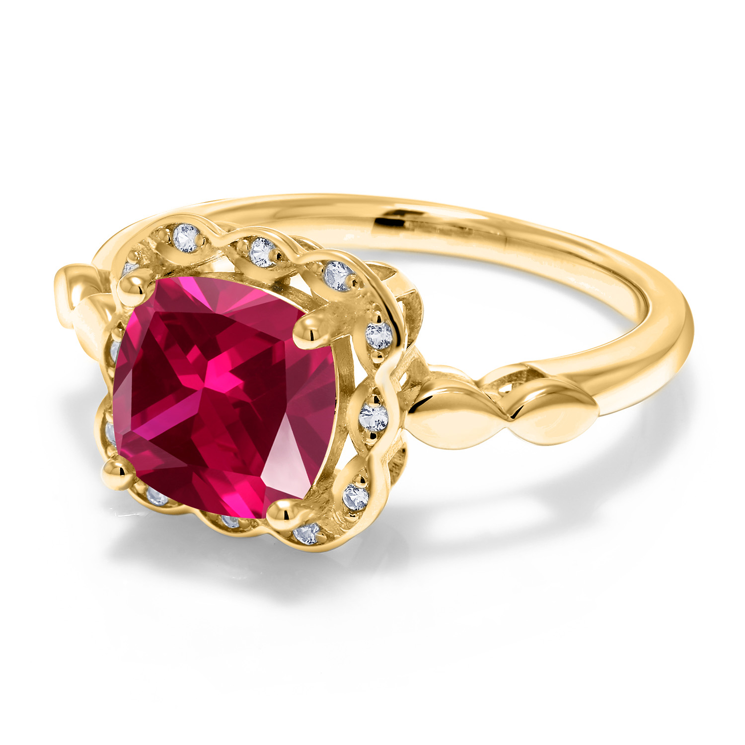 SPARKLING WHITE CREATED SAPPHIRE ACCENTS: Encircling the main gemstone are brilliant white created sapphires that mimic the clarity and sparkle of diamonds. These accents enhance the central stone's beauty and add a touch of elegance and luxury to the overall design.
