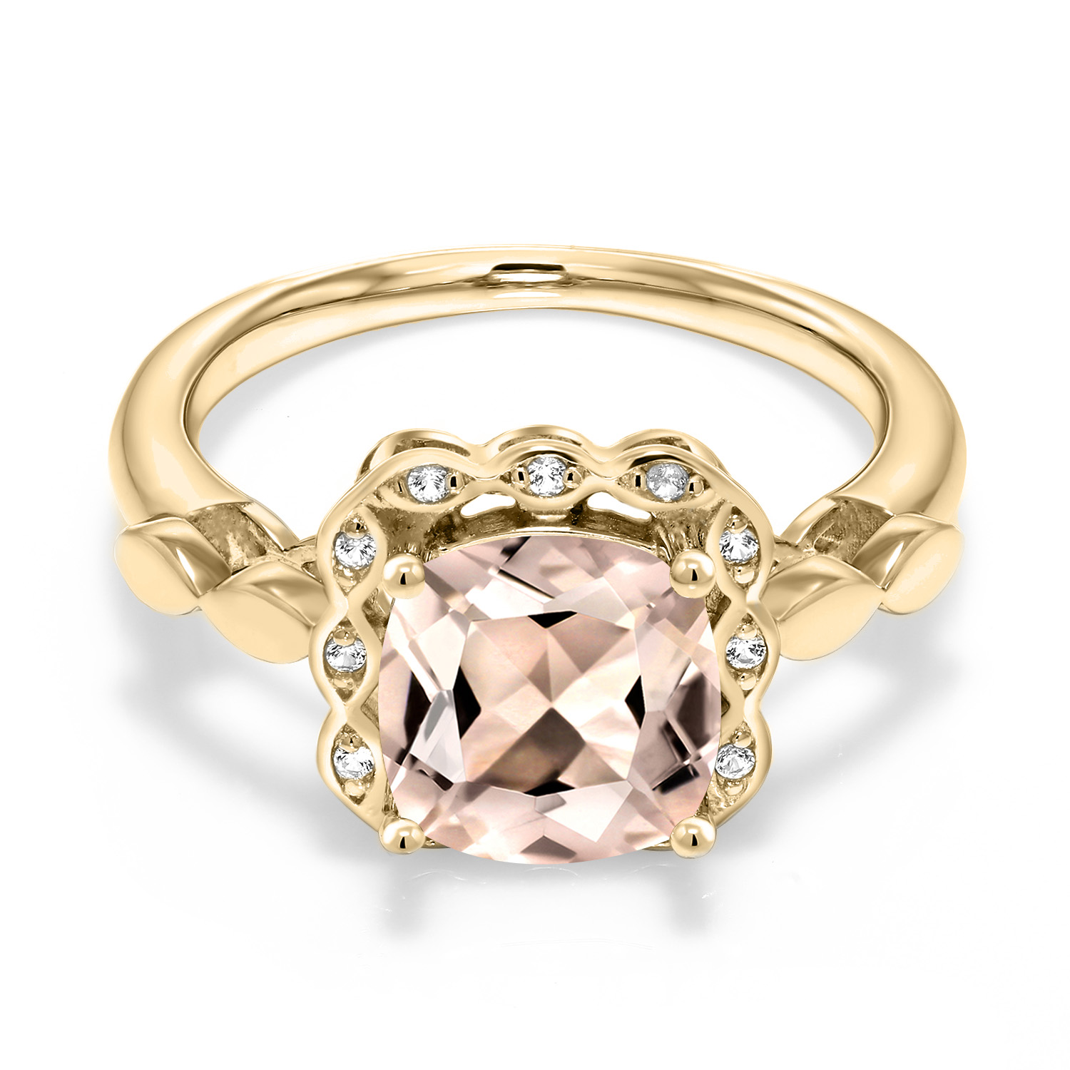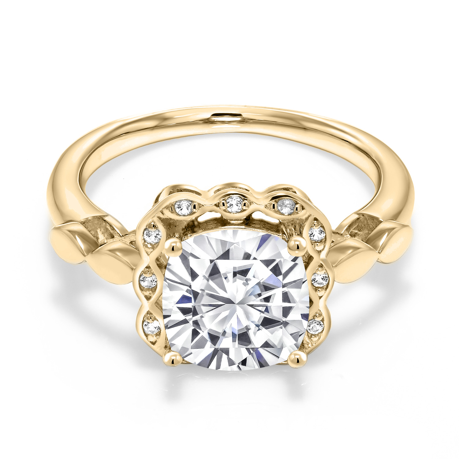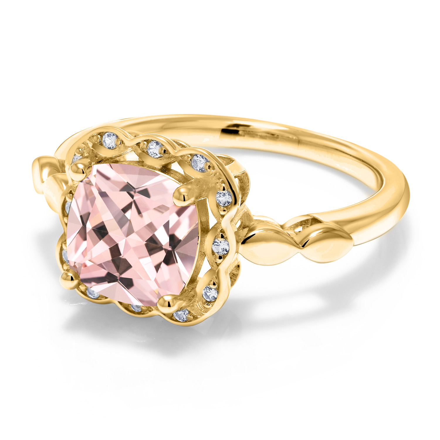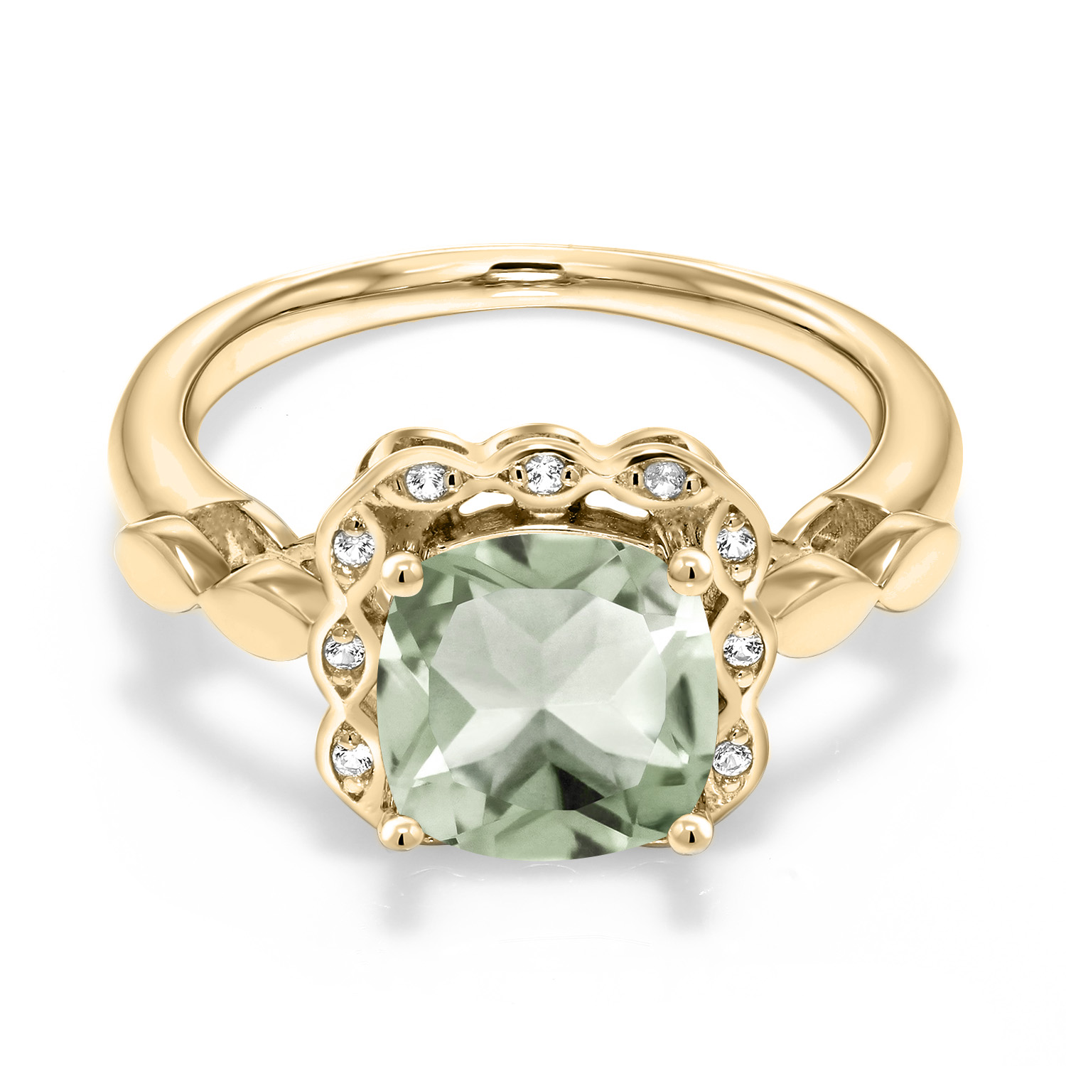 SPARKLING WHITE CREATED SAPPHIRE ACCENTS: Encircling the main gemstone are brilliant white created sapphires that mimic the clarity and sparkle of diamonds. These accents enhance the central stone's beauty and add a touch of elegance and luxury to the overall design.