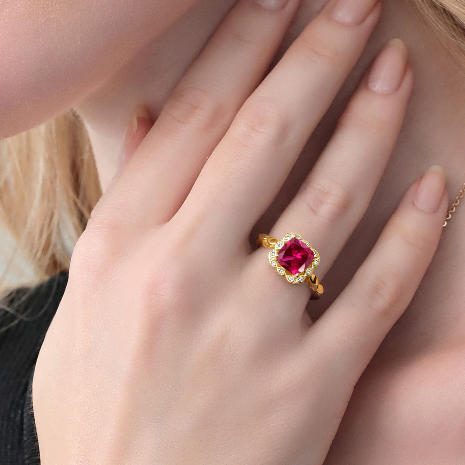 RICH 18K YELLOW GOLD PLATING: The 925 sterling silver base is enhanced with a lavish 18K yellow gold plating, providing a warm, rich hue that complements the gemstones beautifully. This sophisticated plating not only increases the ring’s allure but also ensures durability and tarnish resistance.