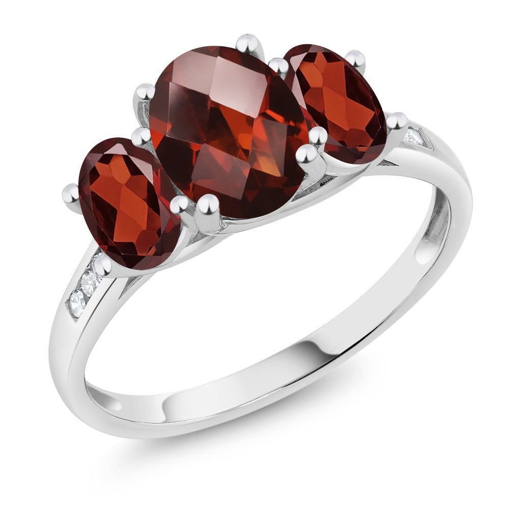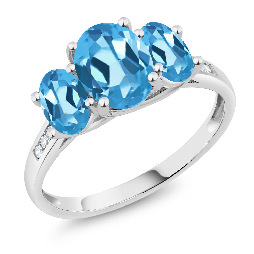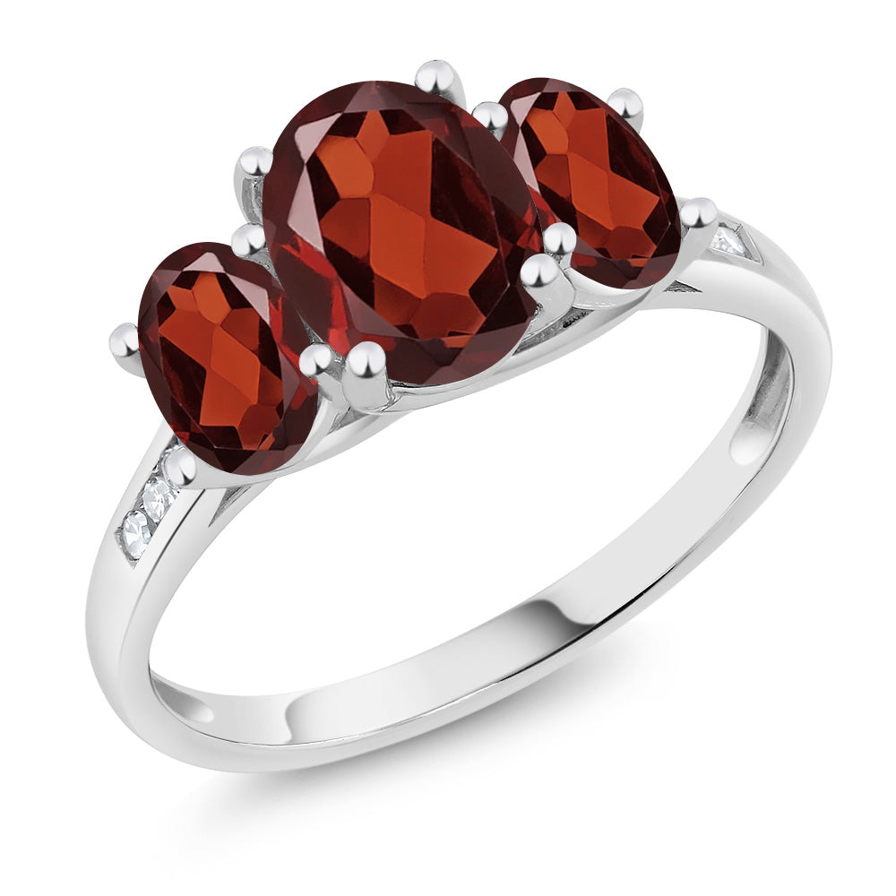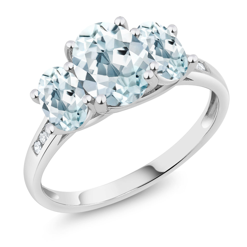 10K White Gold Gemstone Birthstone and Diamond Accent 3-Stone Engagement Ring for Women | Oval 8X6MM and 6X4MM | Three Stone Wedding Anniversary Promise Ring | Size 5-9