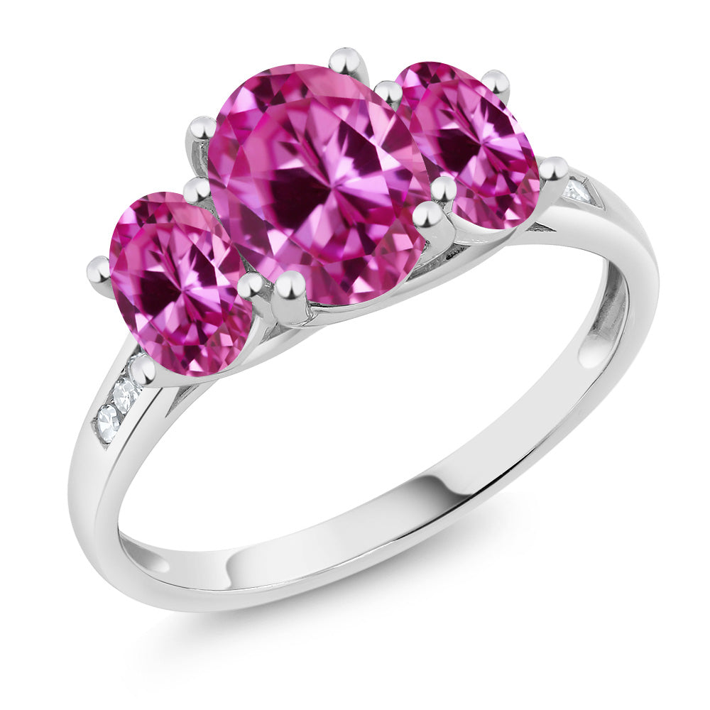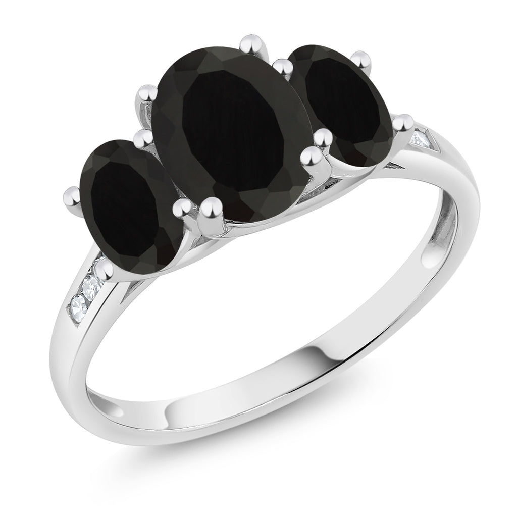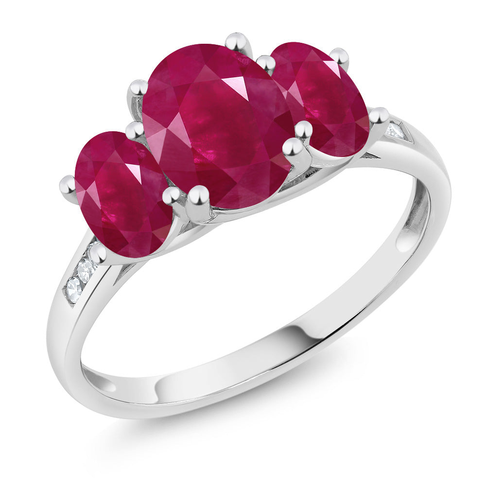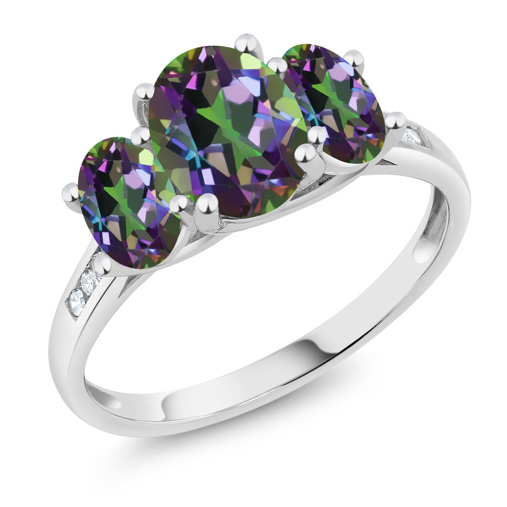 10K White Gold Gemstone Birthstone and Diamond Accent 3-Stone Engagement Ring for Women | Oval 8X6MM and 6X4MM | Three Stone Wedding Anniversary Promise Ring | Size 5-9