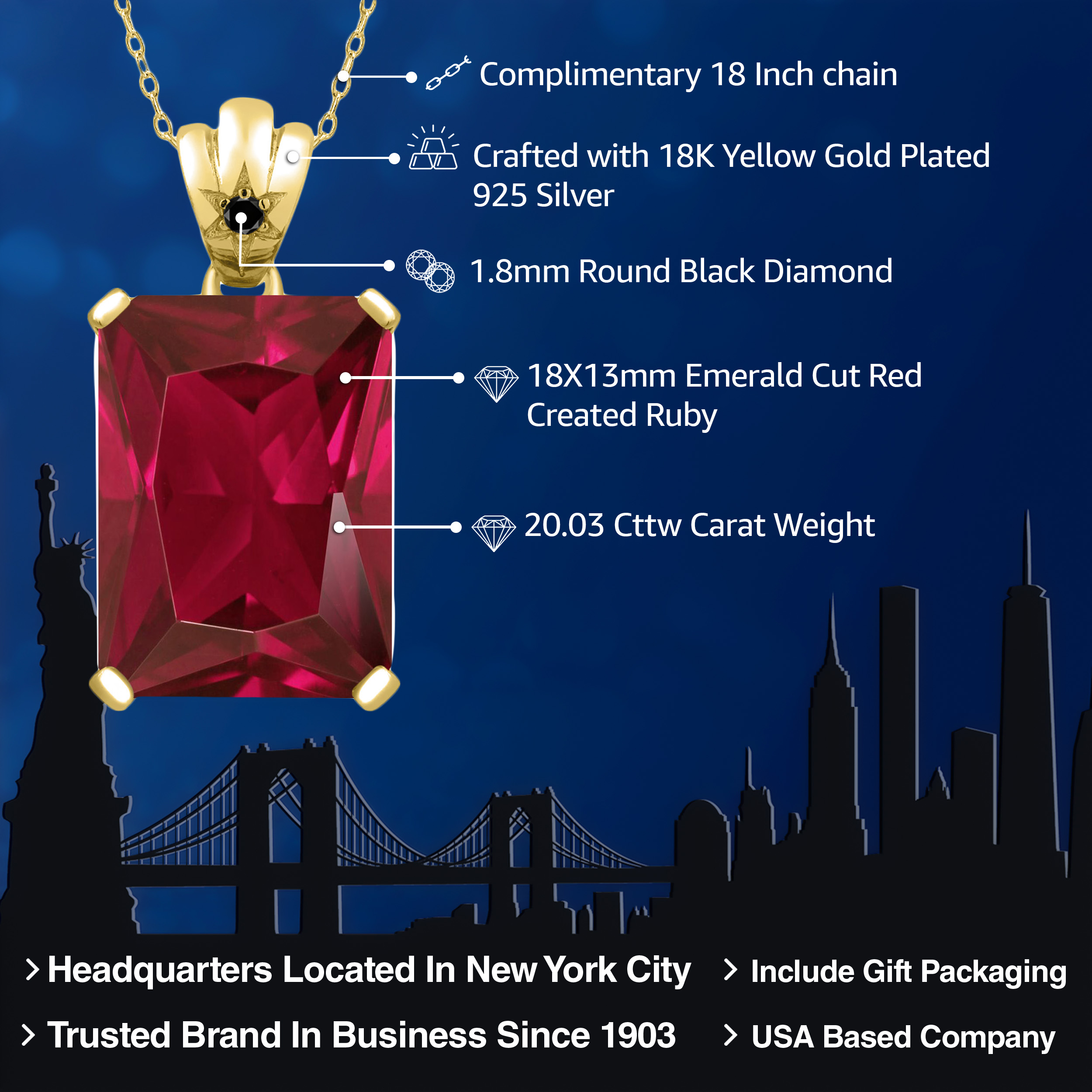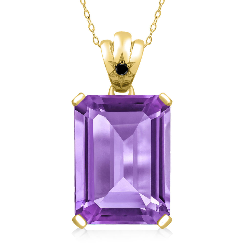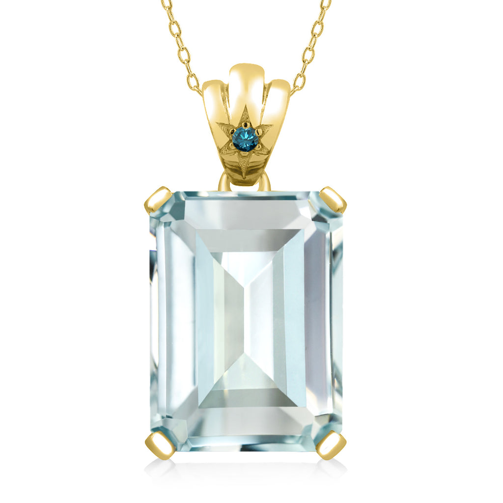 Gemstone Birthstone and Diamond Pendant Necklace in 18K Yellow Gold Plated Silver | Emerald Cut 18X13MM Center Stone & Round 1.8MM Accent | Fine Jewelry Gifts for Her Mom Women Wife | 18 Inch Chain