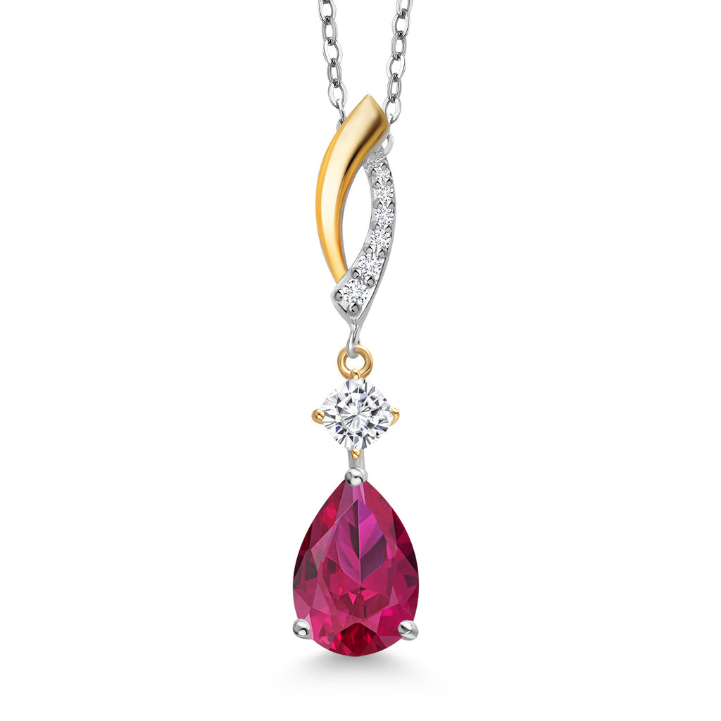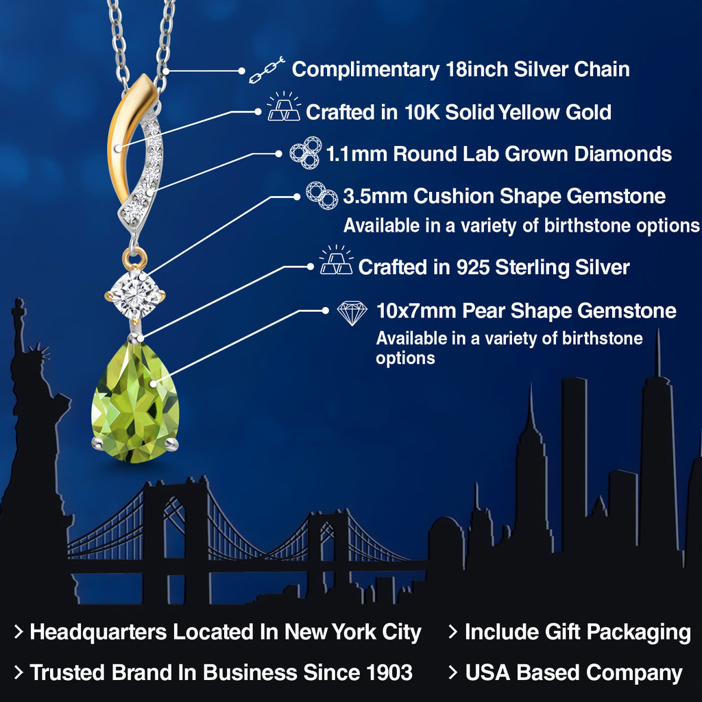 STUNNING GEMSTONE BIRTHSTONE PENDANT: This elegant drop necklace features a vibrant 10x7MM pear-shaped gemstone, representing your birthstone with vivid color and brilliance, beautifully accented by sparkling lab-grown diamonds for added sophistication.