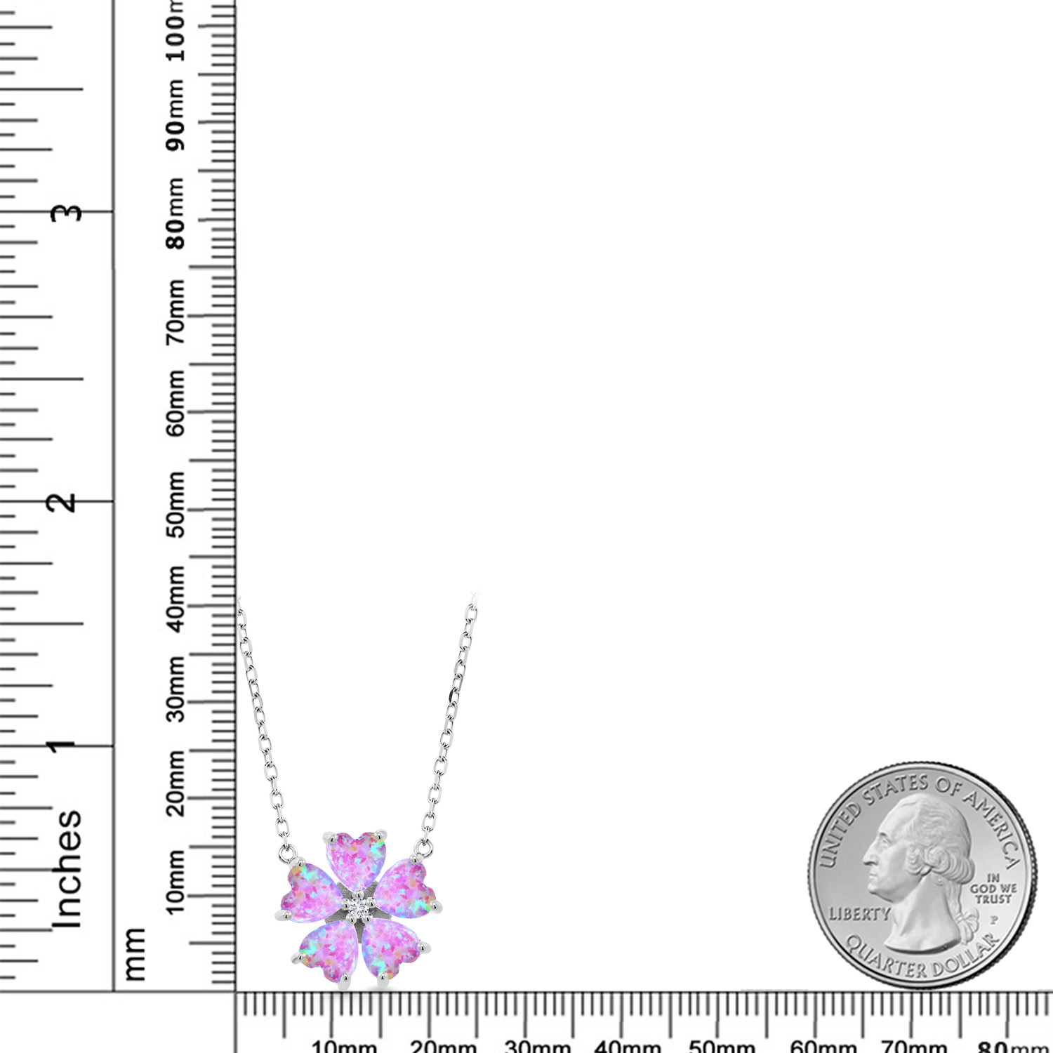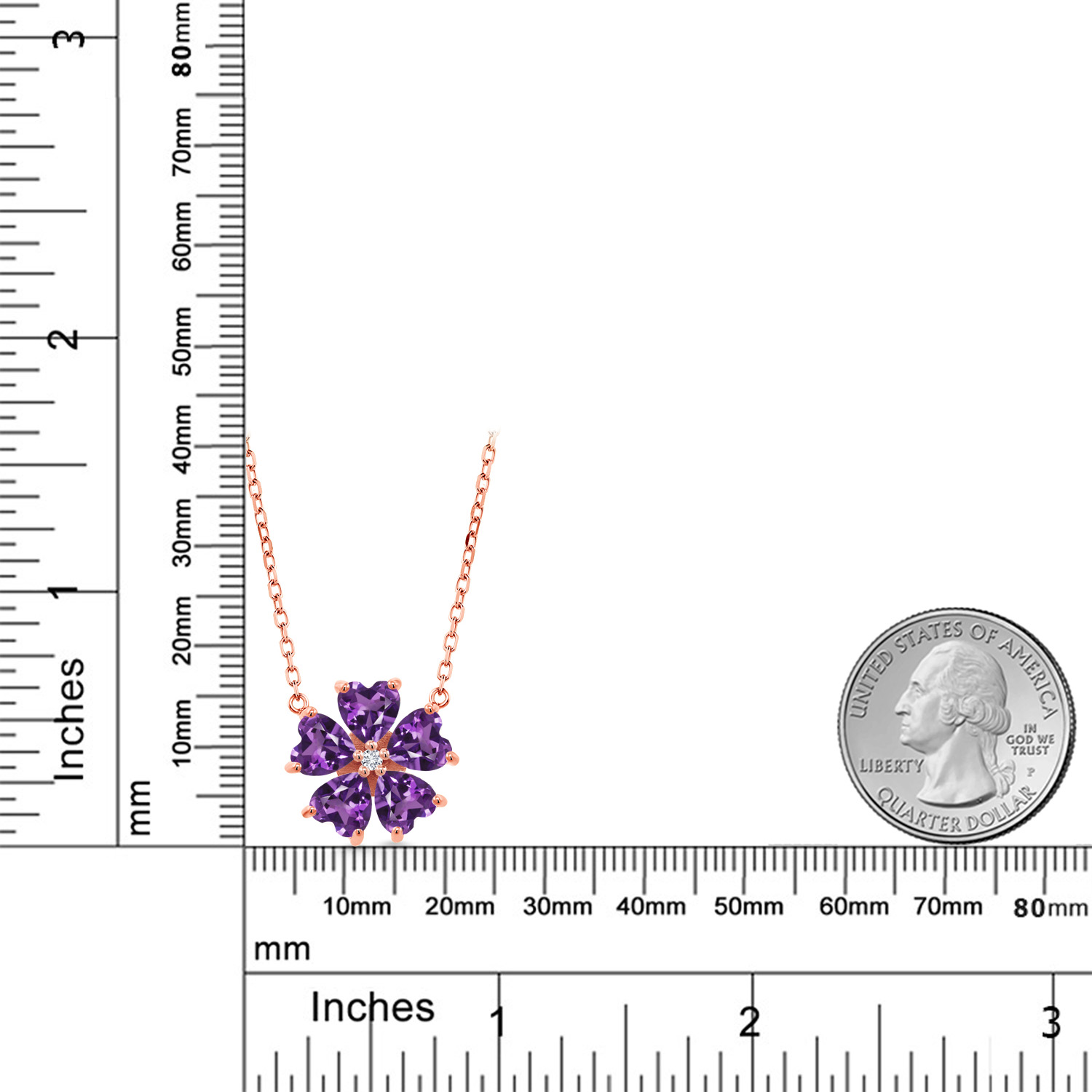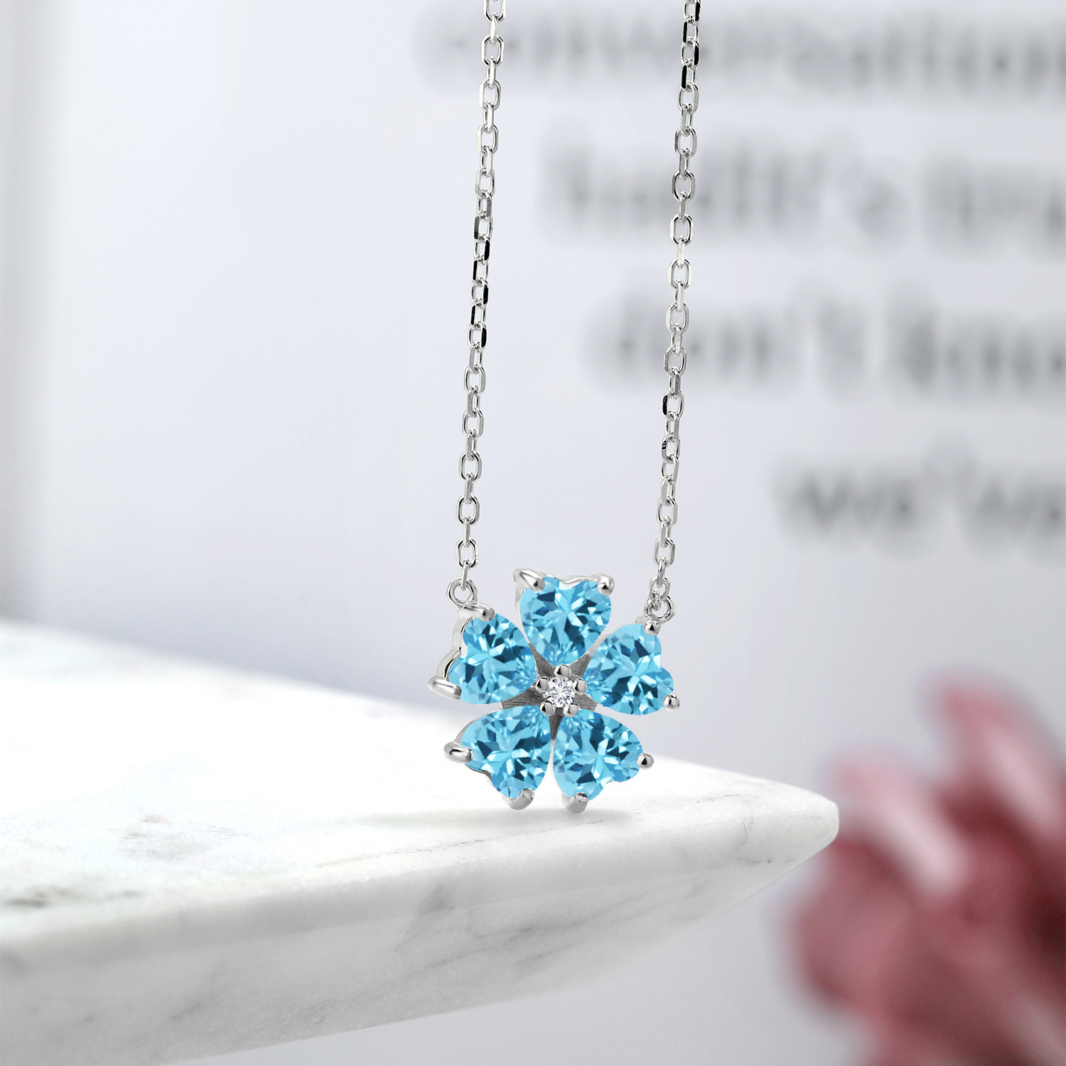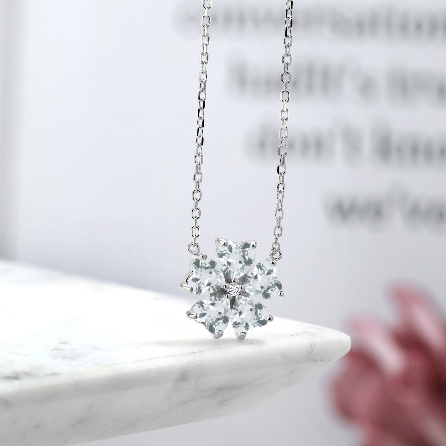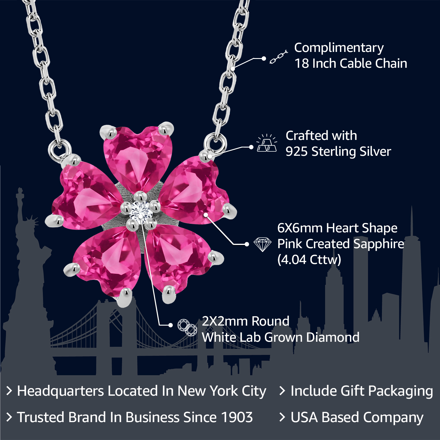 Gemstone Birthstone and Lab Grown Diamond Flower Pendant Necklace for Women | 925 Sterling Silver | Heart Shape 6MM Petals and Round 2MM Center | With 18 Inch Chain | Fine Jewelry for Her Mom Wife
