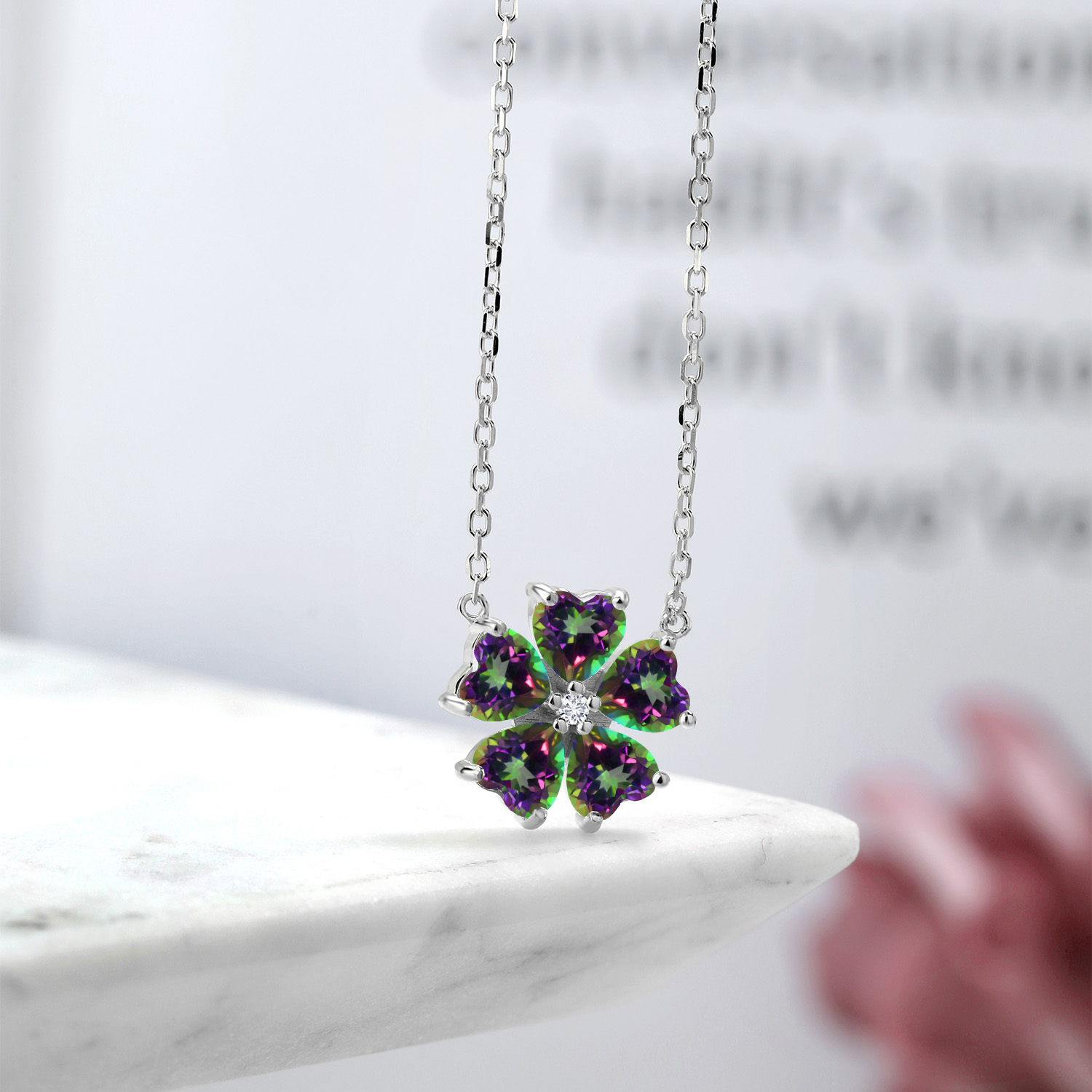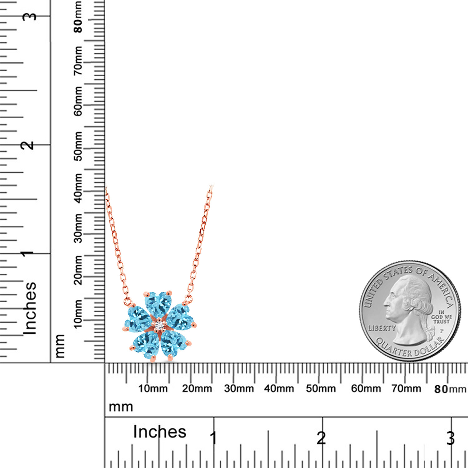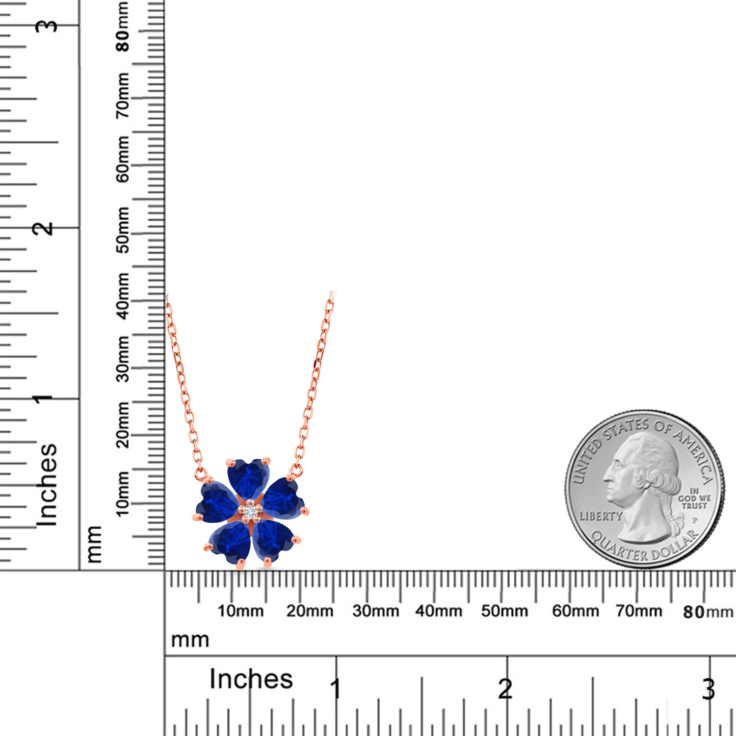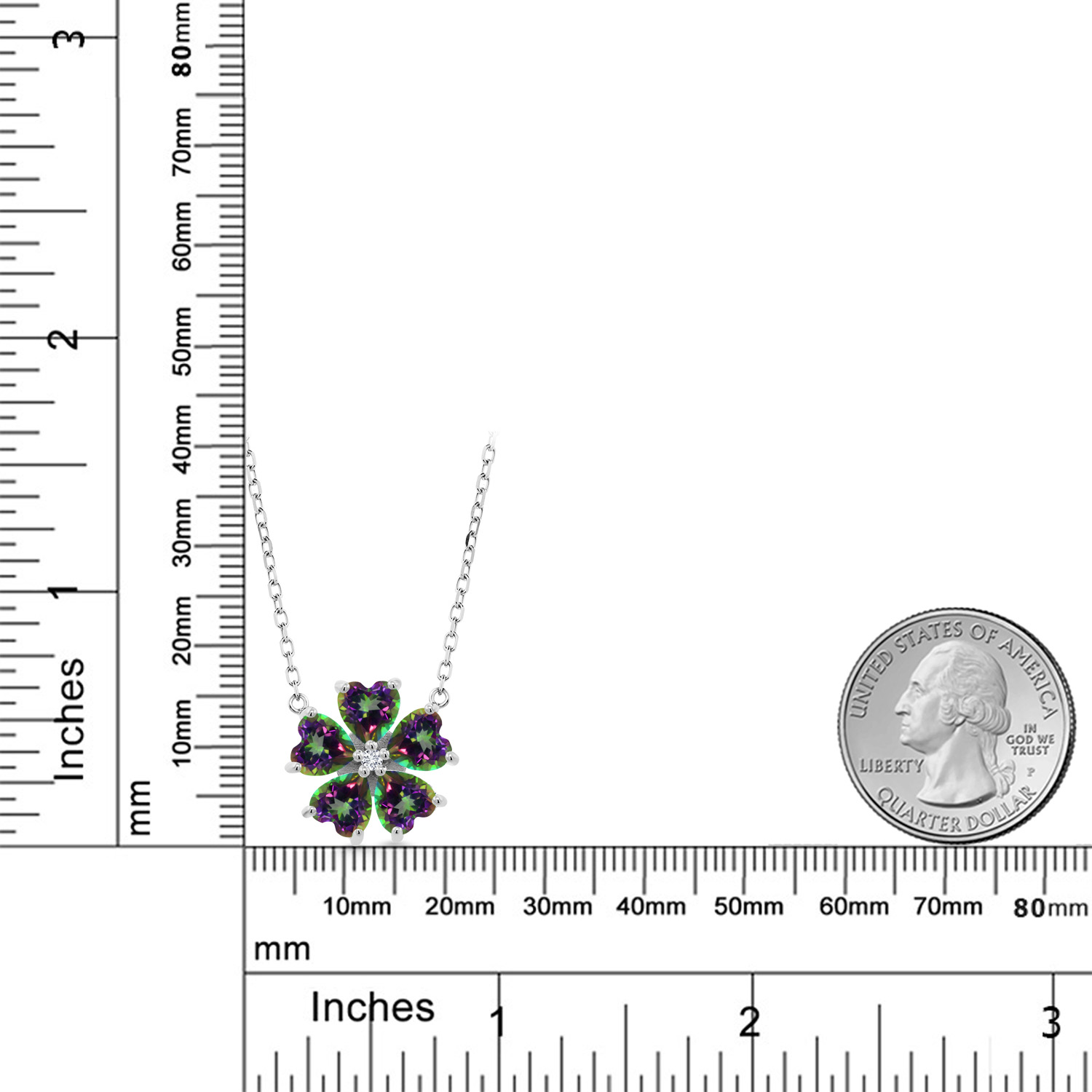 Gemstone Birthstone and Lab Grown Diamond Flower Pendant Necklace for Women | 925 Sterling Silver | Heart Shape 6MM Petals and Round 2MM Center | With 18 Inch Chain | Fine Jewelry for Her Mom Wife
