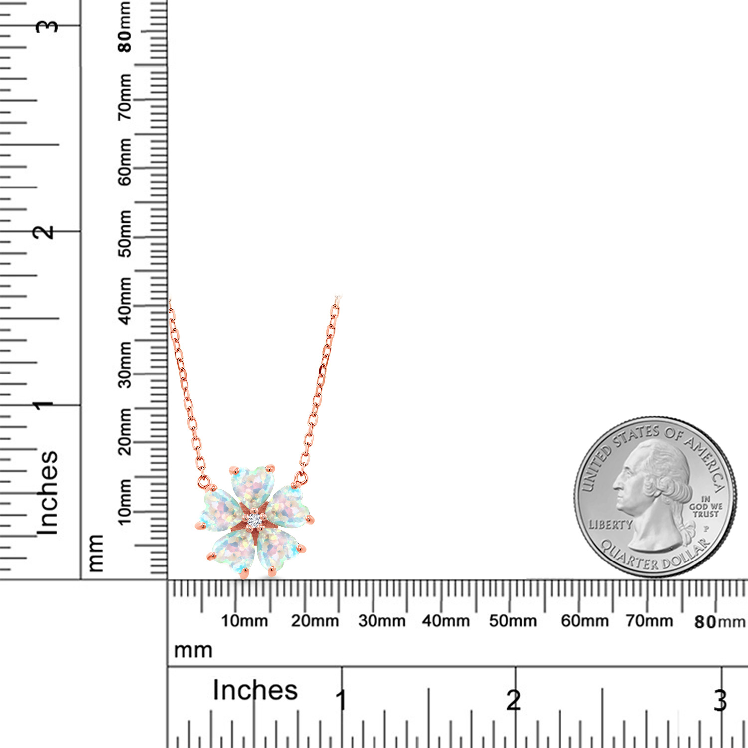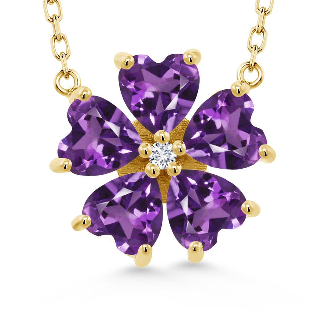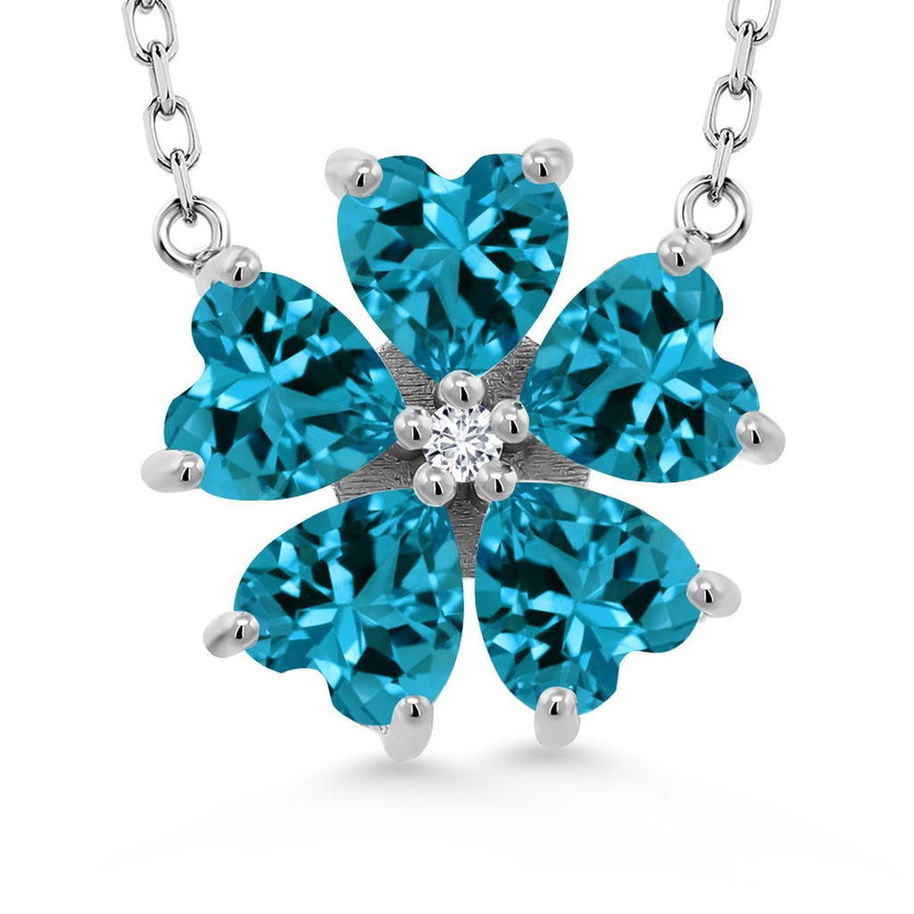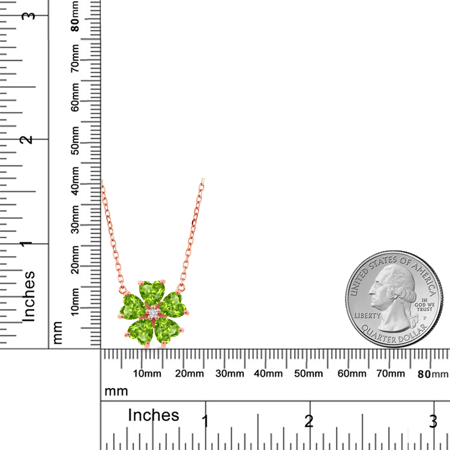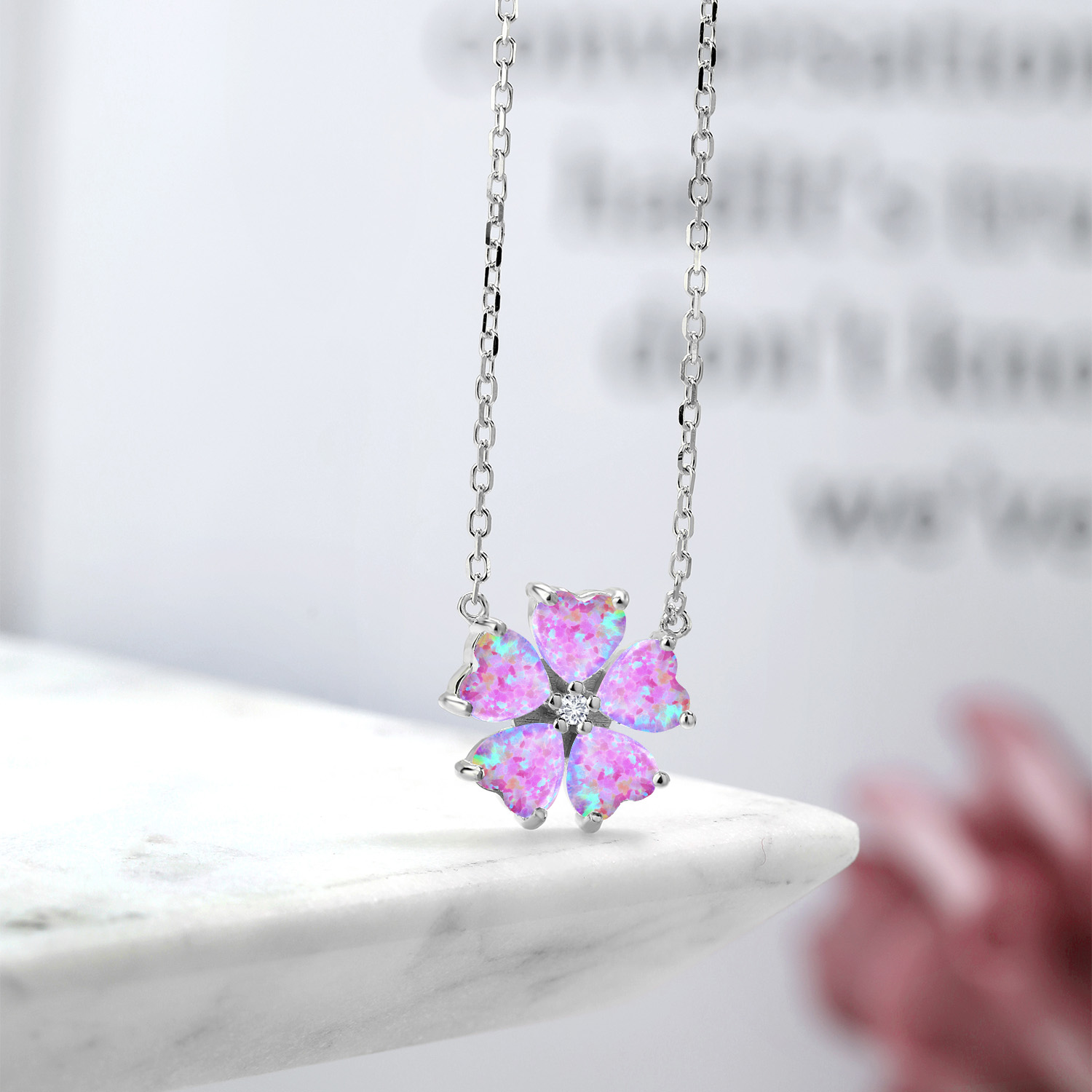 Gemstone Birthstone and Lab Grown Diamond Flower Pendant Necklace for Women | 925 Sterling Silver | Heart Shape 6MM Petals and Round 2MM Center | With 18 Inch Chain | Fine Jewelry for Her Mom Wife