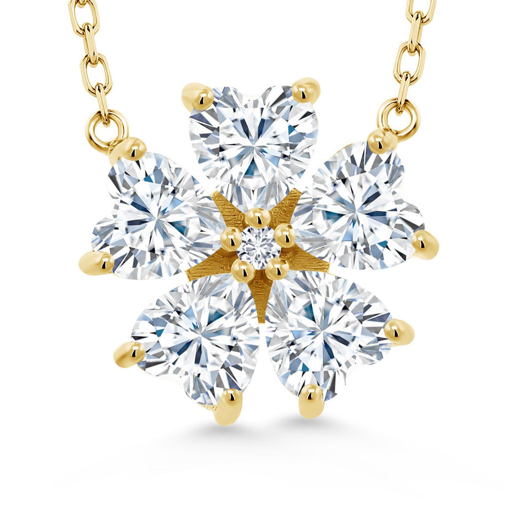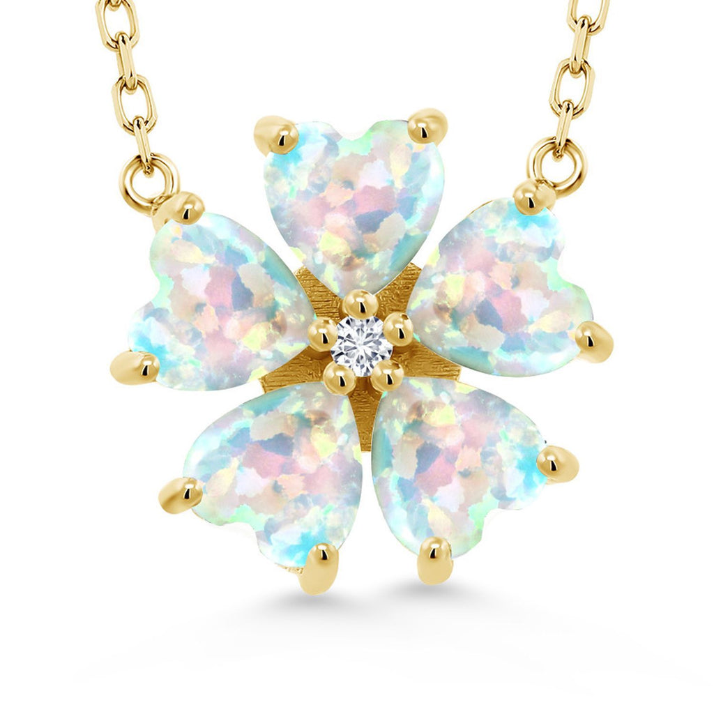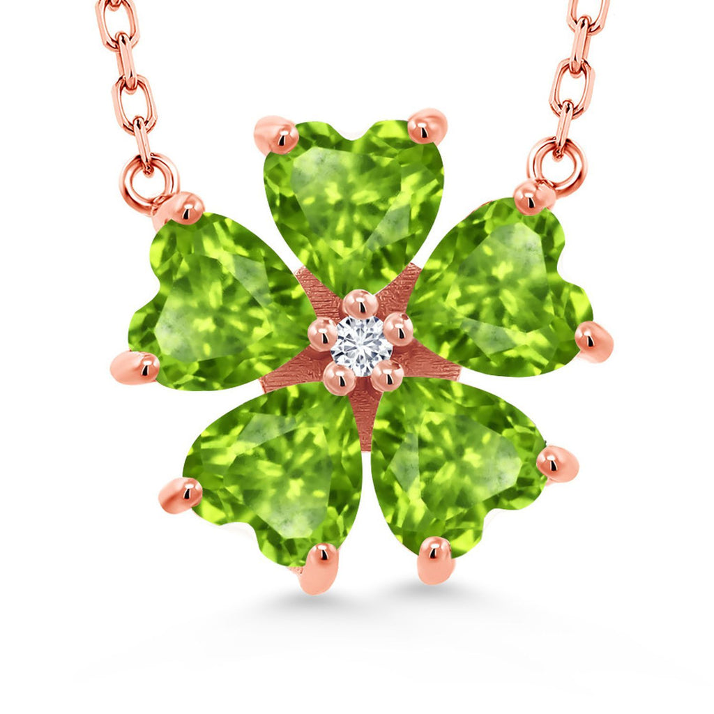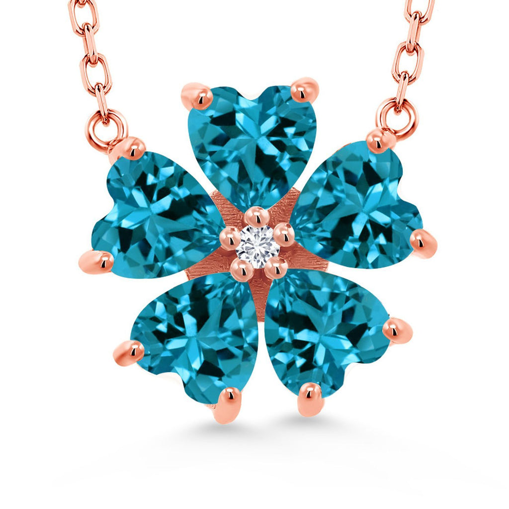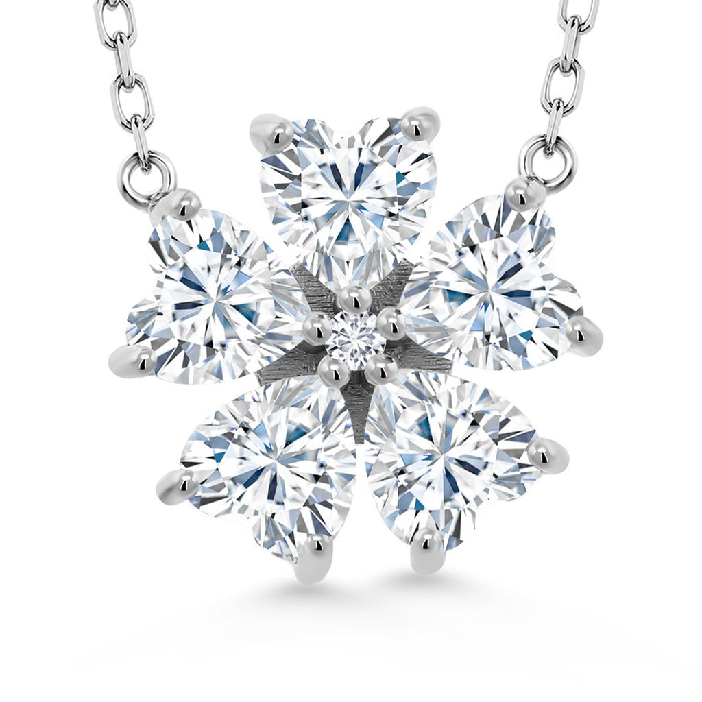 Gemstone Birthstone and Lab Grown Diamond Flower Pendant Necklace for Women | 925 Sterling Silver | Heart Shape 6MM Petals and Round 2MM Center | With 18 Inch Chain | Fine Jewelry for Her Mom Wife
