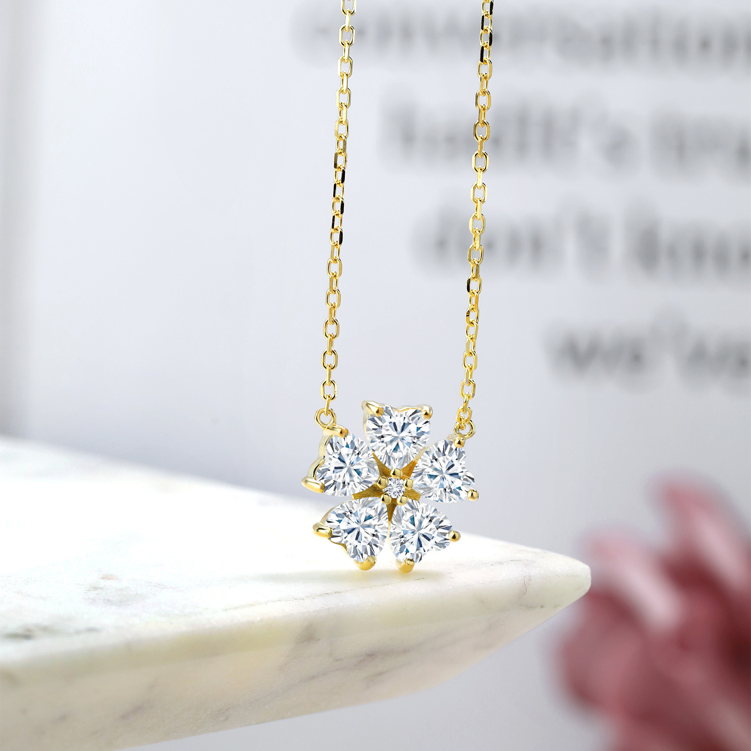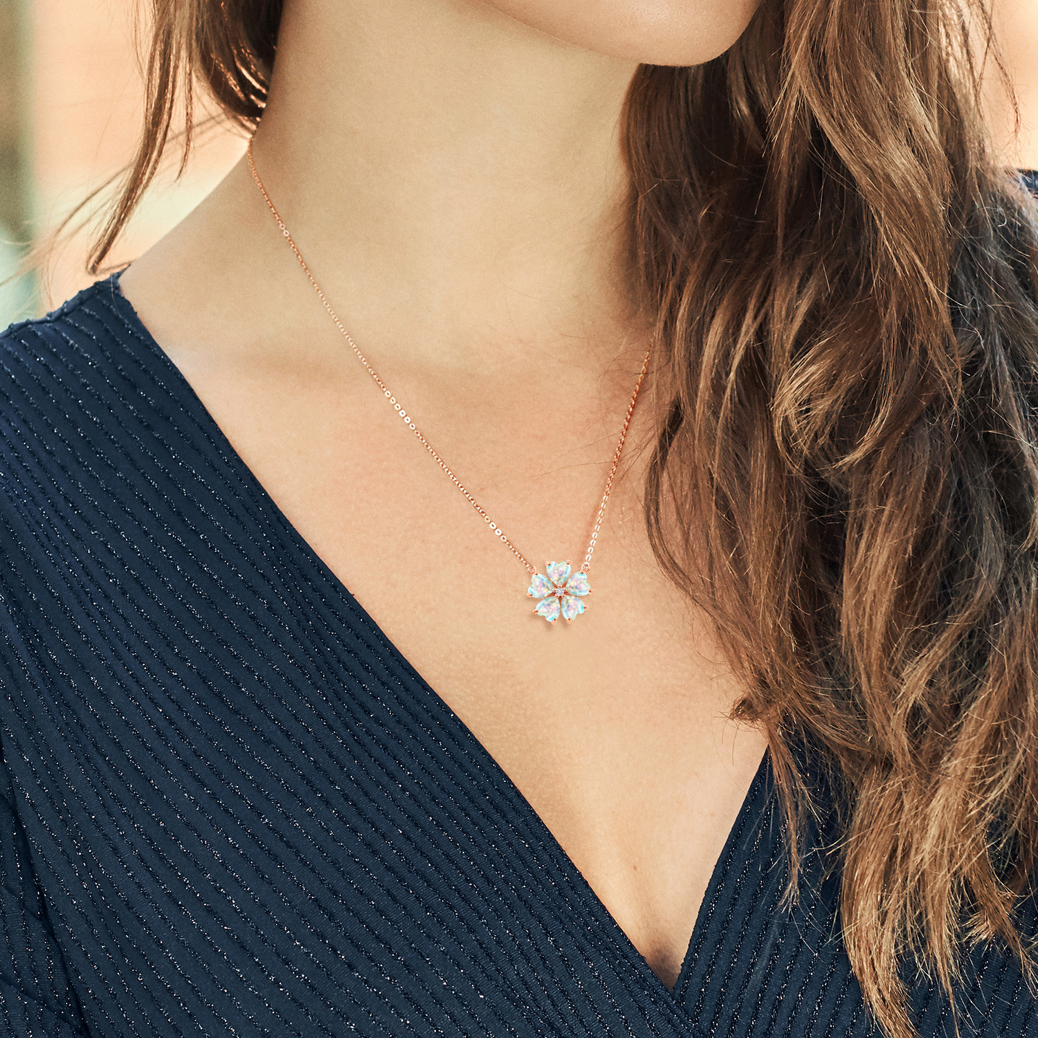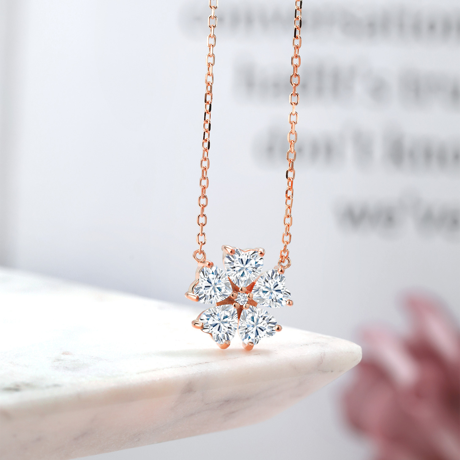 INTRICATE FLORAL DESIGN WITH LAB-GROWN DIAMOND CENTER: At the heart of this floral masterpiece lies a 2MM round lab-grown diamond, renowned for its ethical sourcing and dazzling brilliance. The intricate flower design is a testament to superior craftsmanship, with each petal meticulously shaped to create a harmonious and balanced aesthetic. This pendant's delicate yet striking style makes it a versatile accessory that transitions effortlessly from day to night.