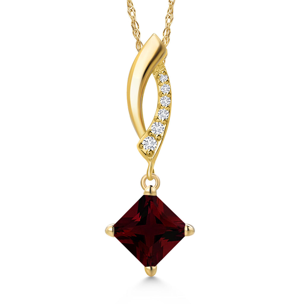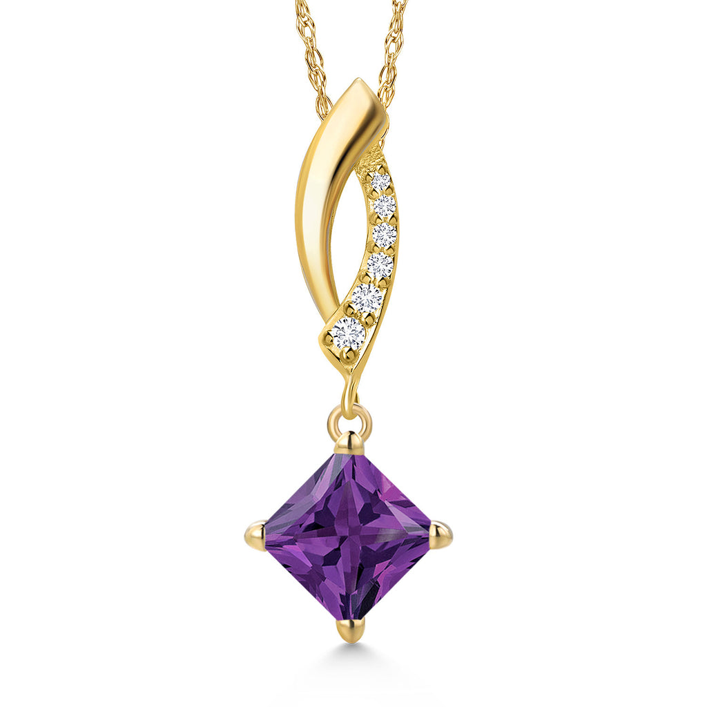 Gemstone Birthstone and Lab Grown Diamond Pendant Necklace For Women in 14K Yellow Gold | Princess Cut 6MM | Fine Jewelry Gifts for Her Mom Women Wife | With 18 Inch 14K Gold Chain