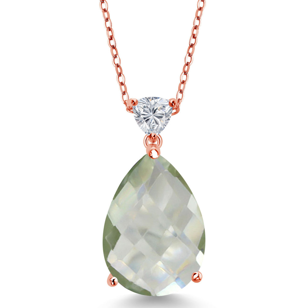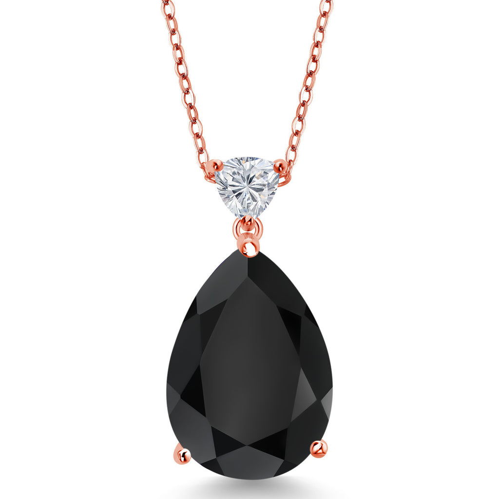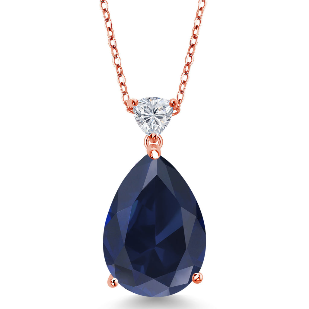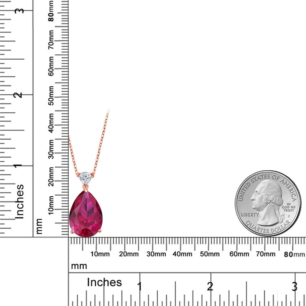 Gemstone Birthstone and Lab Grown Diamond Teardrop Pendant Necklace for Women | 18K Rose Gold Plated Silver | 18X13MM Pear Shape and 5MM Trillion Accent | 18-Inch Cable Chain | Gift for Her Wife Mom