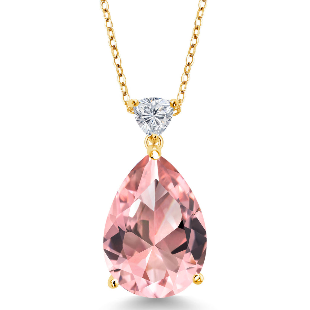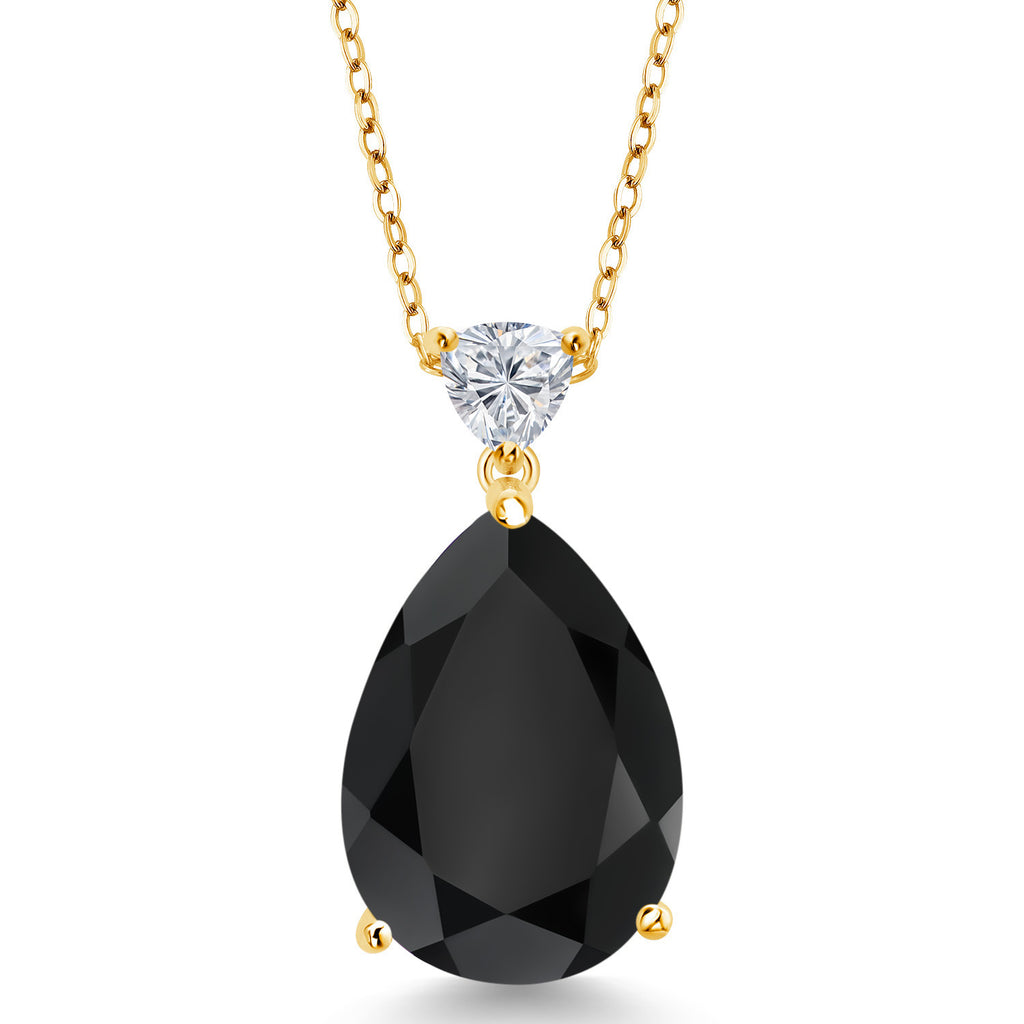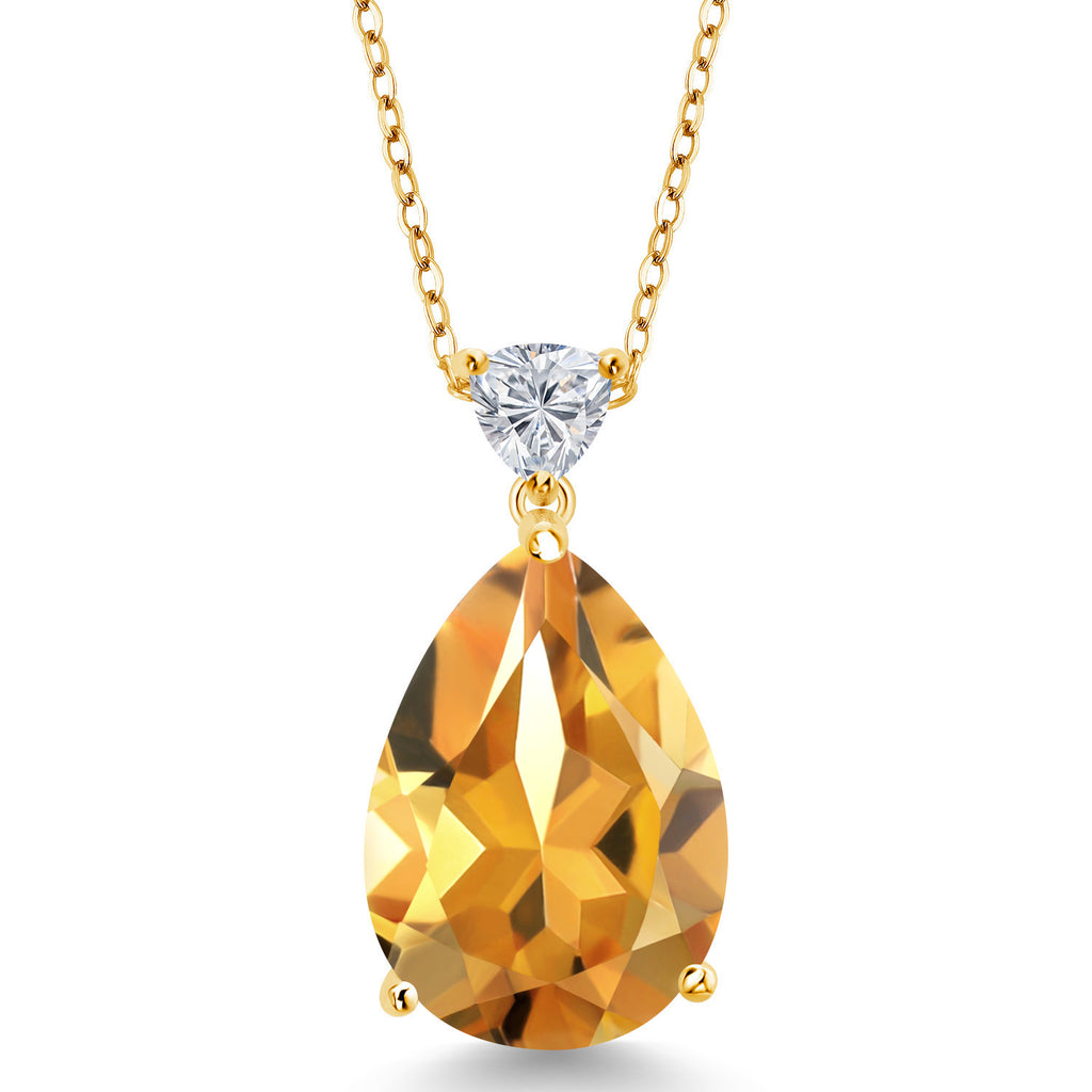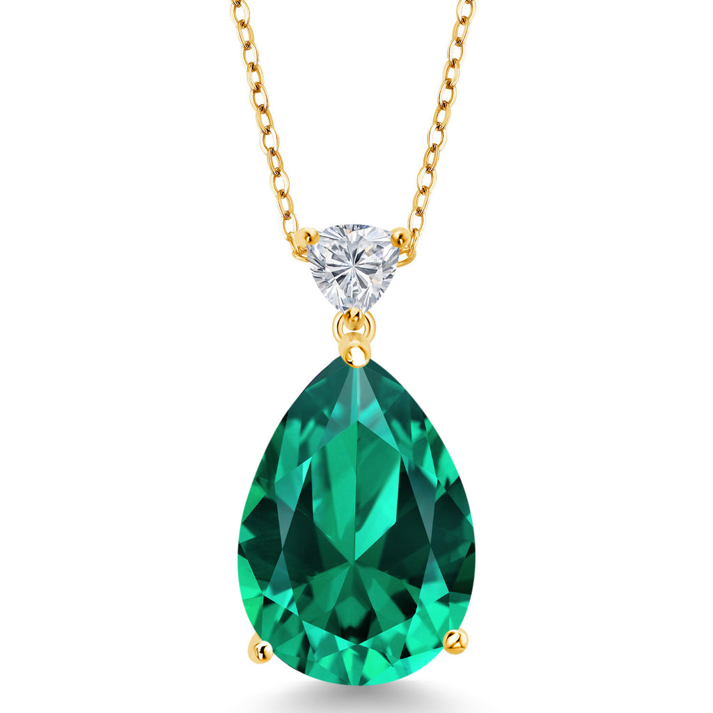 Gemstone Birthstone and Lab Grown Diamond Teardrop Pendant Necklace for Women | 18K Yellow Gold Plated Silver | 18X13MM Pear Shape | 5MM Trillion Accent | 18-Inch Cable Chain | Gift for Her Wife Mom