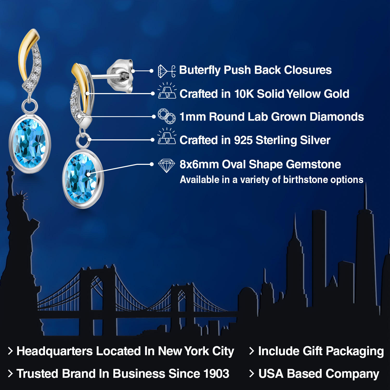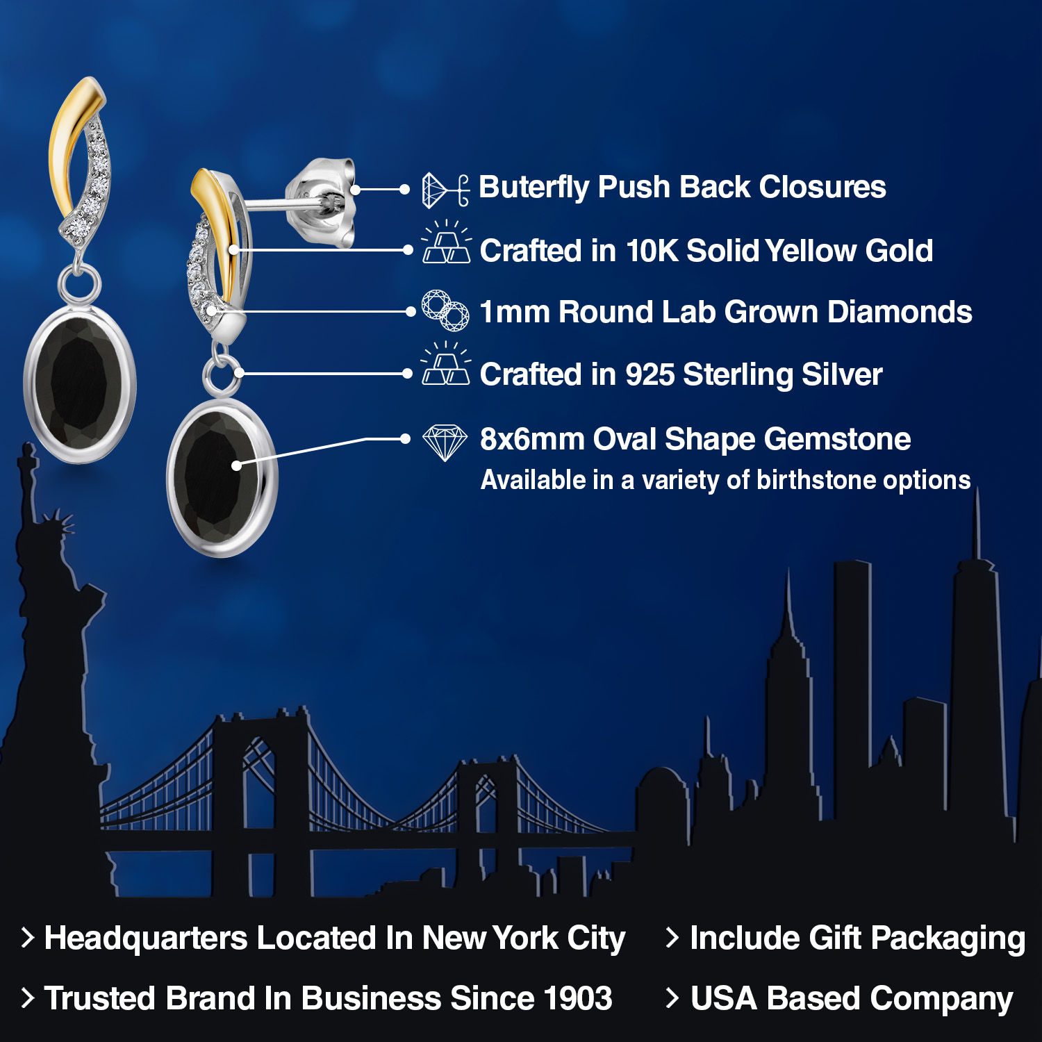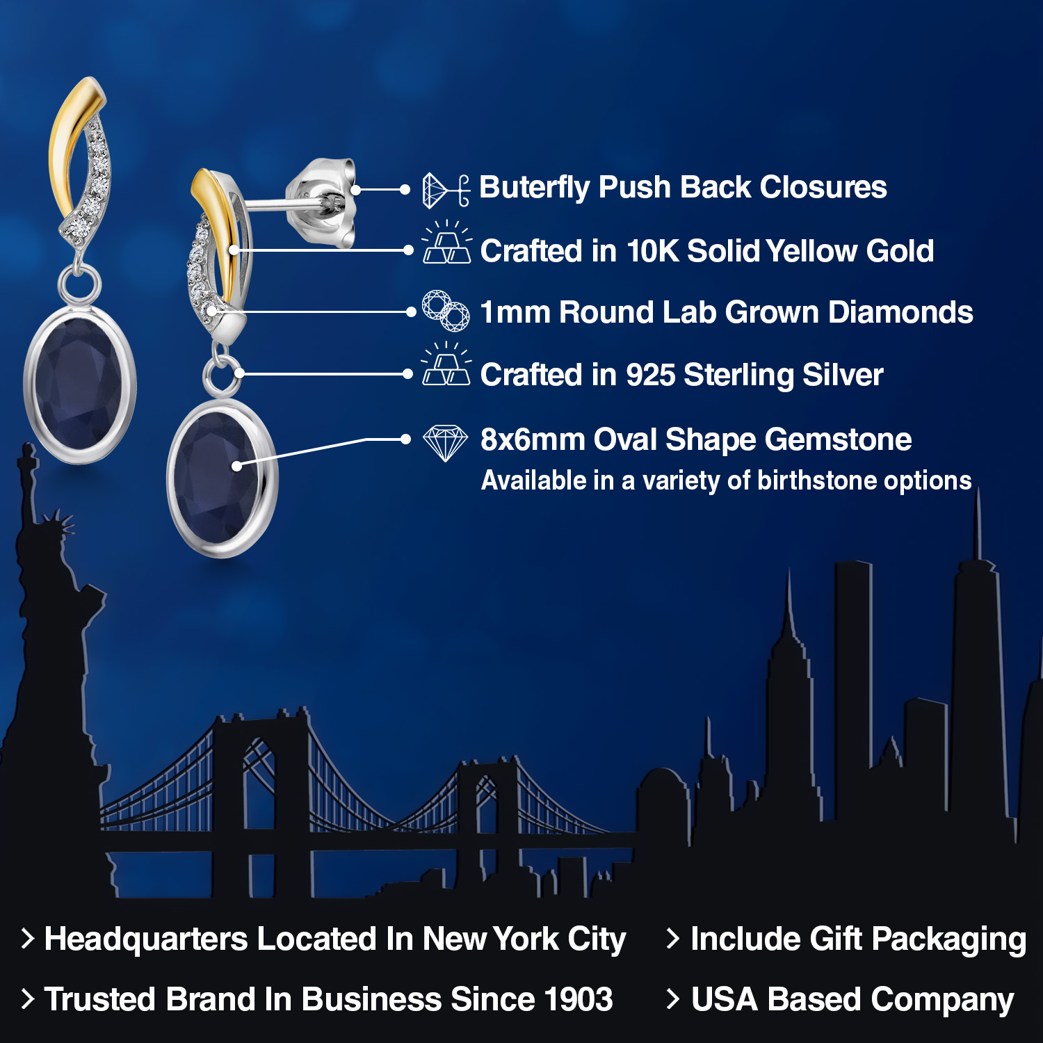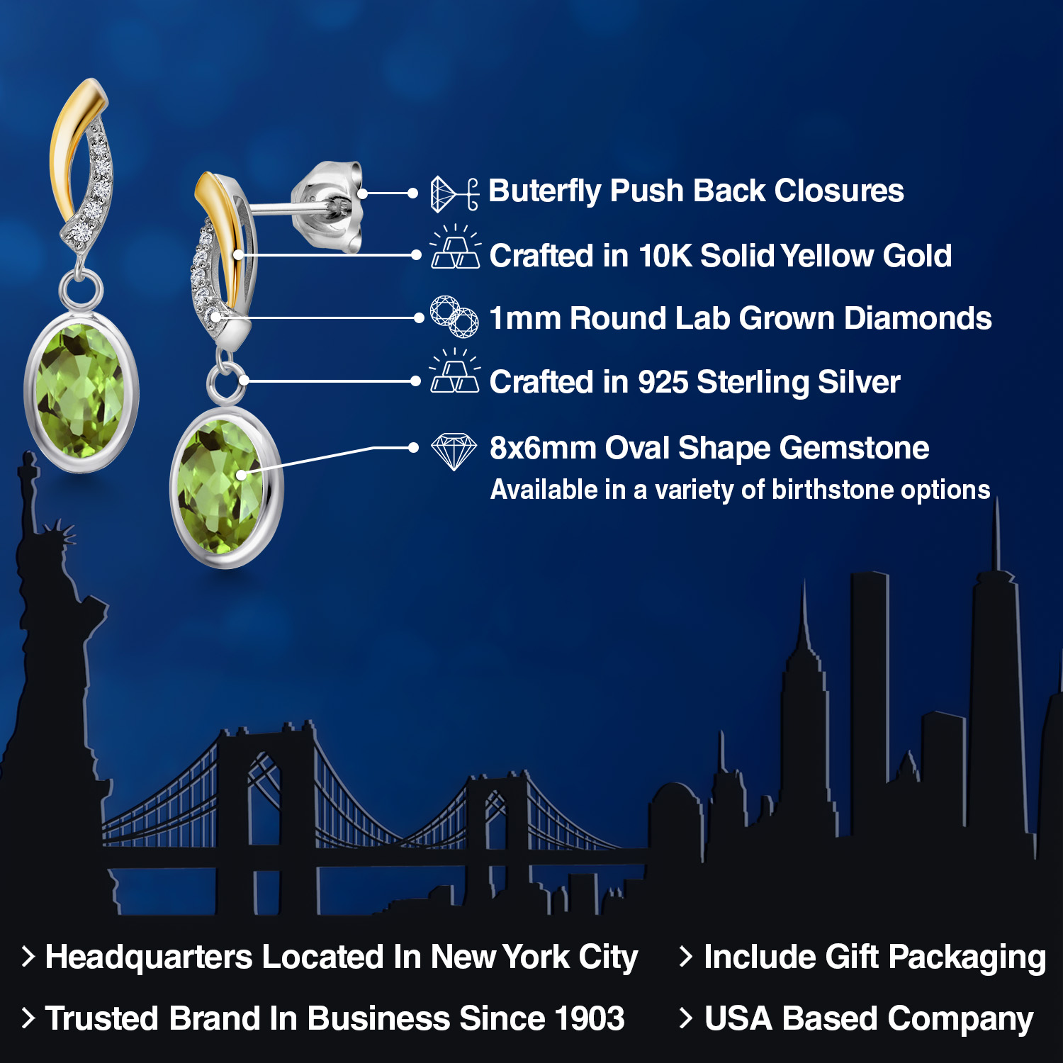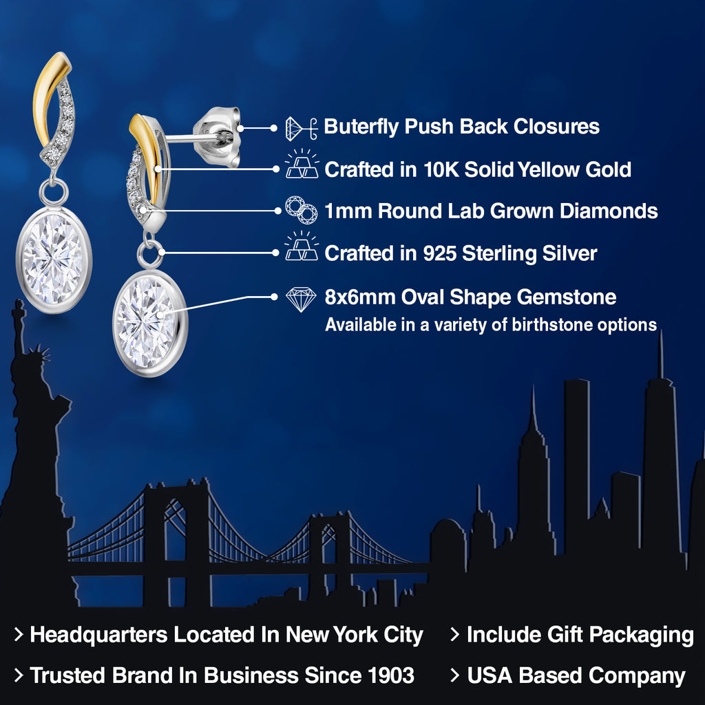 Gemstone Birthstone and Lab Grown Diamond Two-Tone Infinity Drop Dangle Earrings for Women | 925 Silver and 10K Yellow Gold | Oval 8X6MM | Fine Jewelry for Her Mom Wife