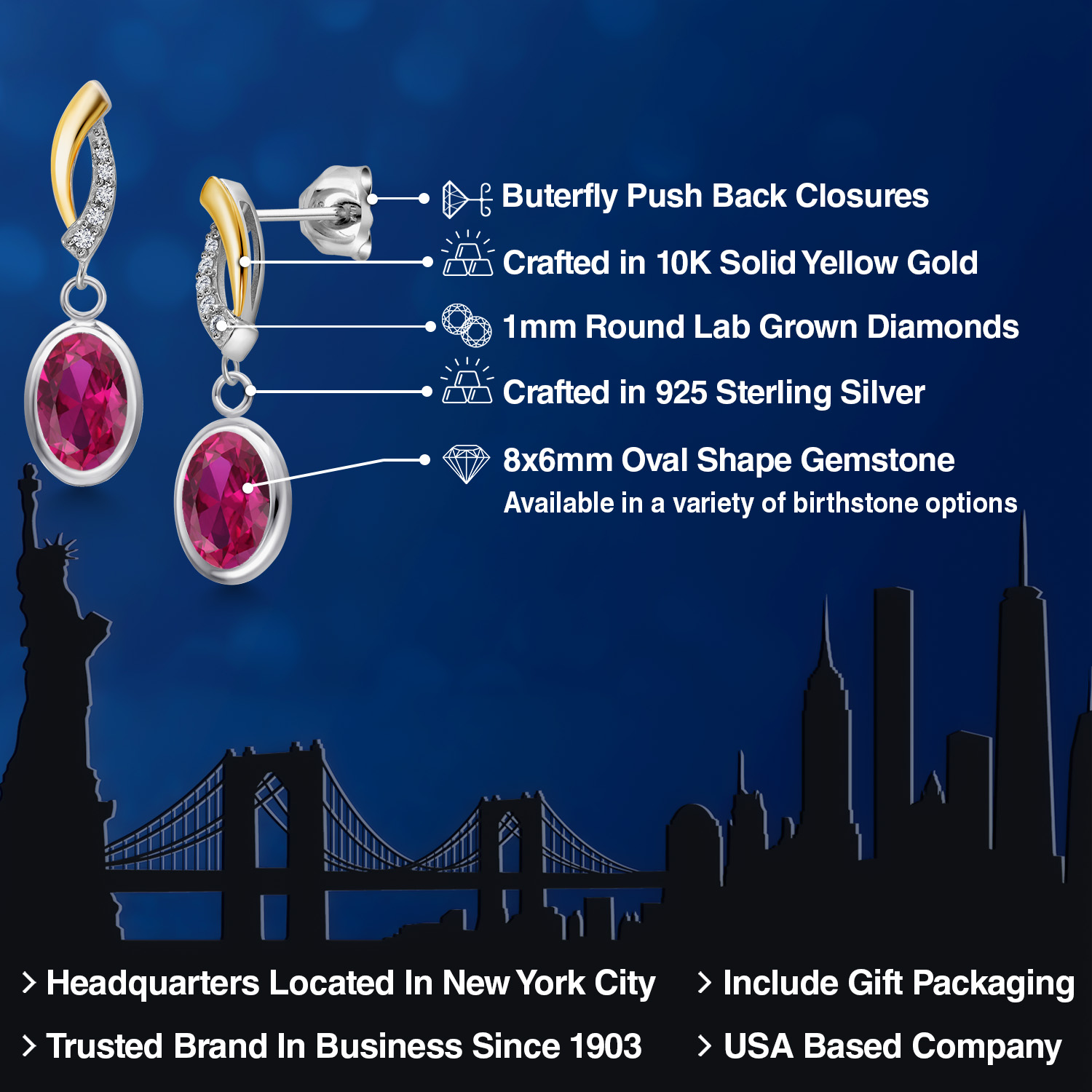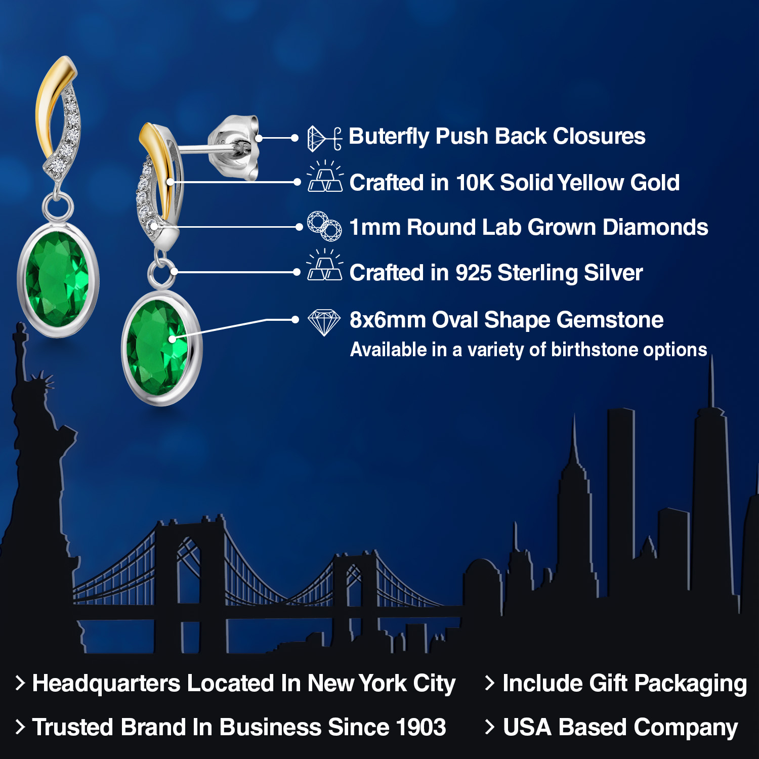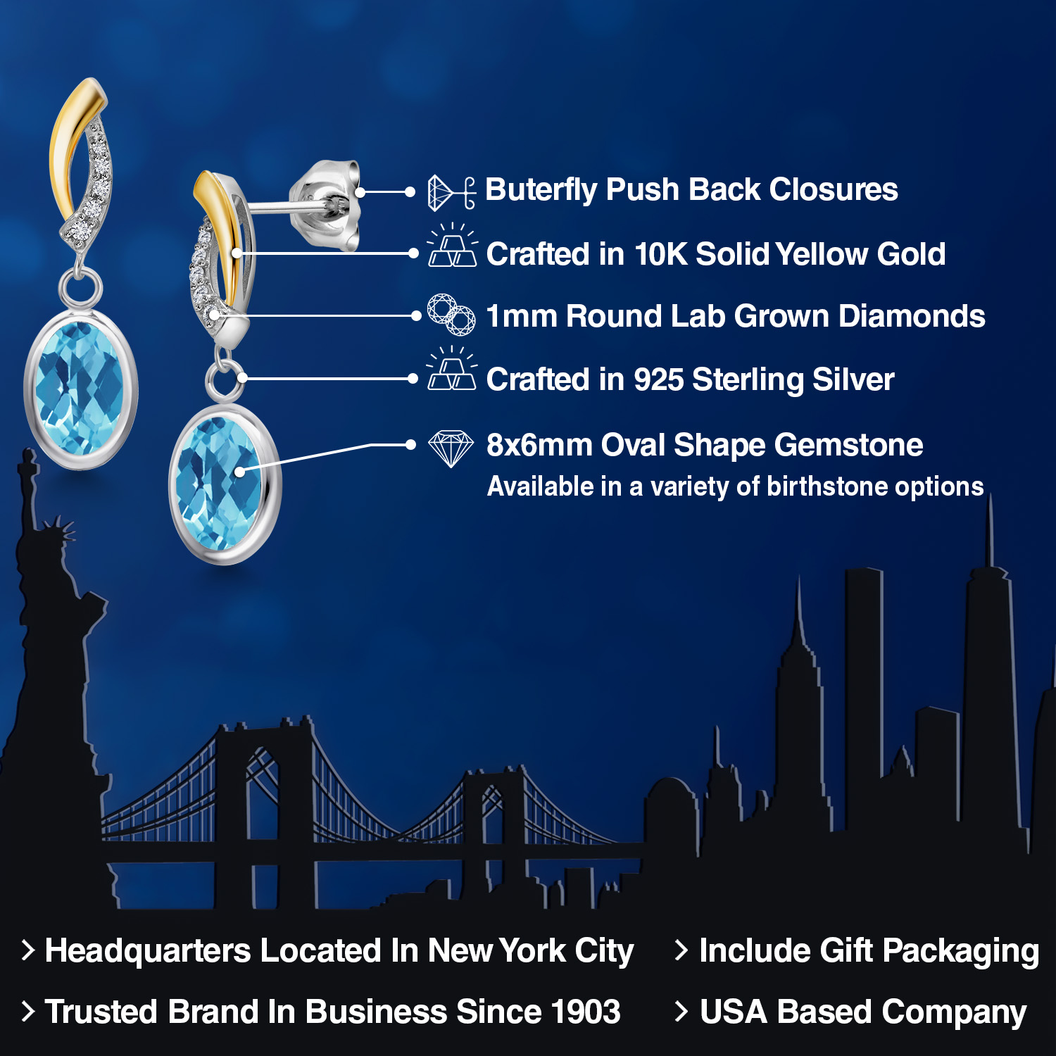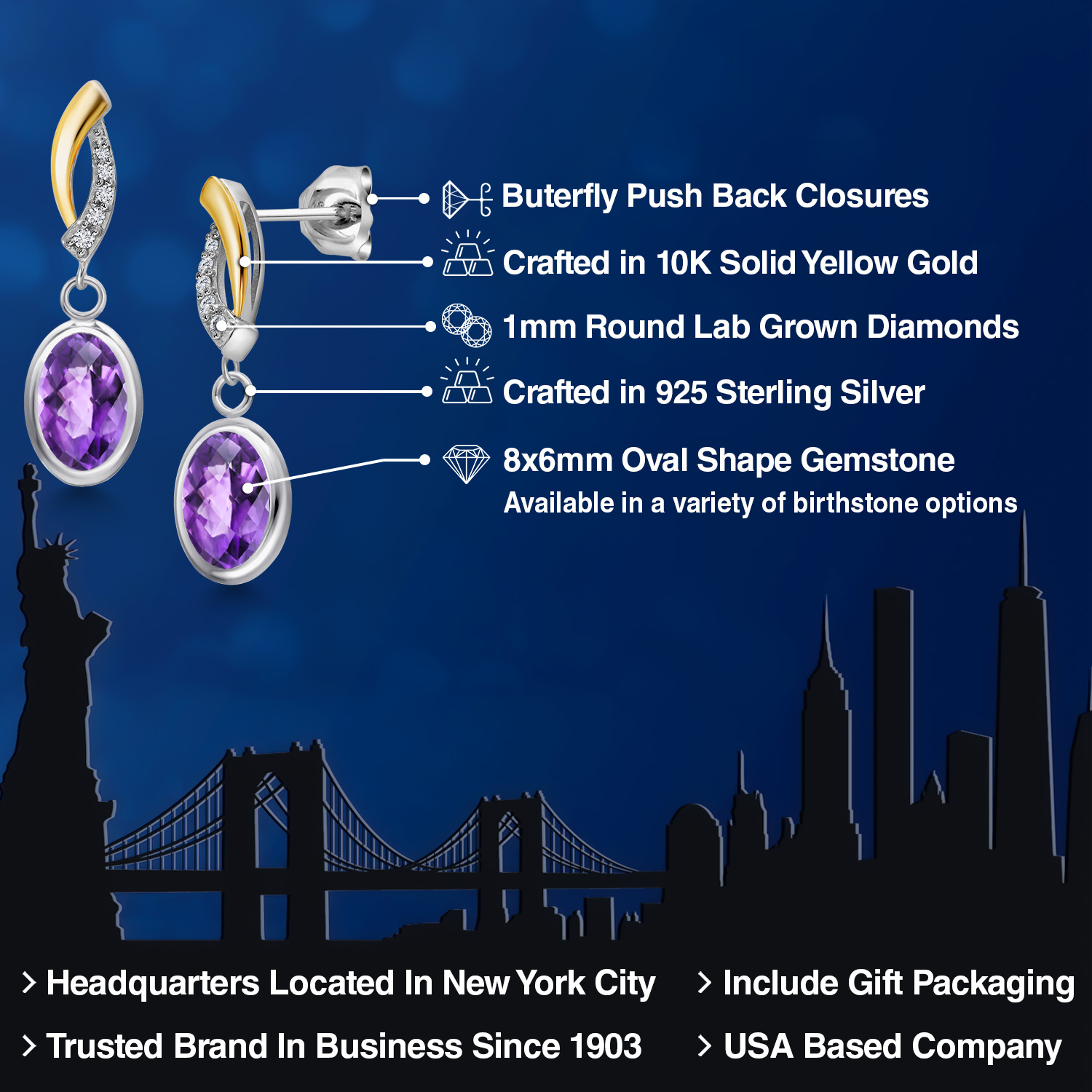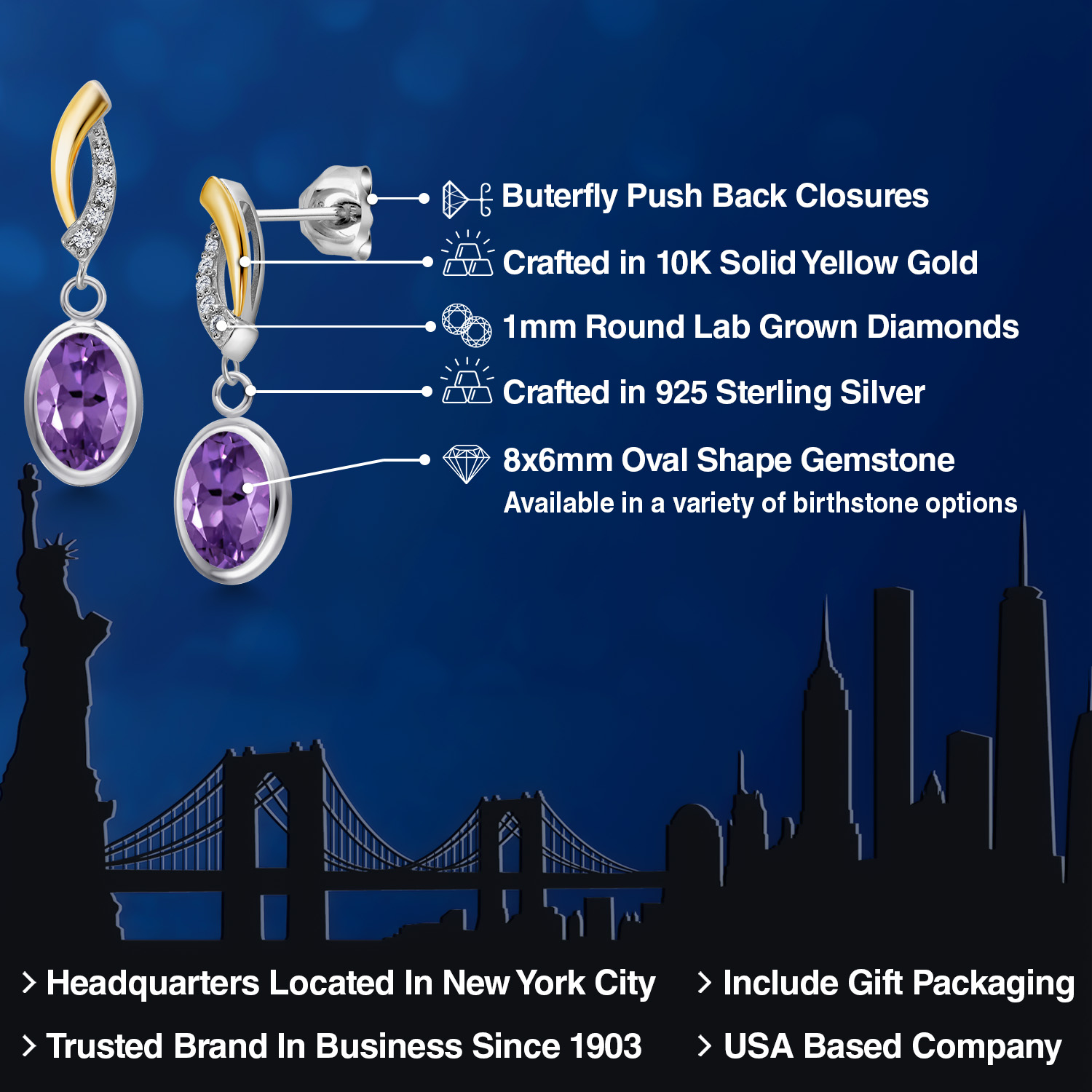 Gemstone Birthstone and Lab Grown Diamond Two-Tone Infinity Drop Dangle Earrings for Women | 925 Silver and 10K Yellow Gold | Oval 8X6MM | Fine Jewelry for Her Mom Wife