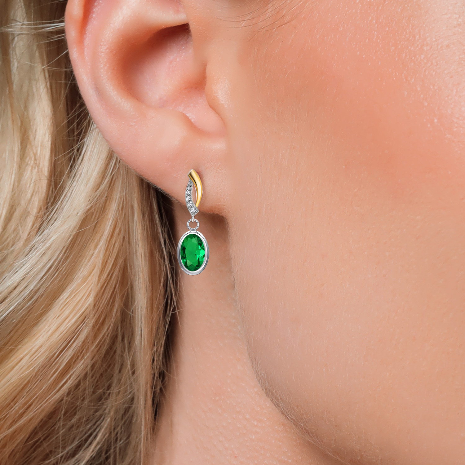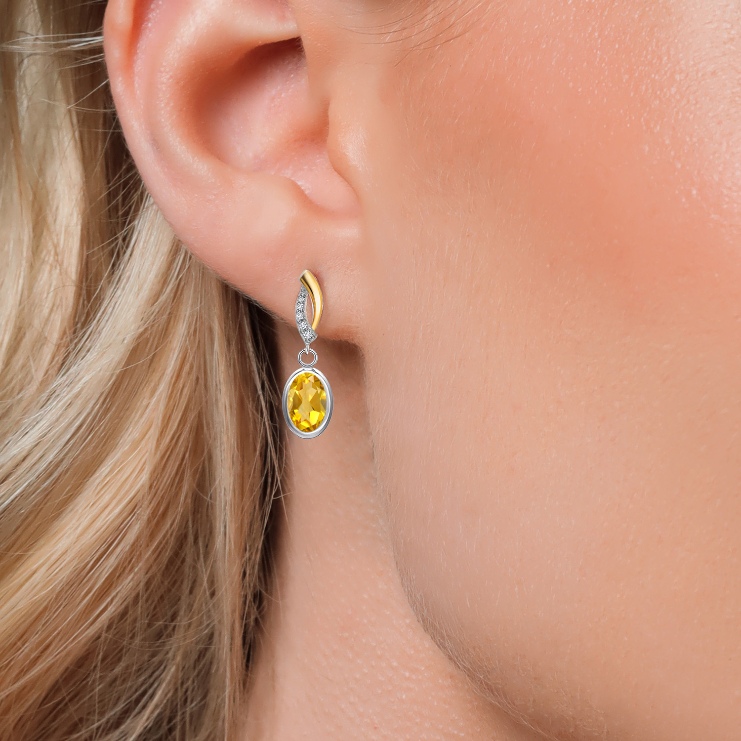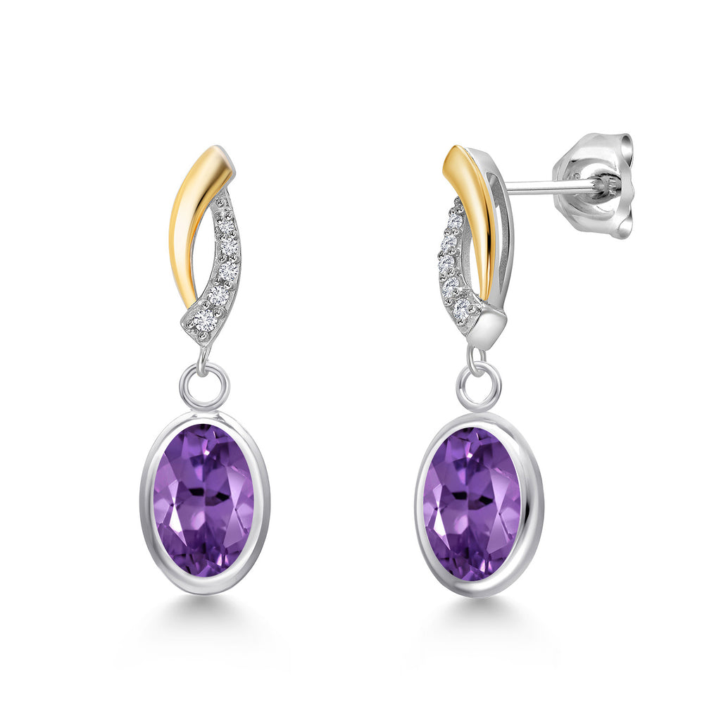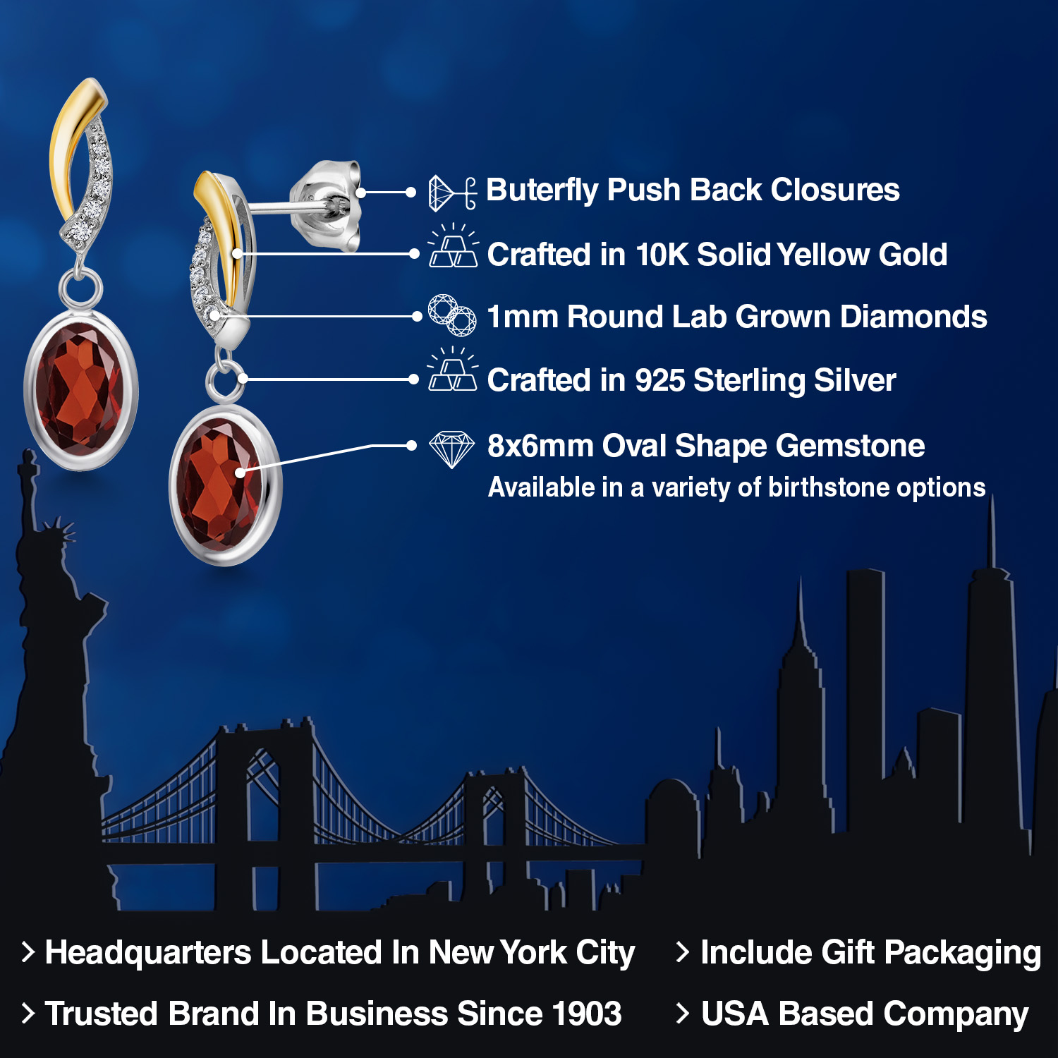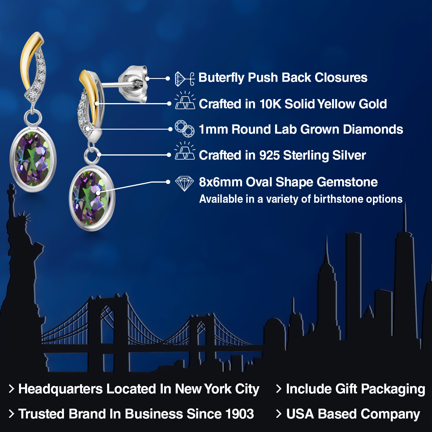 Gemstone Birthstone and Lab Grown Diamond Two-Tone Infinity Drop Dangle Earrings for Women | 925 Silver and 10K Yellow Gold | Oval 8X6MM | Fine Jewelry for Her Mom Wife