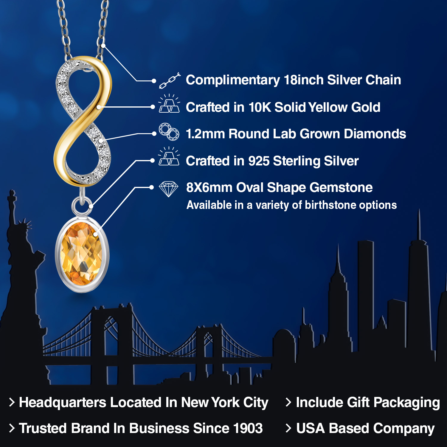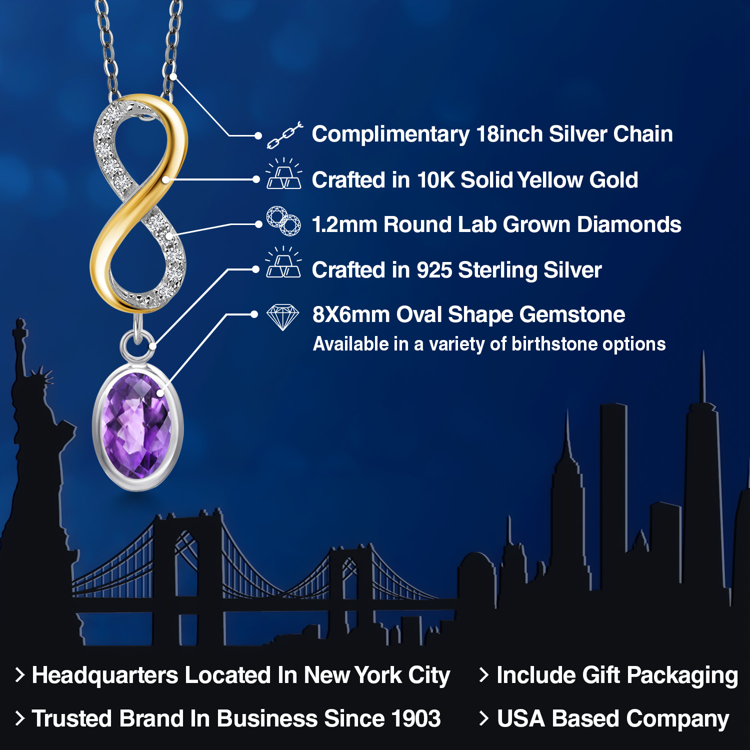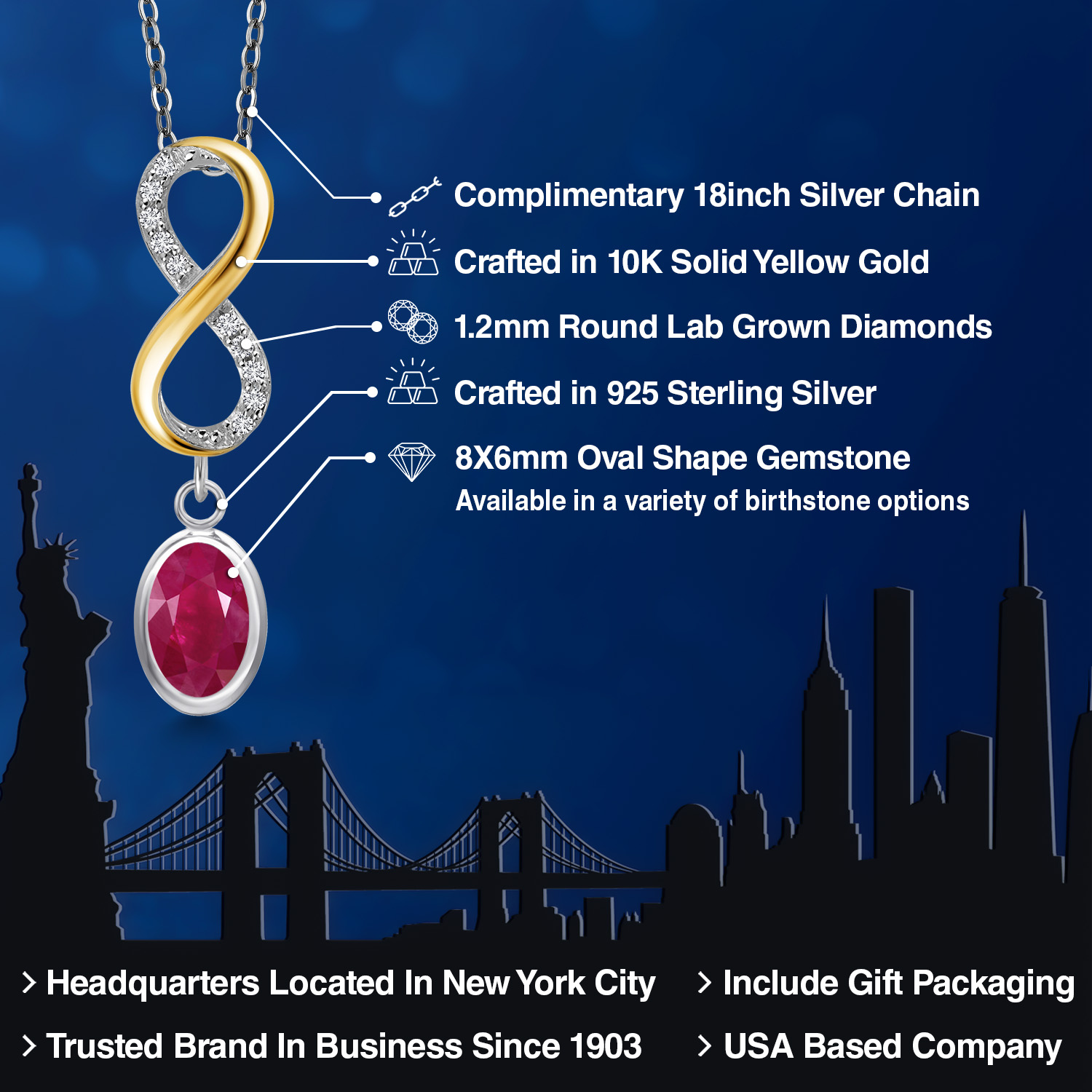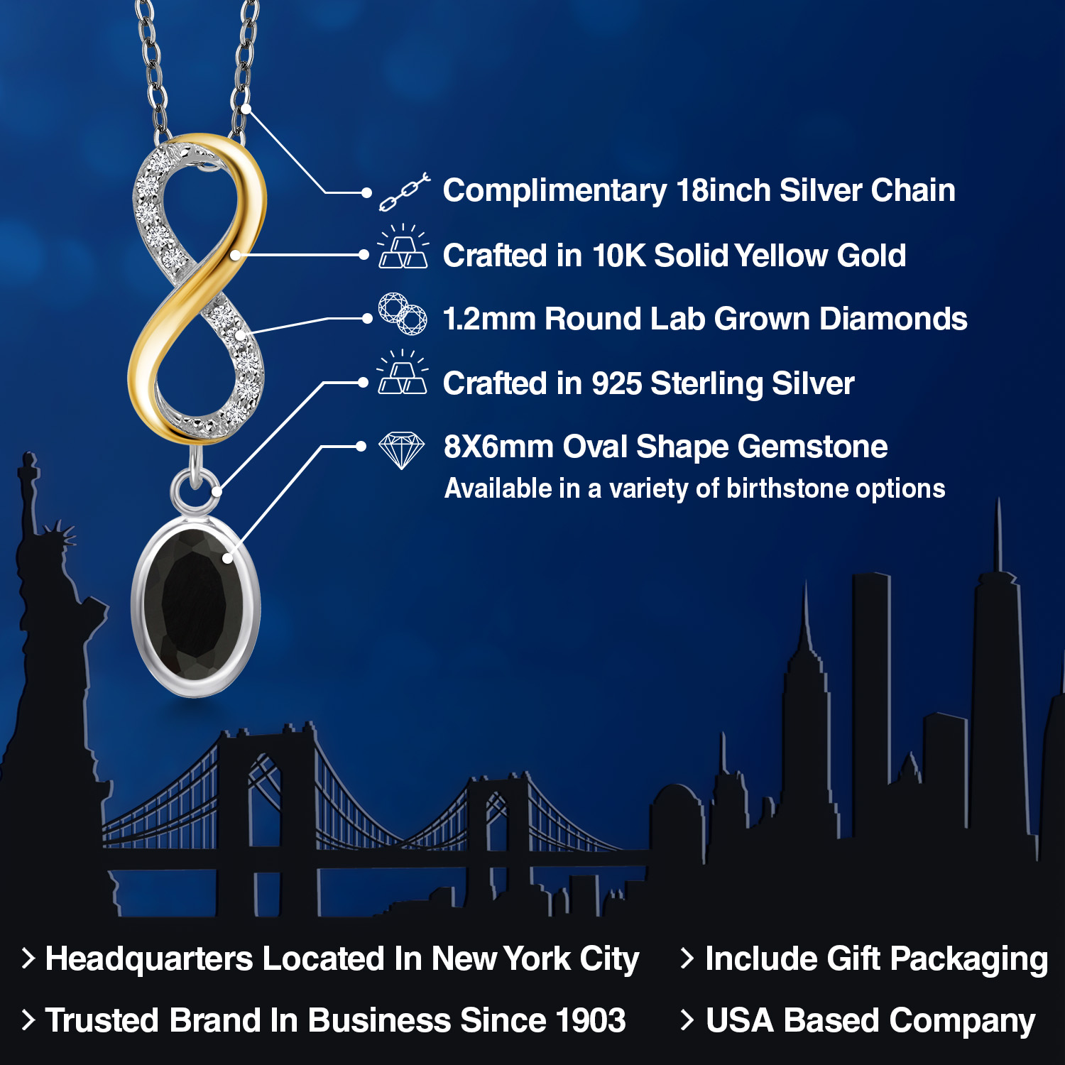Gemstone Birthstone and Lab Grown Diamond Two-Tone Infinity Pendant Necklace for Women in 925 Silver and 10K Yellow Gold | Oval 8X6MM and Round Accents | With 18 Inch Chain