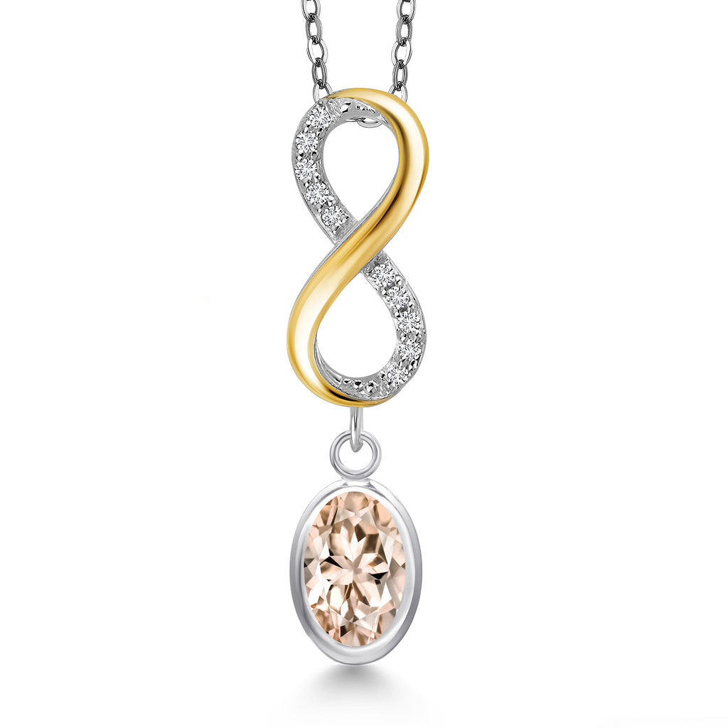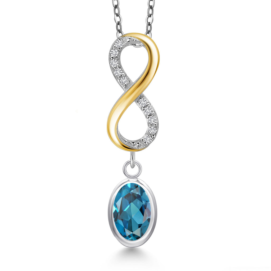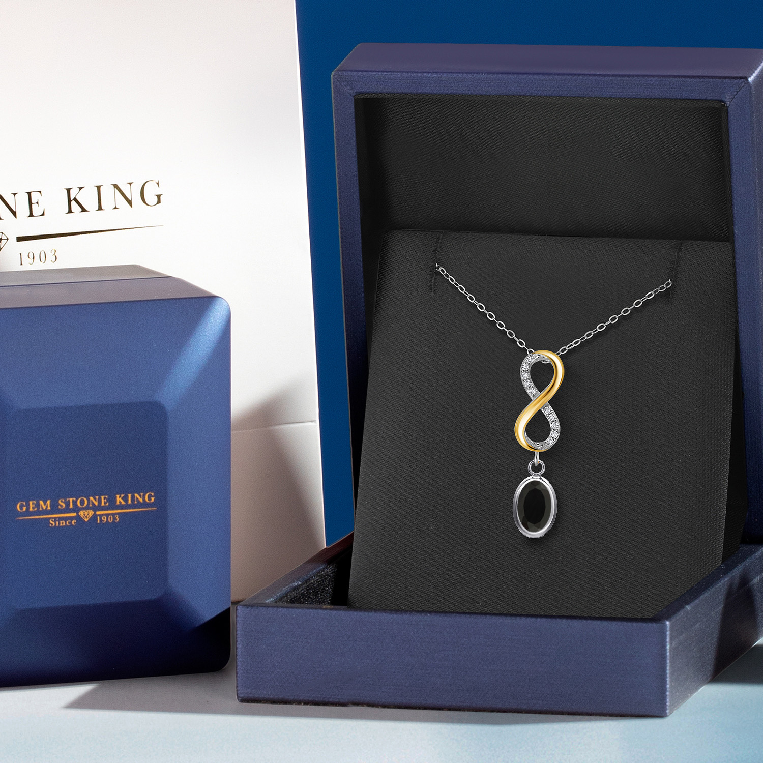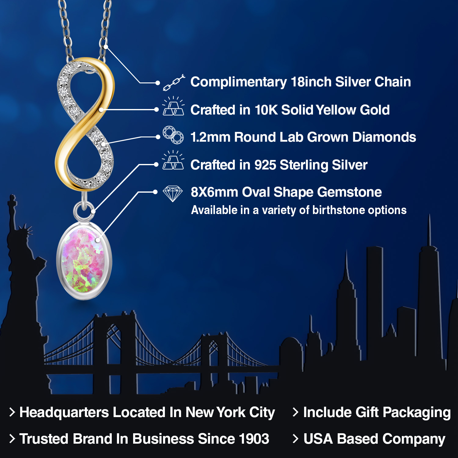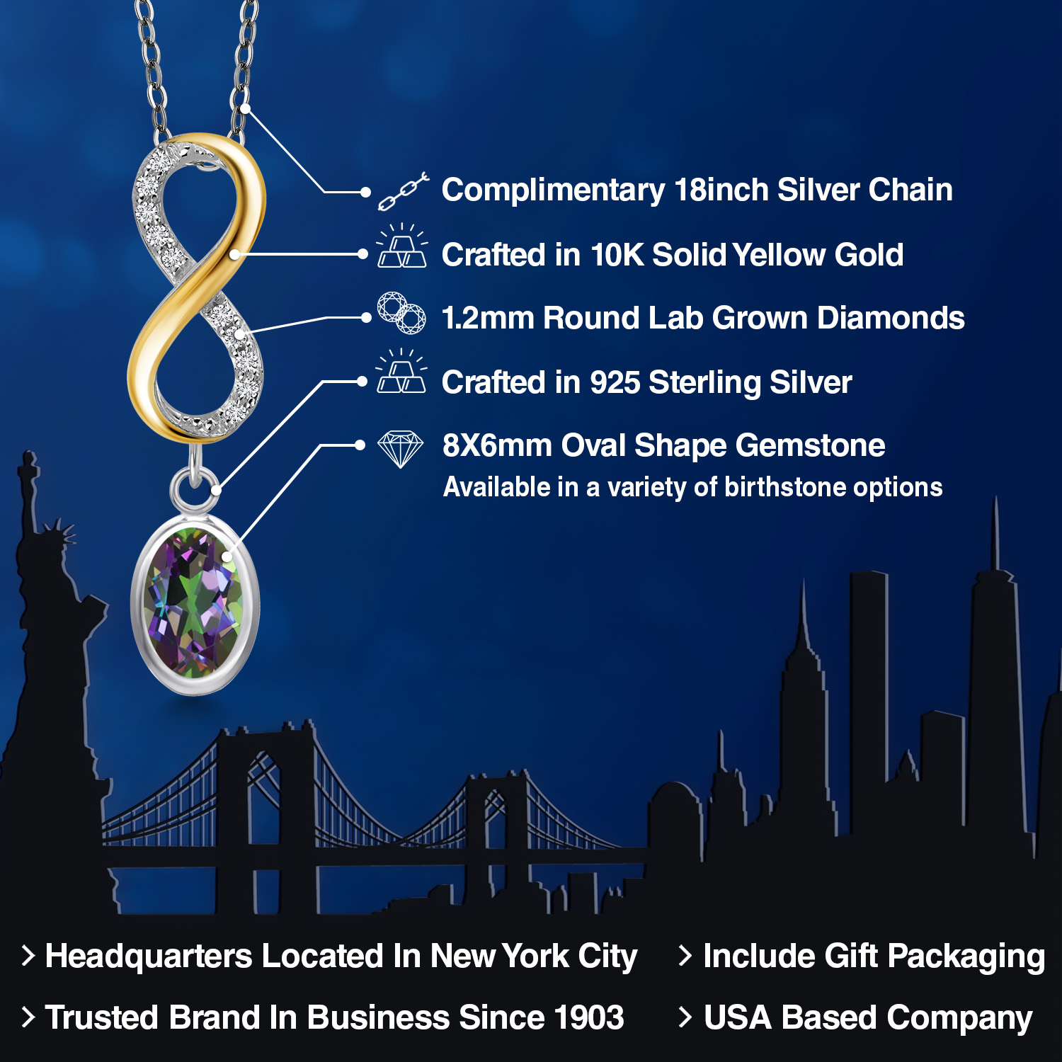 Gemstone Birthstone and Lab Grown Diamond Two-Tone Infinity Pendant Necklace for Women in 925 Silver and 10K Yellow Gold | Oval 8X6MM and Round Accents | With 18 Inch Chain