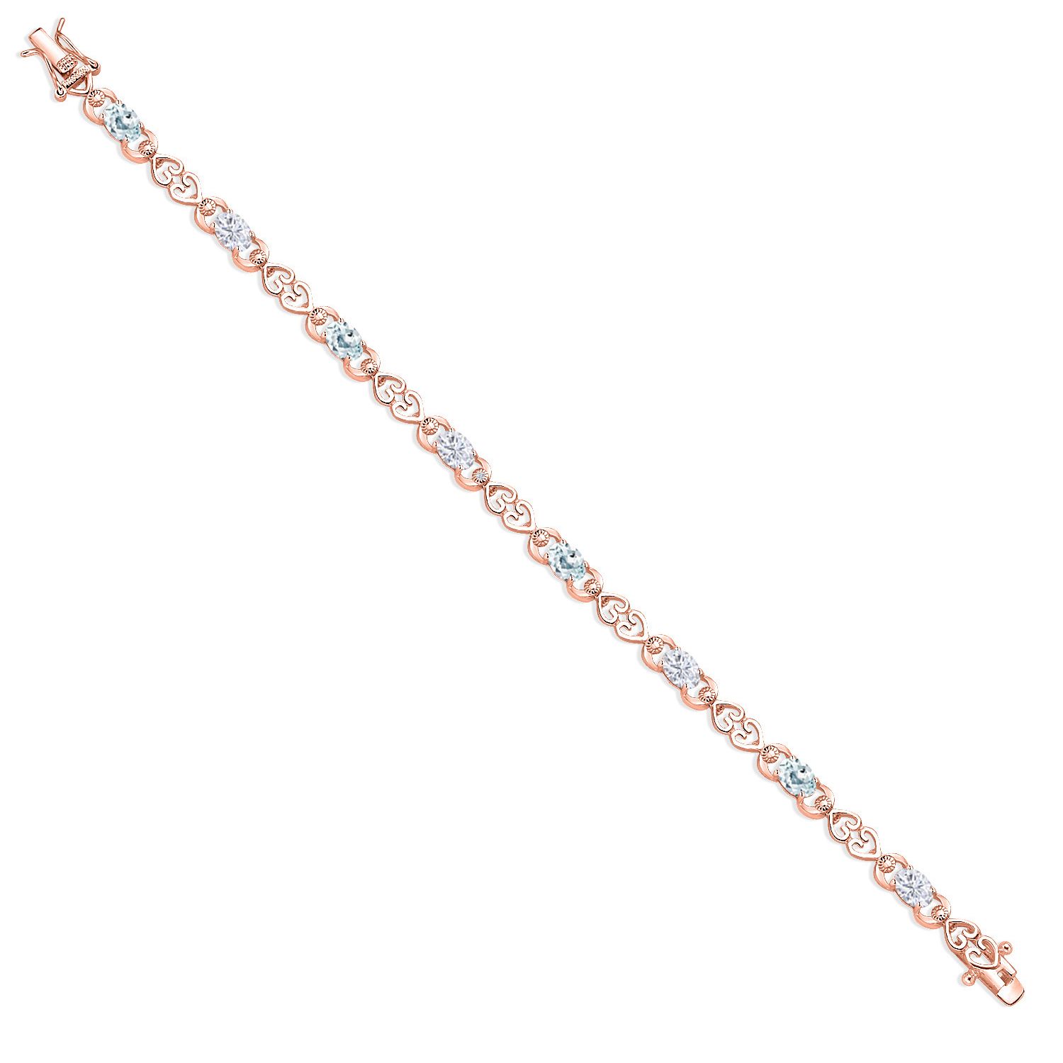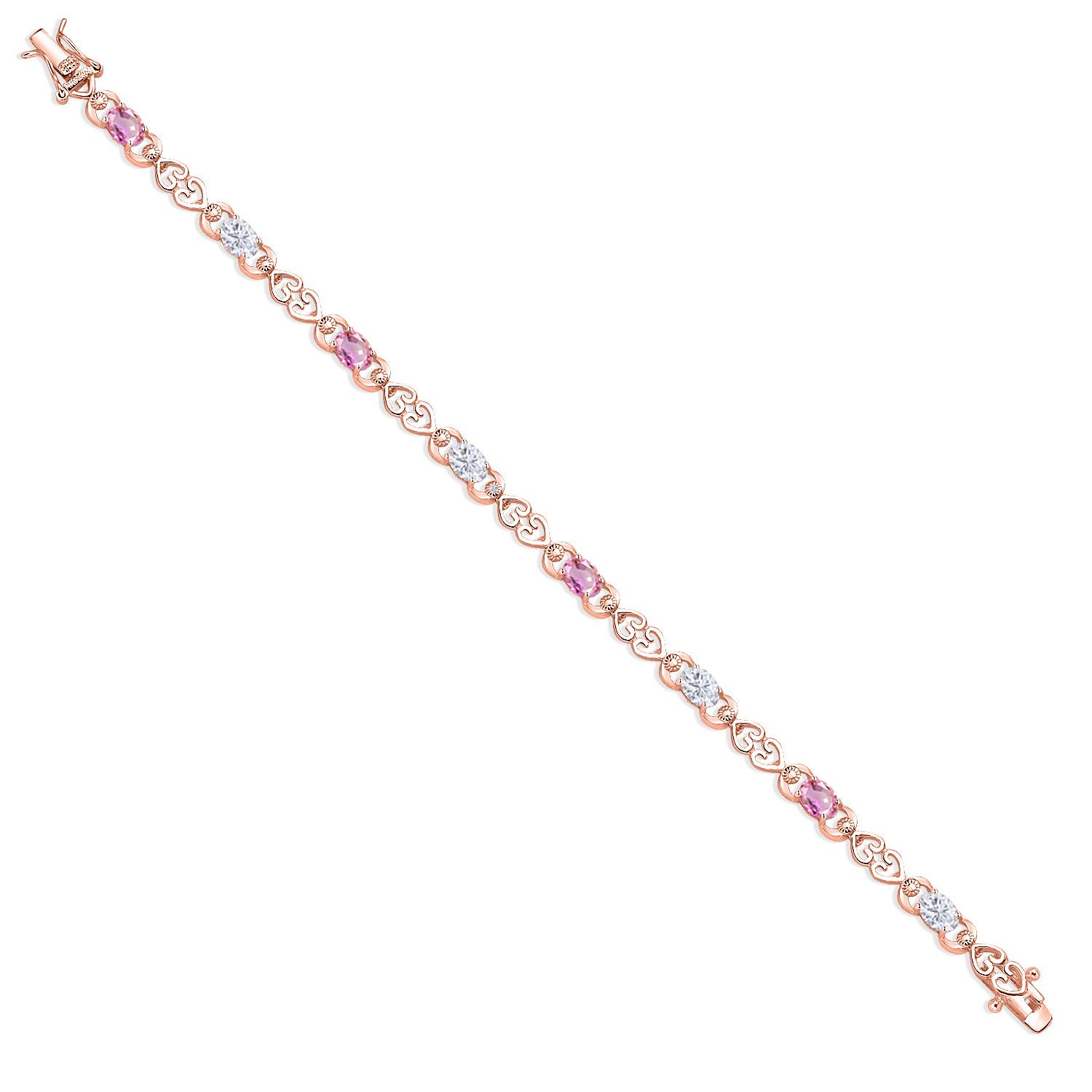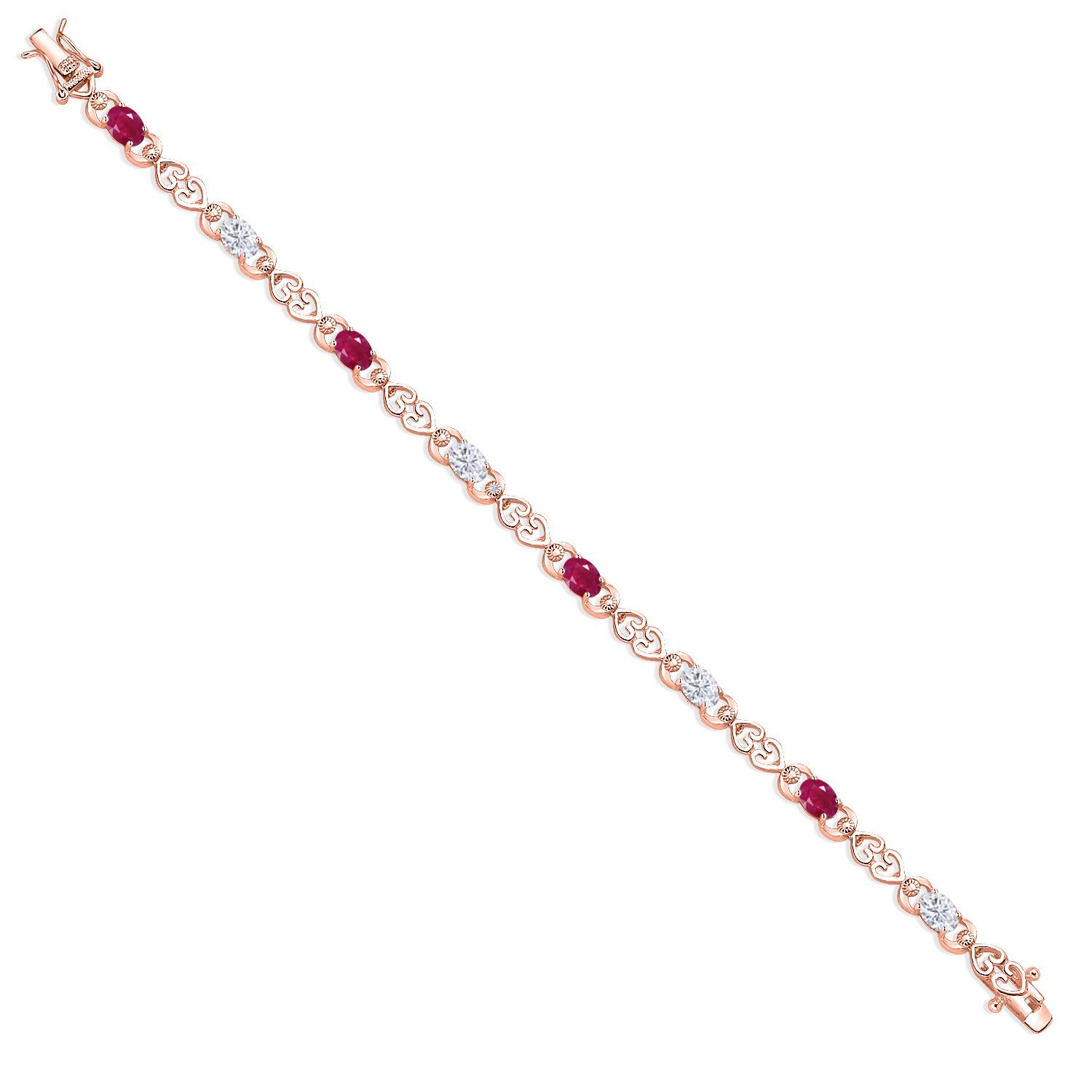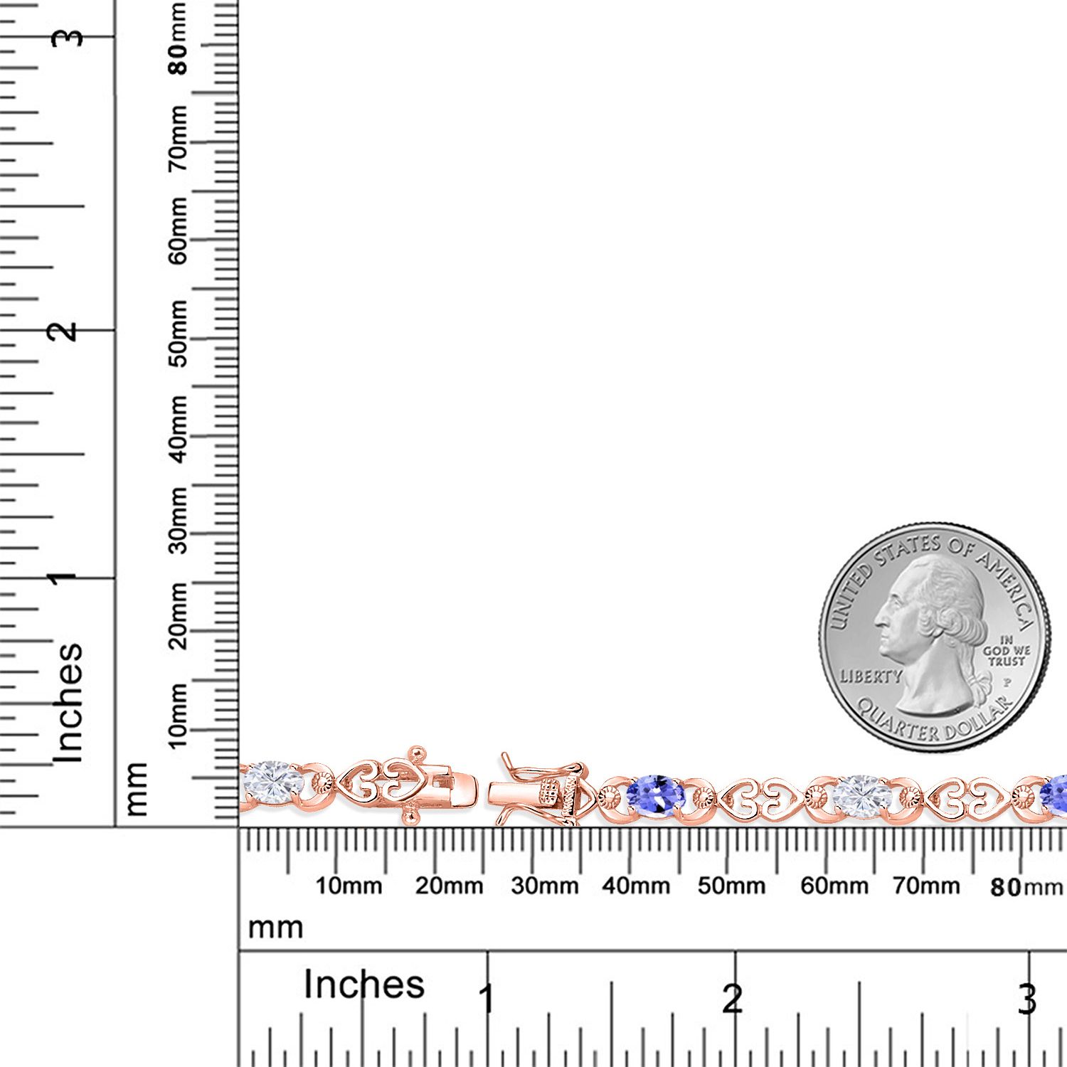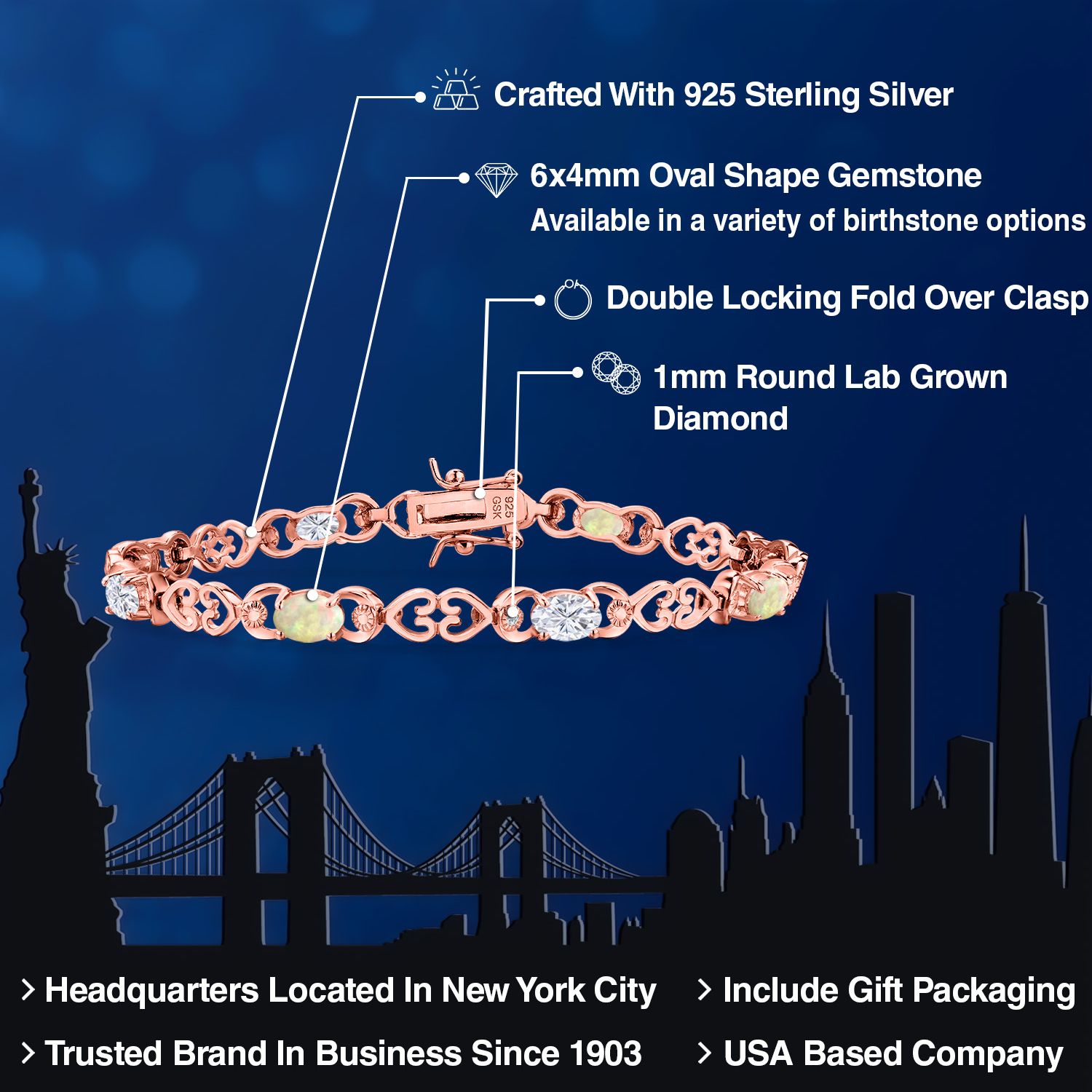 Gemstone Birthstone and Moissanite Heart Link Tennis Bracelet for Women | 18K Rose Gold Plated Silver | Oval 6X4MM | 7.25 Inch Length | Double Locking Fold Over Clasp | Jewelry for Her Mom Wife