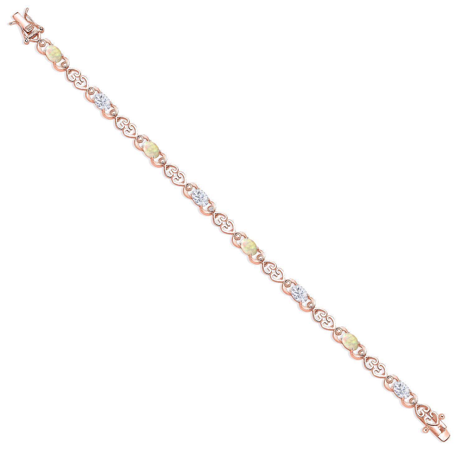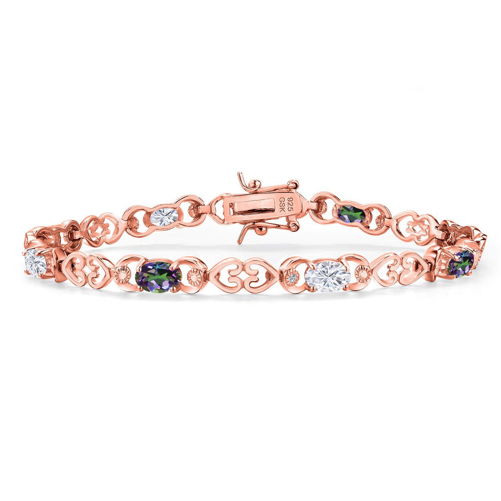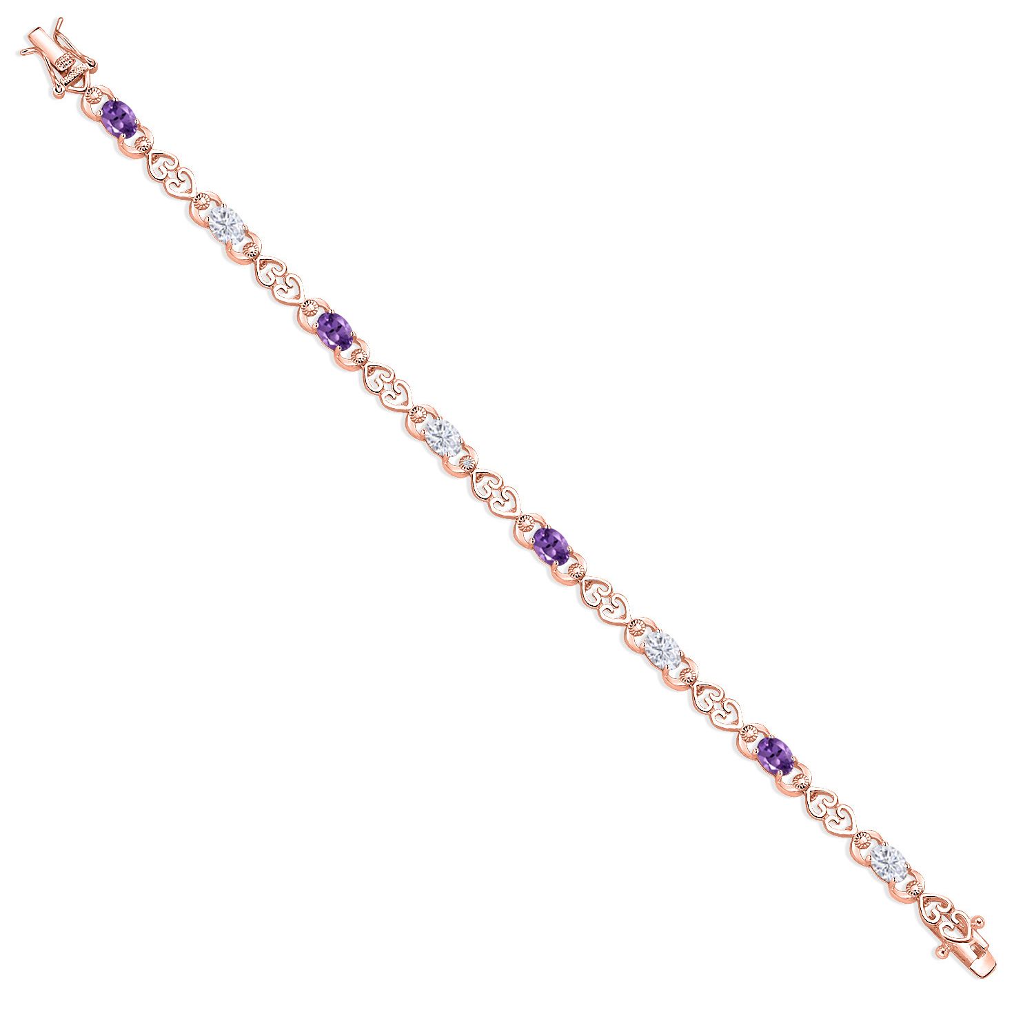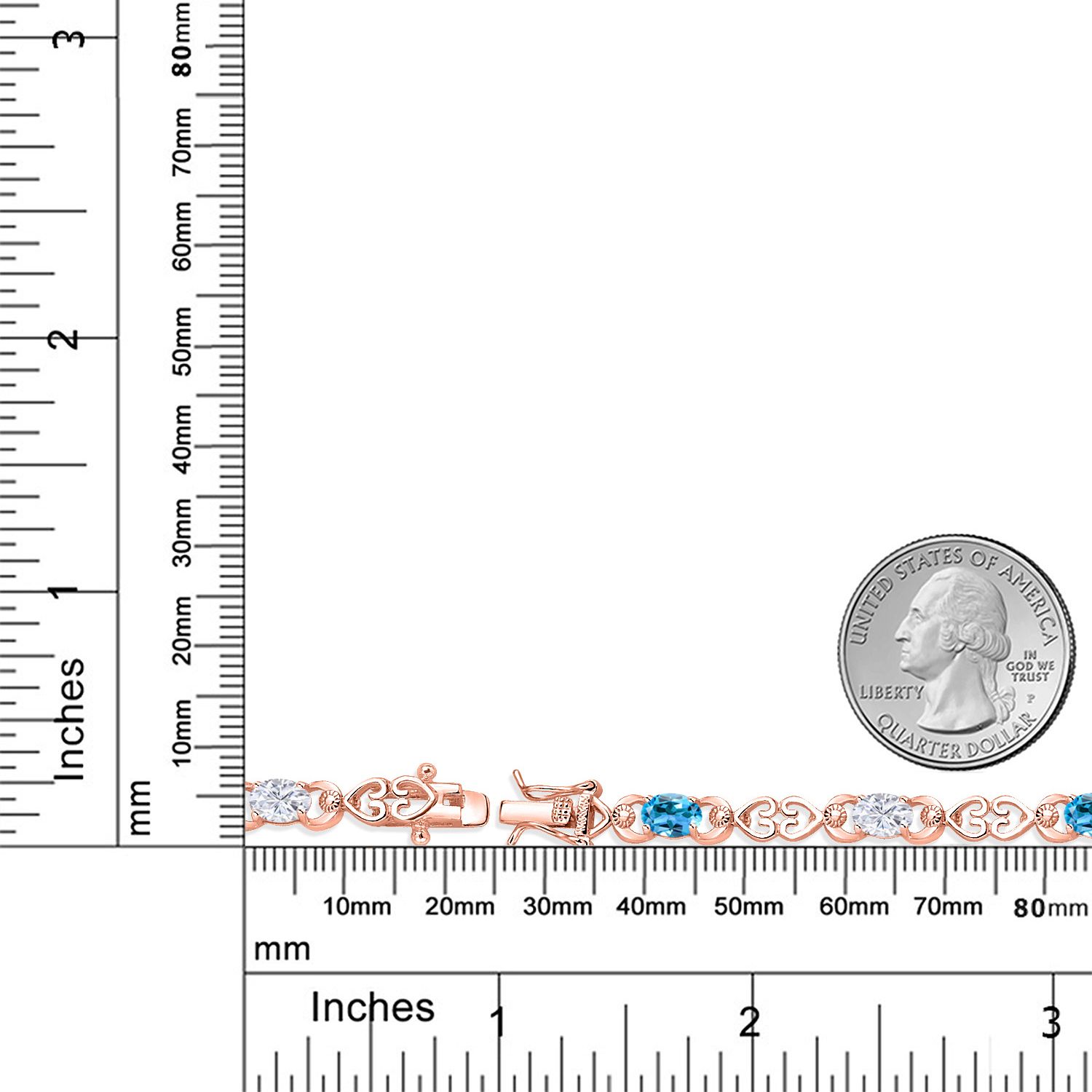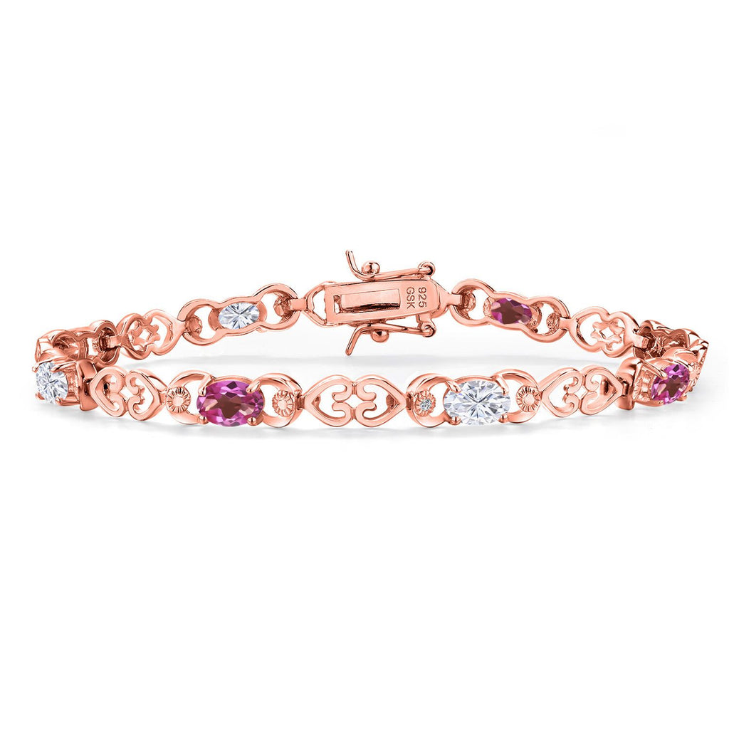Gemstone Birthstone and Moissanite Heart Link Tennis Bracelet for Women | 18K Rose Gold Plated Silver | Oval 6X4MM | 7.25 Inch Length | Double Locking Fold Over Clasp | Jewelry for Her Mom Wife