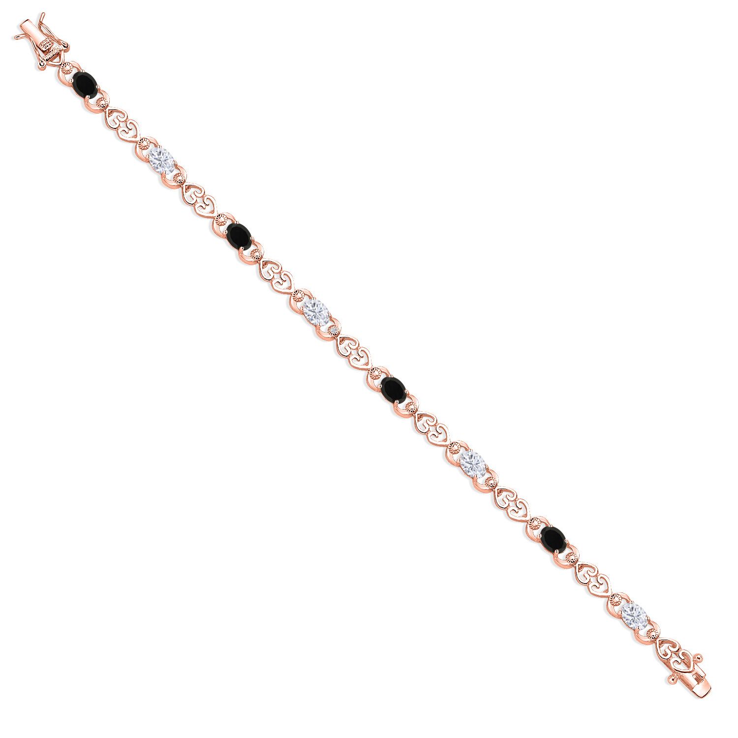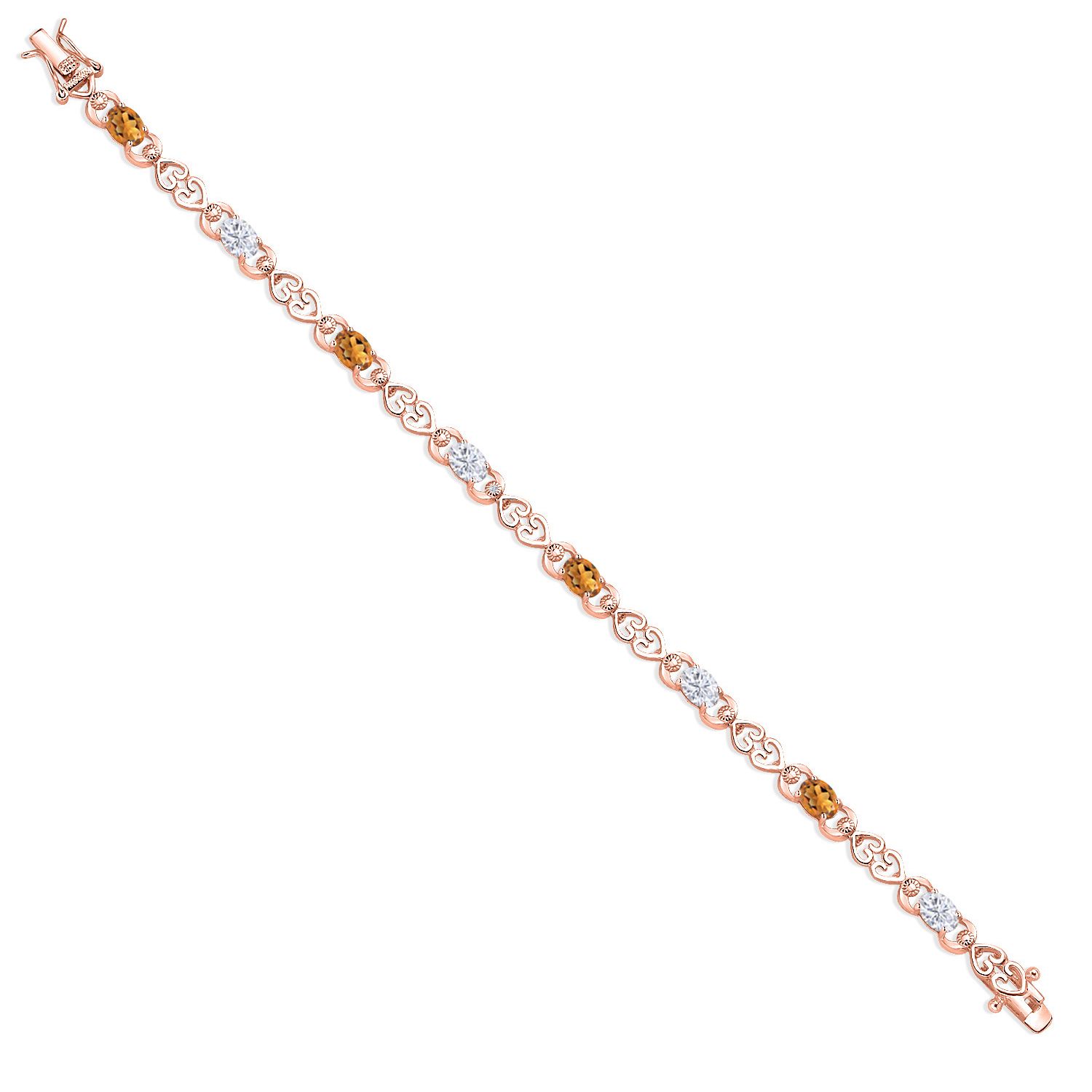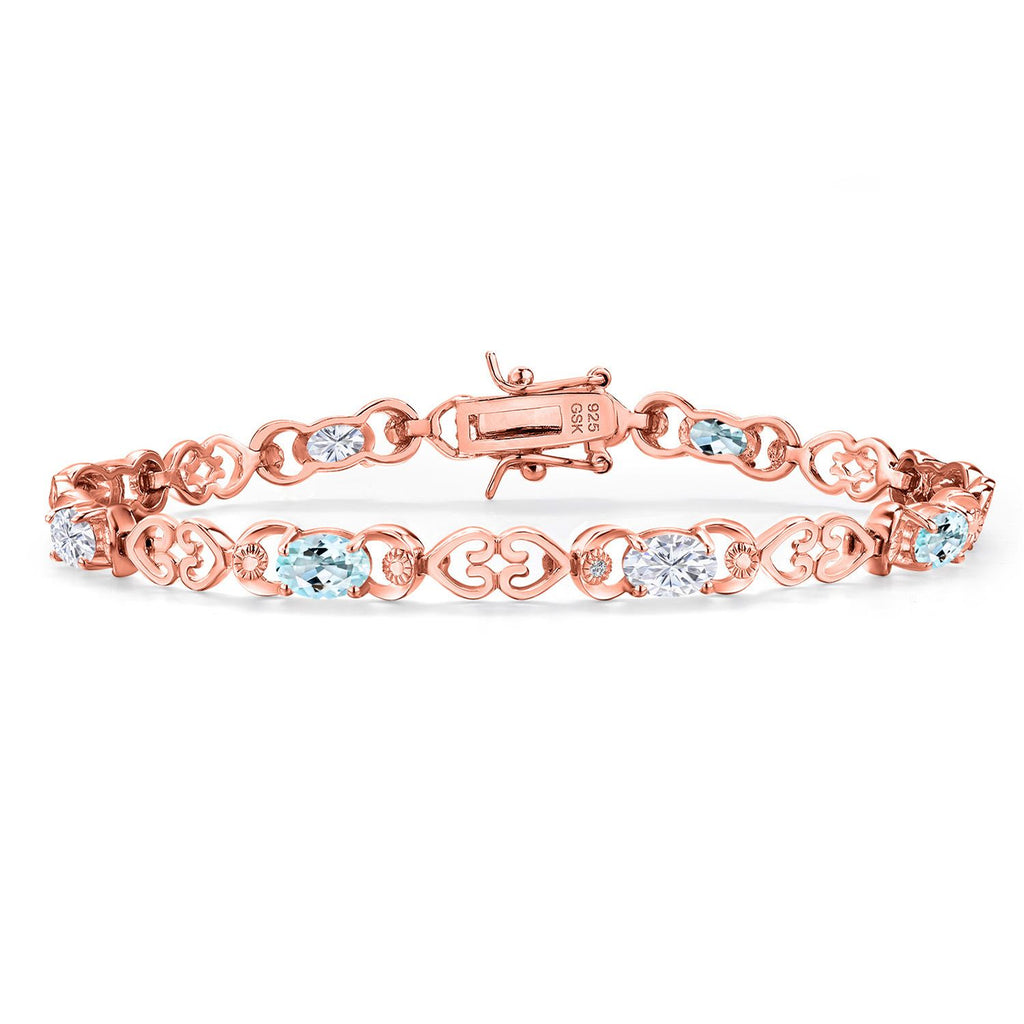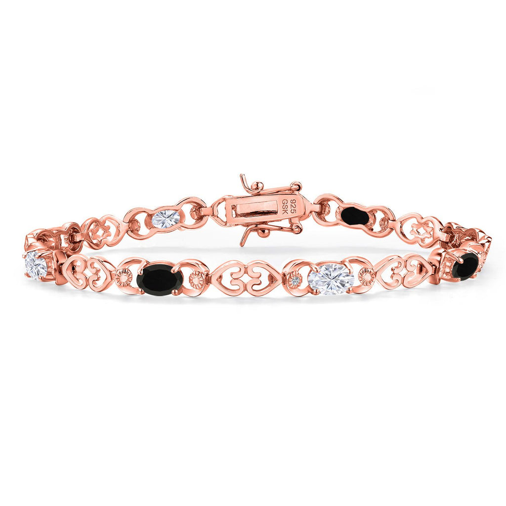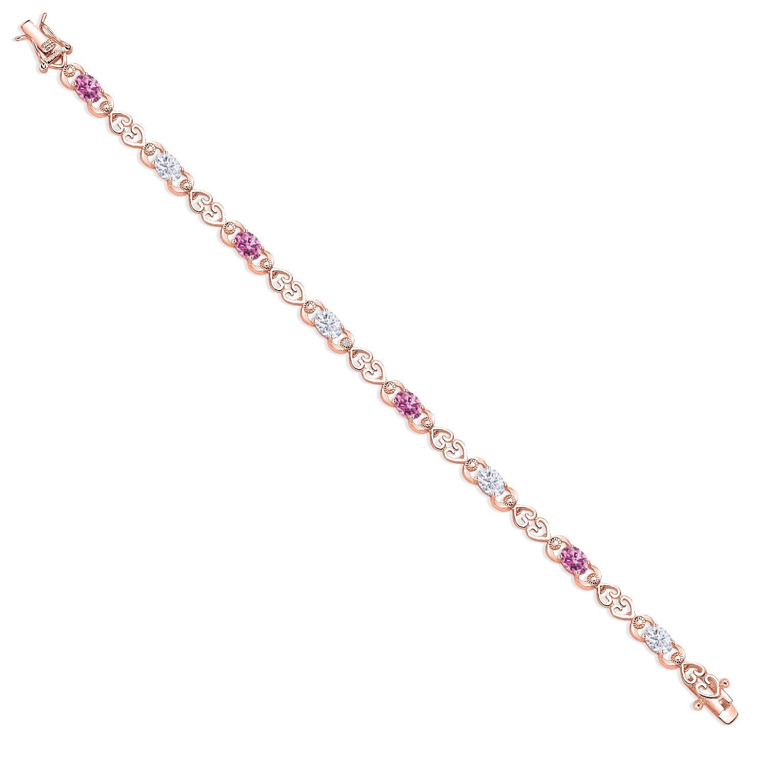 Gemstone Birthstone and Moissanite Heart Link Tennis Bracelet for Women | 18K Rose Gold Plated Silver | Oval 6X4MM | 7.25 Inch Length | Double Locking Fold Over Clasp | Jewelry for Her Mom Wife