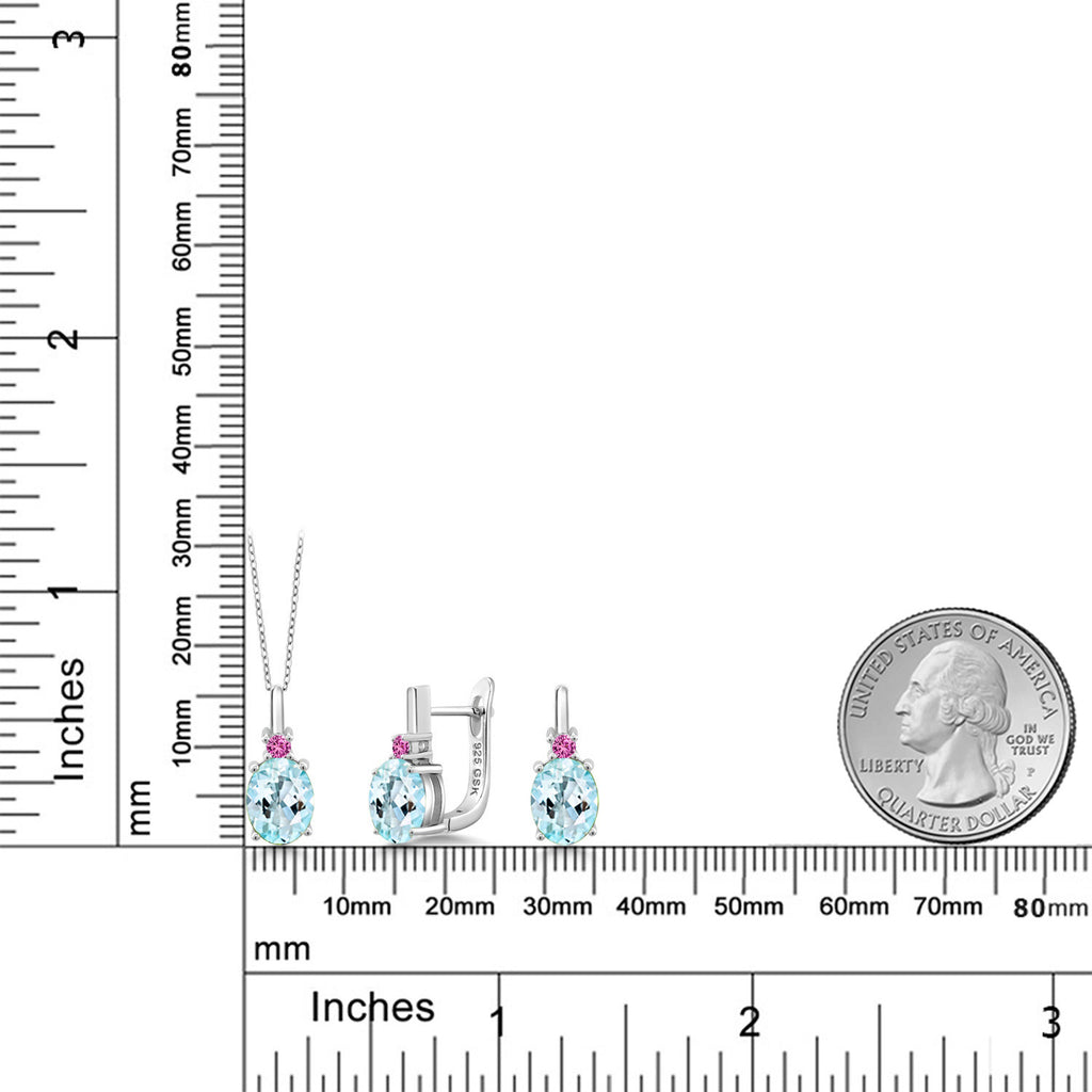 Gemstone Birthstone and Pink Created Sapphire Pendant and Earrings Jewelry Set for Women in 925 Sterling Silver | Oval 8X6MM and Round 2.5MM | Fine Jewelry for Her Mom Women Wife | With 18 Inch Chain