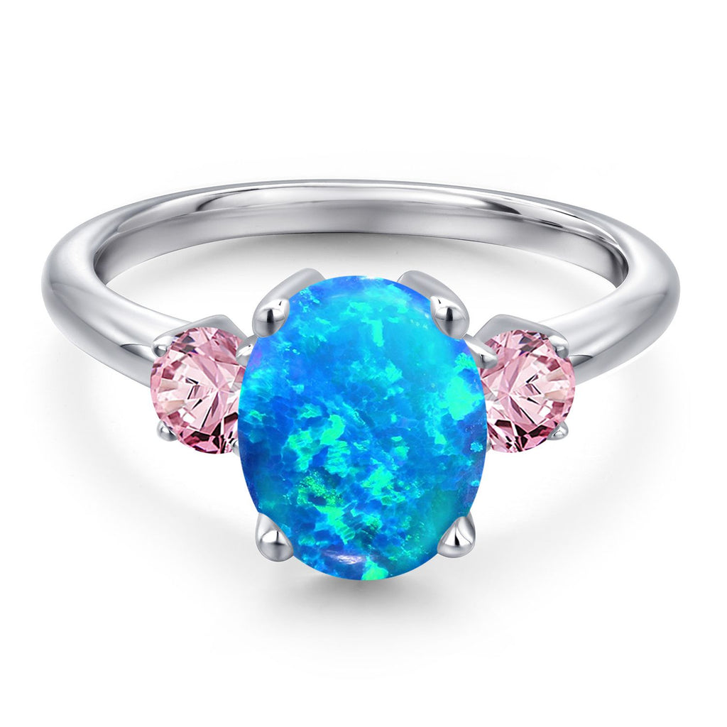 THREE-STONE DESIGN WITH LAB GROWN DIAMONDS: Featuring a round 4MM pink lab grown diamond on either side of the main gemstone, this three-stone setting symbolizes past, present, and future love. Each diamond is carefully selected for its exceptional brilliance and fire, enhancing the ring's overall allure. The precise craftsmanship ensures a seamless blend of stones and metal, showcasing a harmonious design that speaks of elegance and sophistication, crafted to perfection for discerning tastes.