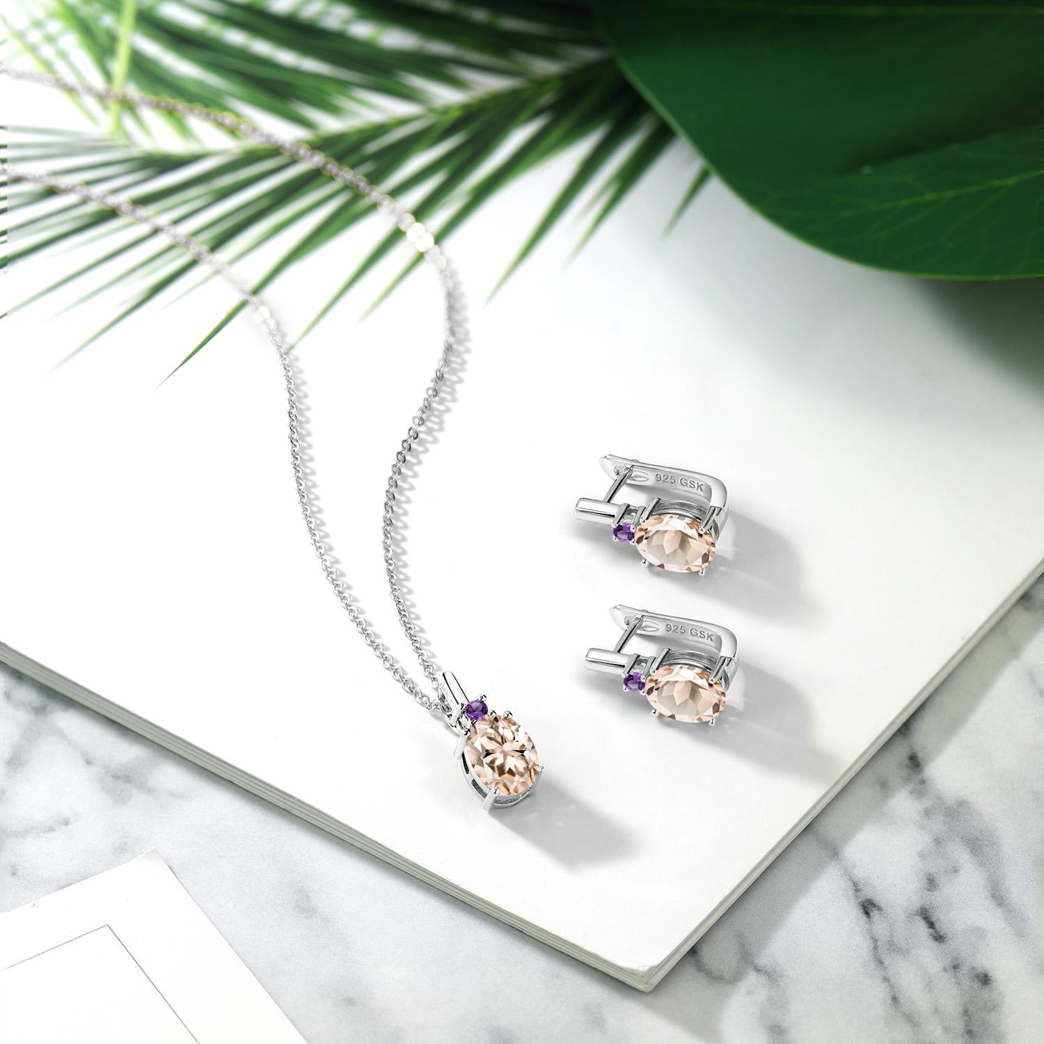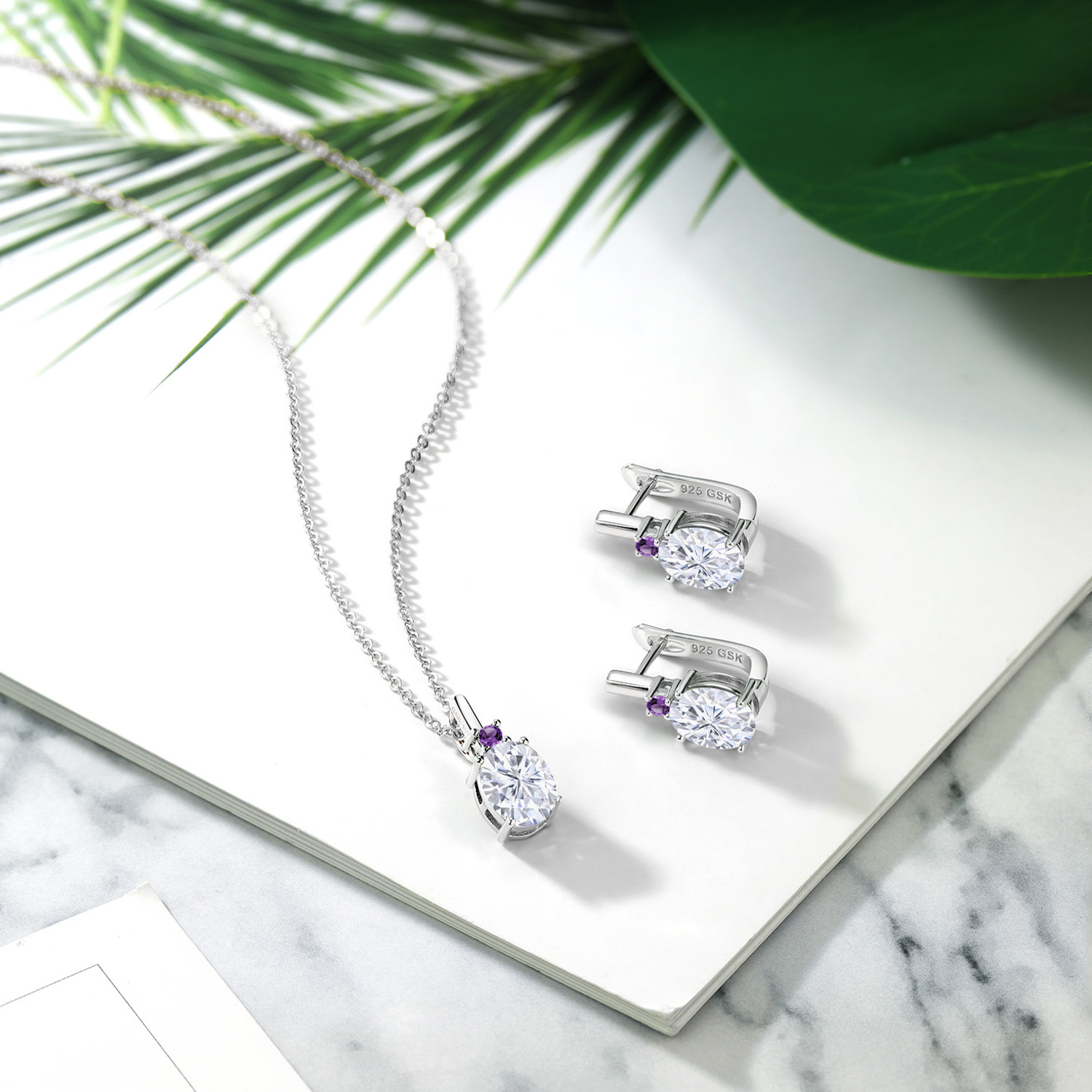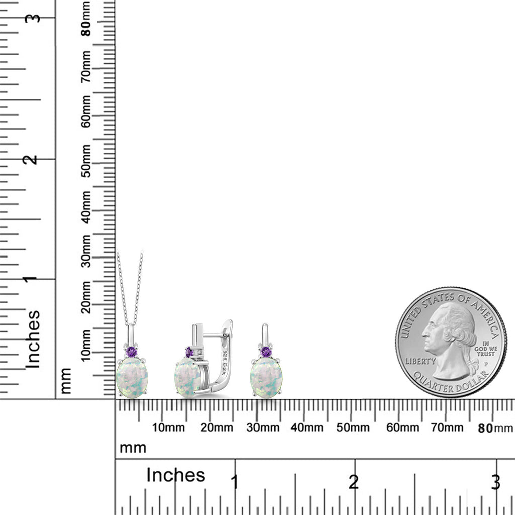 ELEGANT DESIGN WITH AMETHYST ACCENTS: This jewelry set features a timeless design highlighted by 2.5MM round purple amethyst accents that sit just above the oval center stones. The amethysts add a touch of regal color, perfectly complementing the opalescent birthstones. Set in a clean and classic silhouette, the pendant and earrings reflect thoughtful craftsmanship with smooth prong settings and a graceful drop style that flatters any neckline or face shape.