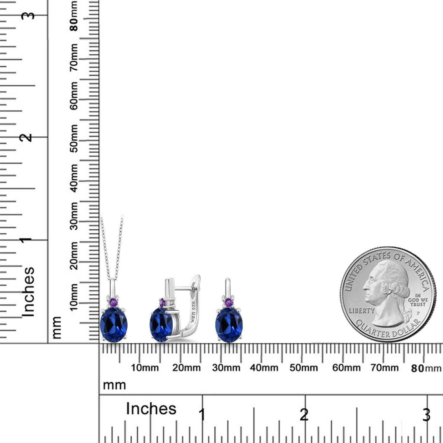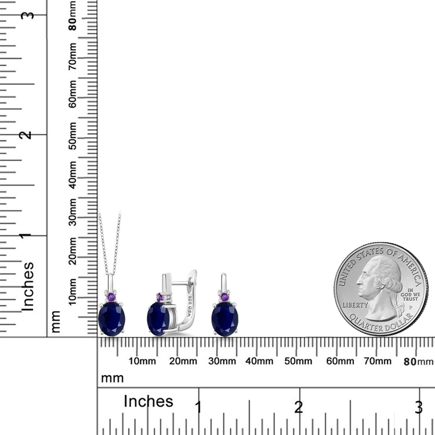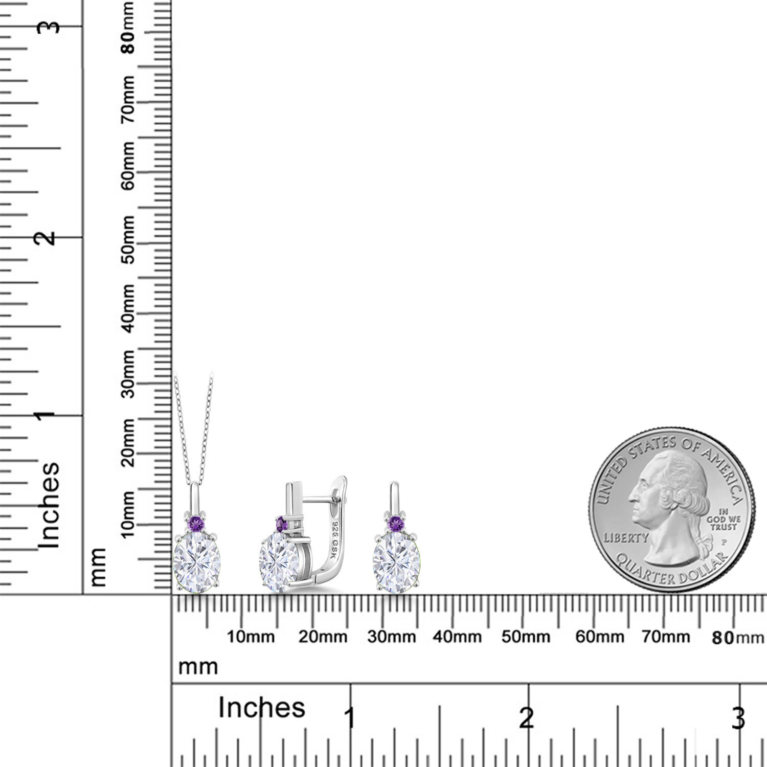 Gemstone Birthstone and Purple Amethyst Pendant and Earrings Jewelry Set for Women | 925 Sterling Silver | Oval 8X6MM and Round 2.5MM | Fine Jewelry Set for Her Mom Women Wife | With 18 Inch Chain