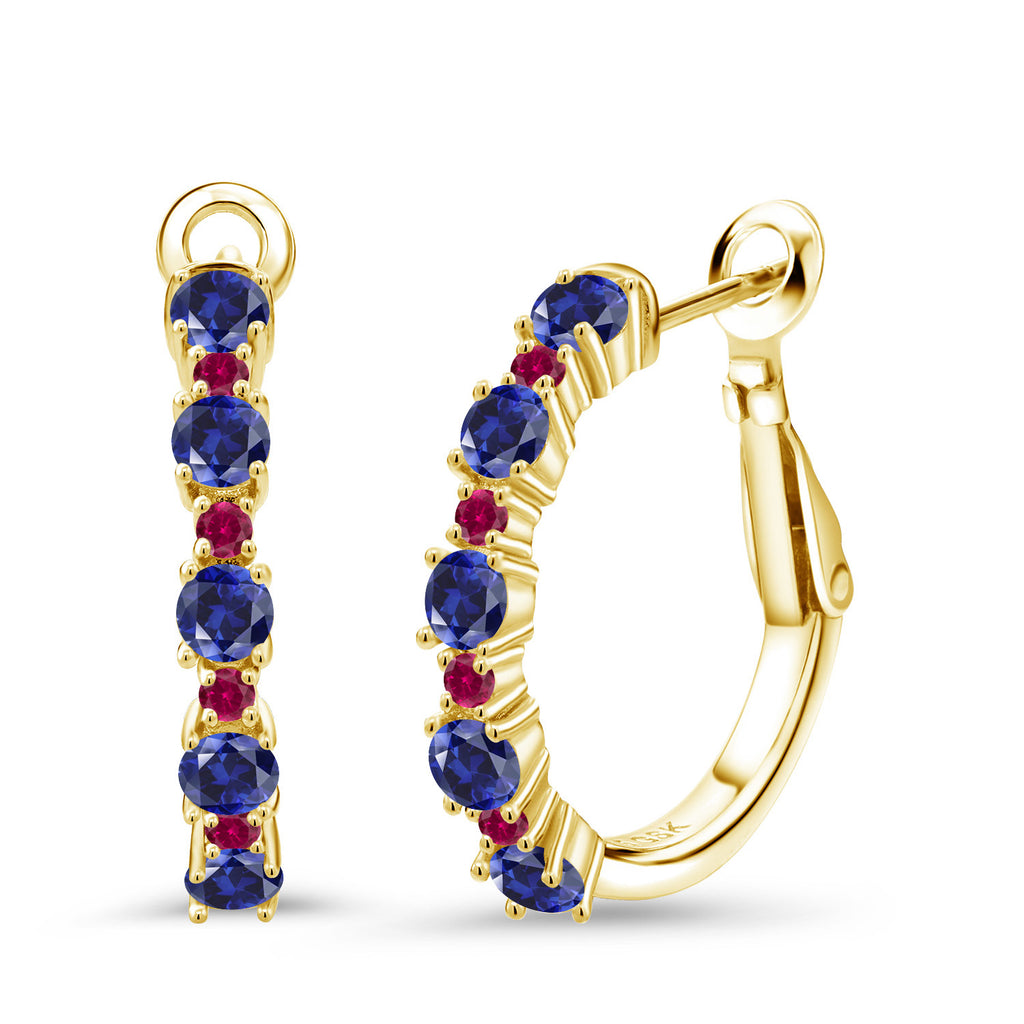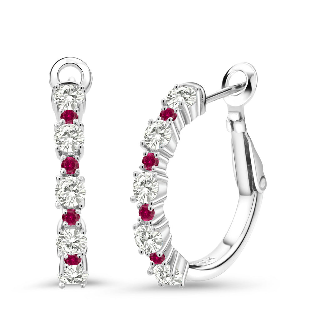 Gemstone Birthstone and Red Created ruby Hoop Earrings for Women | 925 Sterling Silver | Round 3MM and 1.8MM | 3/7 Inch Diameter | Fine Jewelry for Her Mom Wife