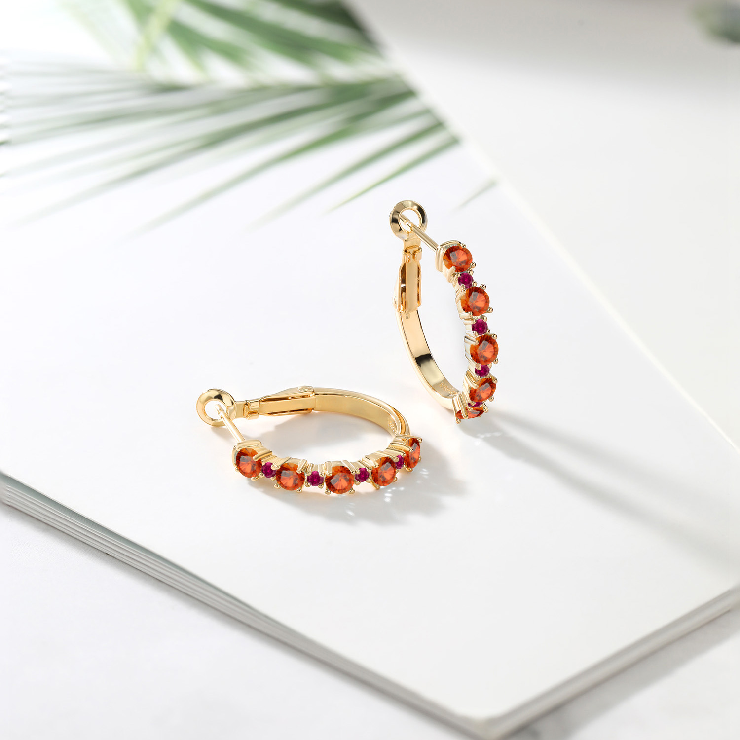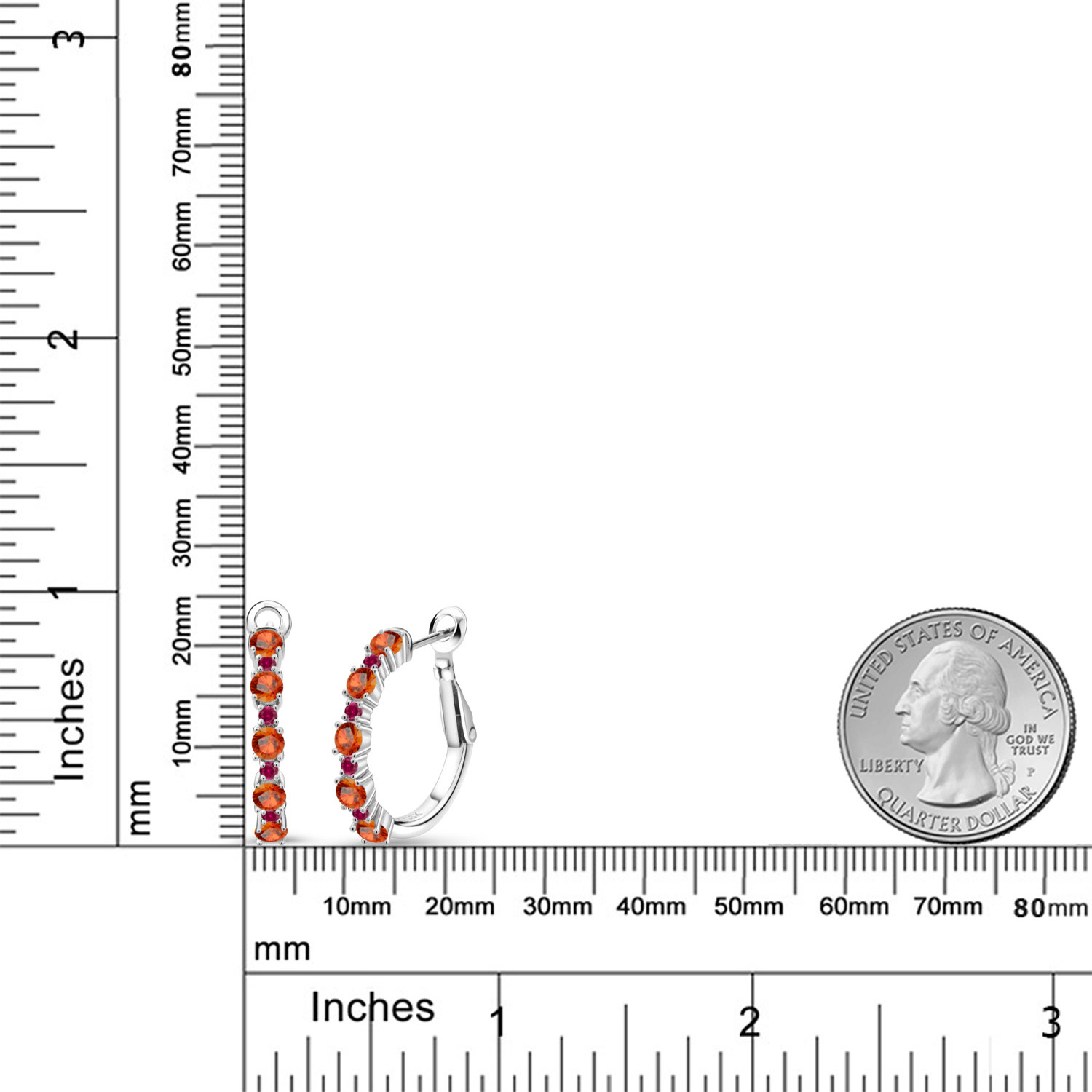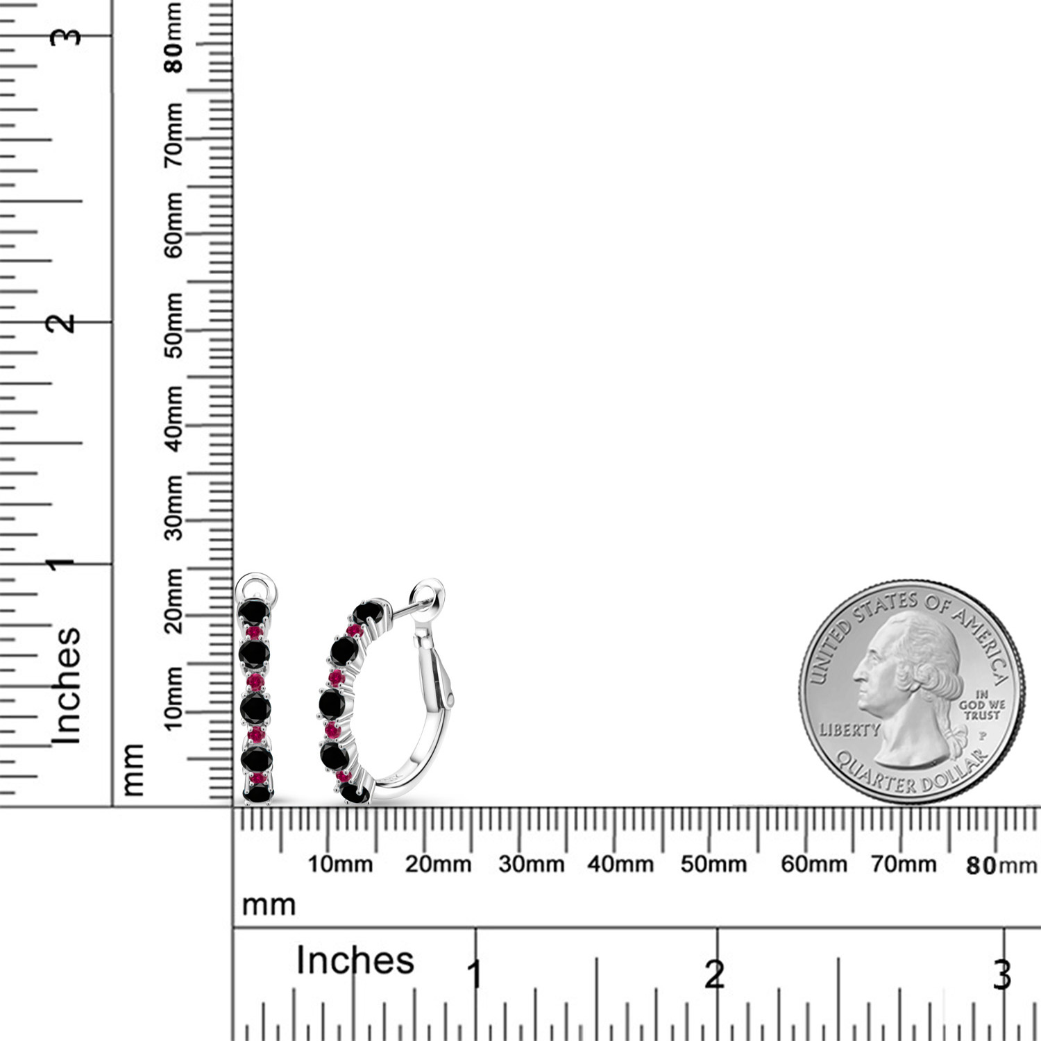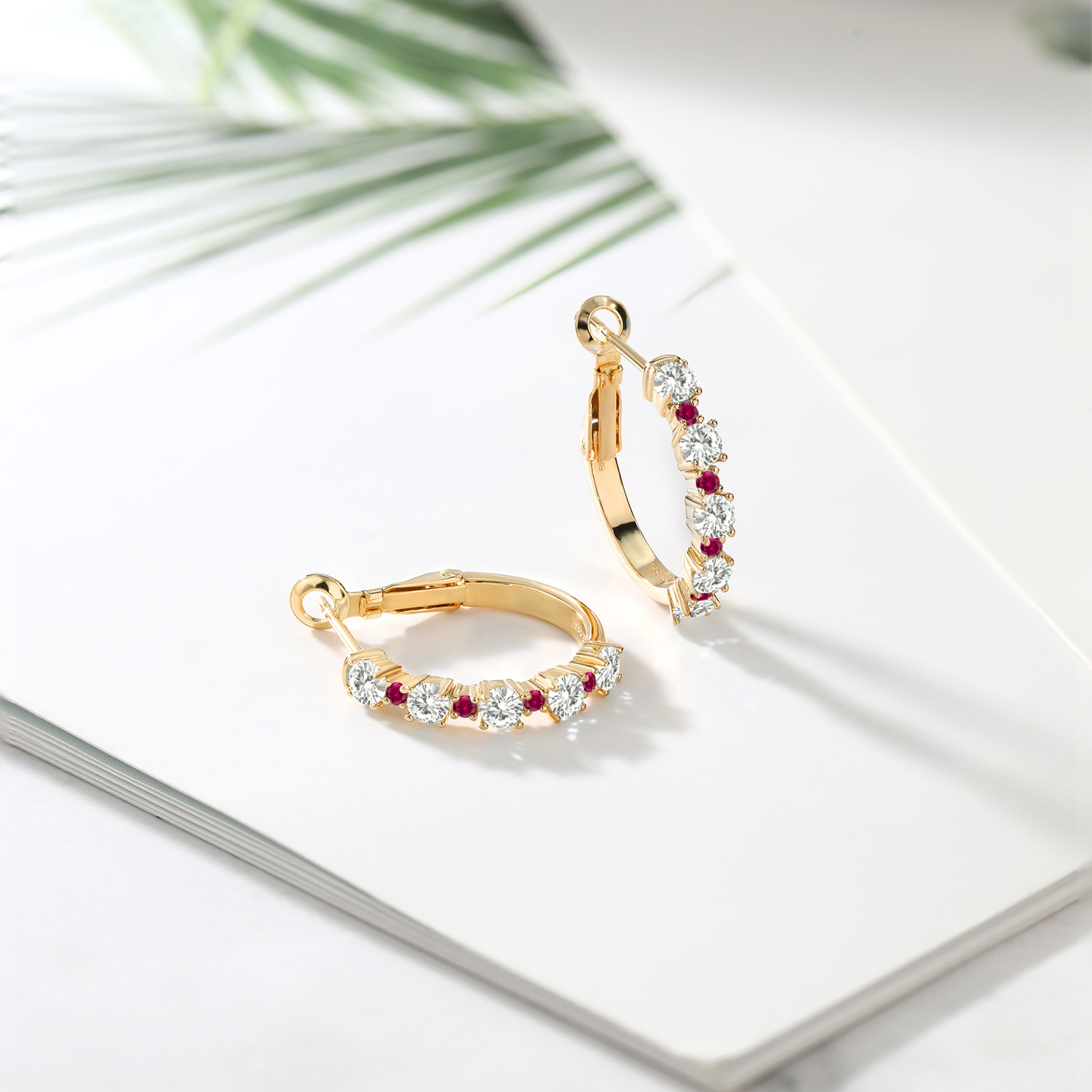 Created Ruby Accents: Bursting with the vibrant hue of 1.8MM created ruby accent stones, these hoops are designed for bold sparkle and unforgettable charm. Their alternating placement creates a fiery cadence along the delicate curve. A 3/7 inch diameter ensures a fitted, flattering profile, perfect for any occasion. Prong settings let light flood the rubies’ surfaces, enhancing their rich red radiance with dynamic brilliance and energy.