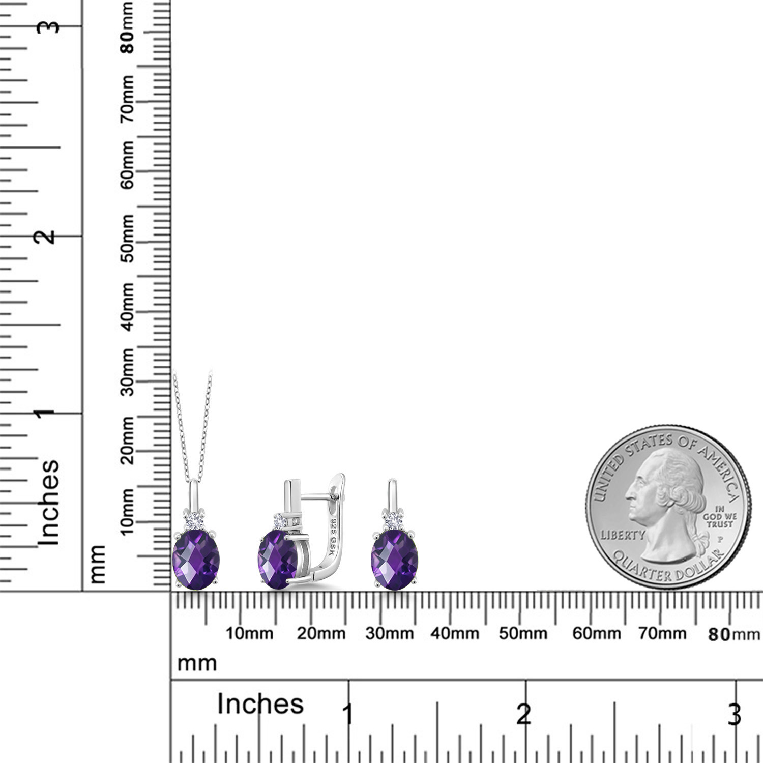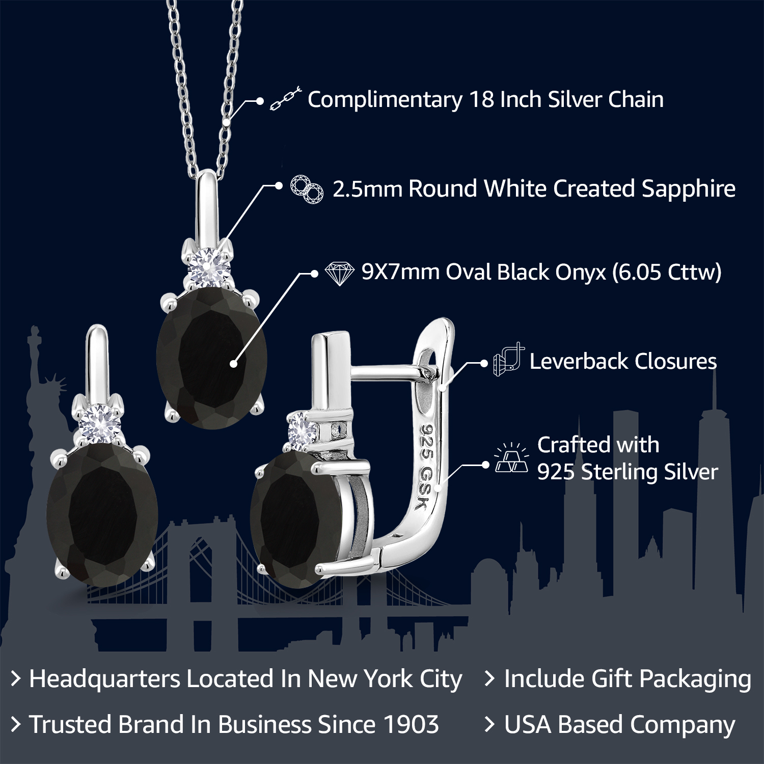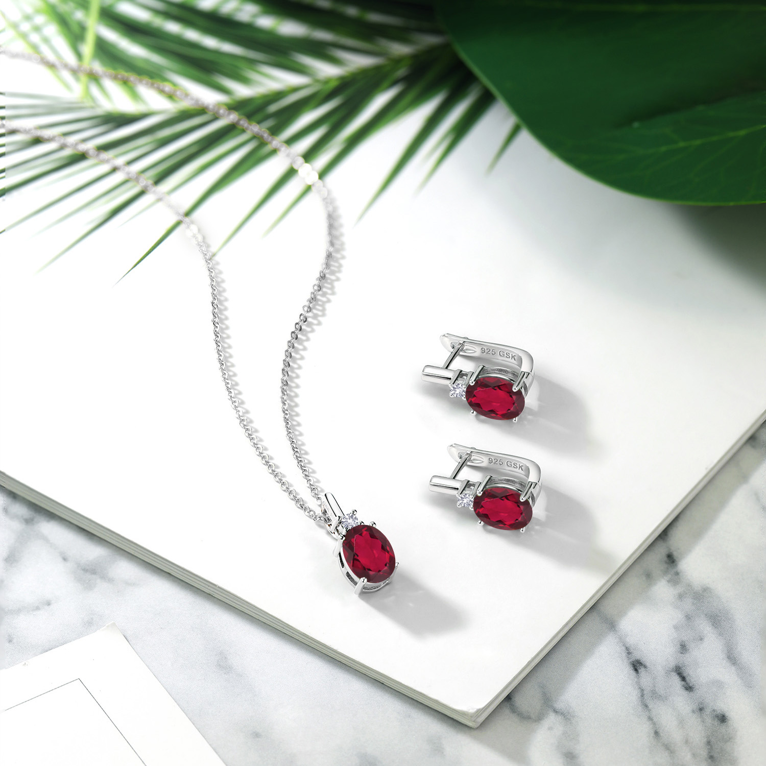 Gemstone Birthstone and White Created Sapphire Pendant and Earrings Jewelry Set for Women in 925 Sterling Silver | Oval 8X6MM and Round 2.5MM | With 18 Inch Chain | Fine Jewelry for Her Mom Women Wife