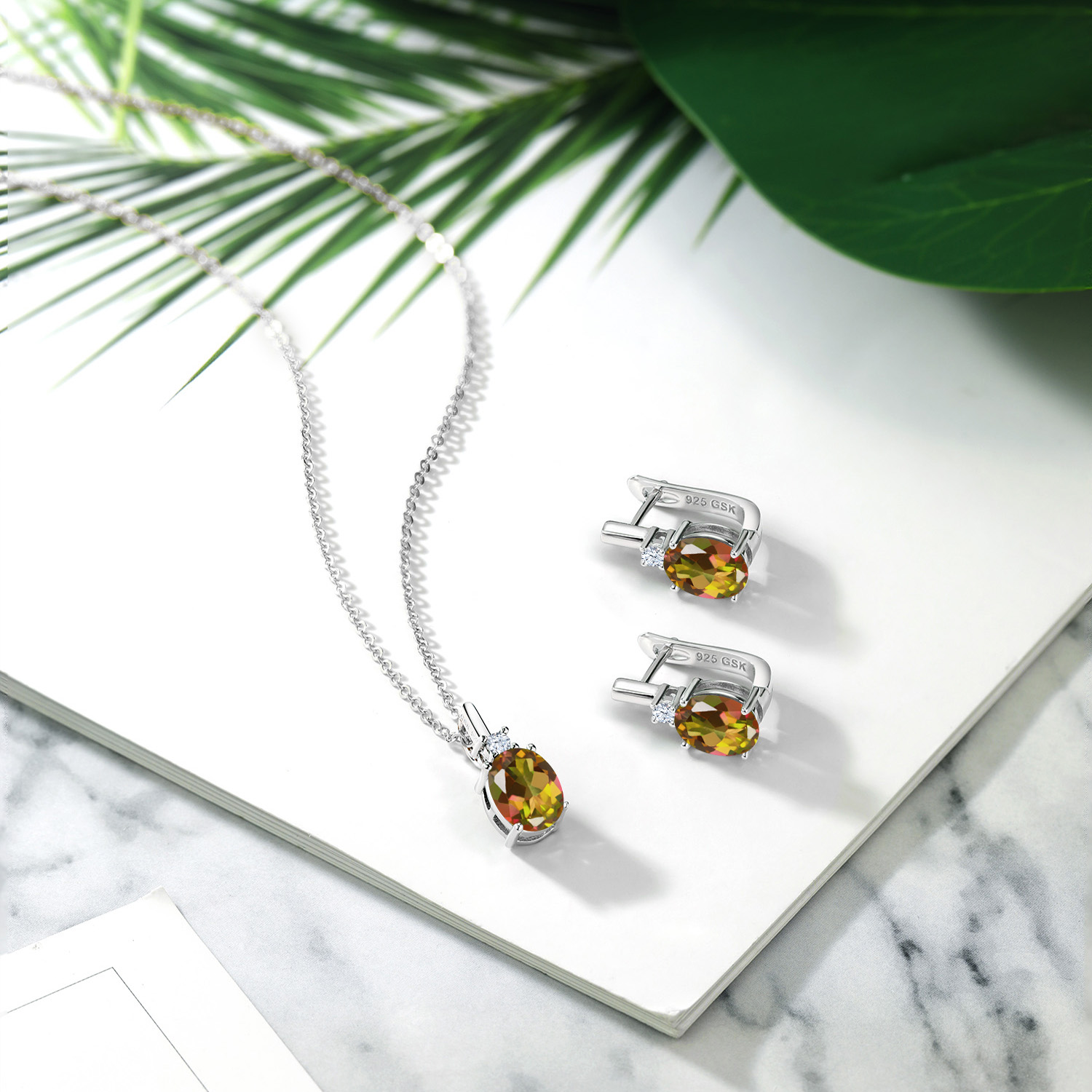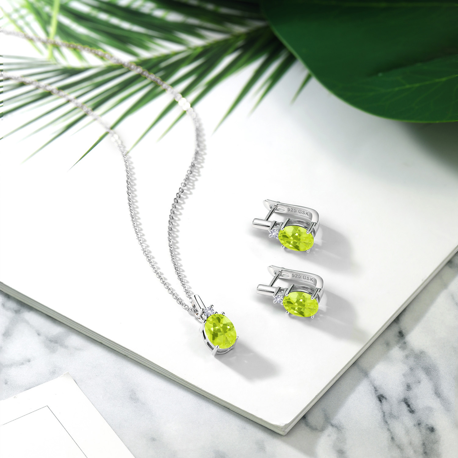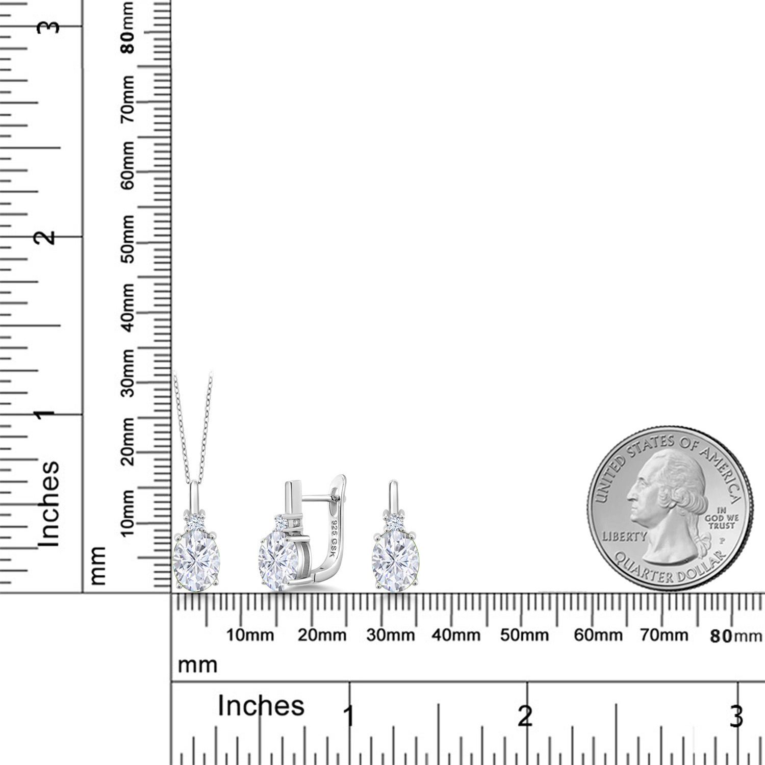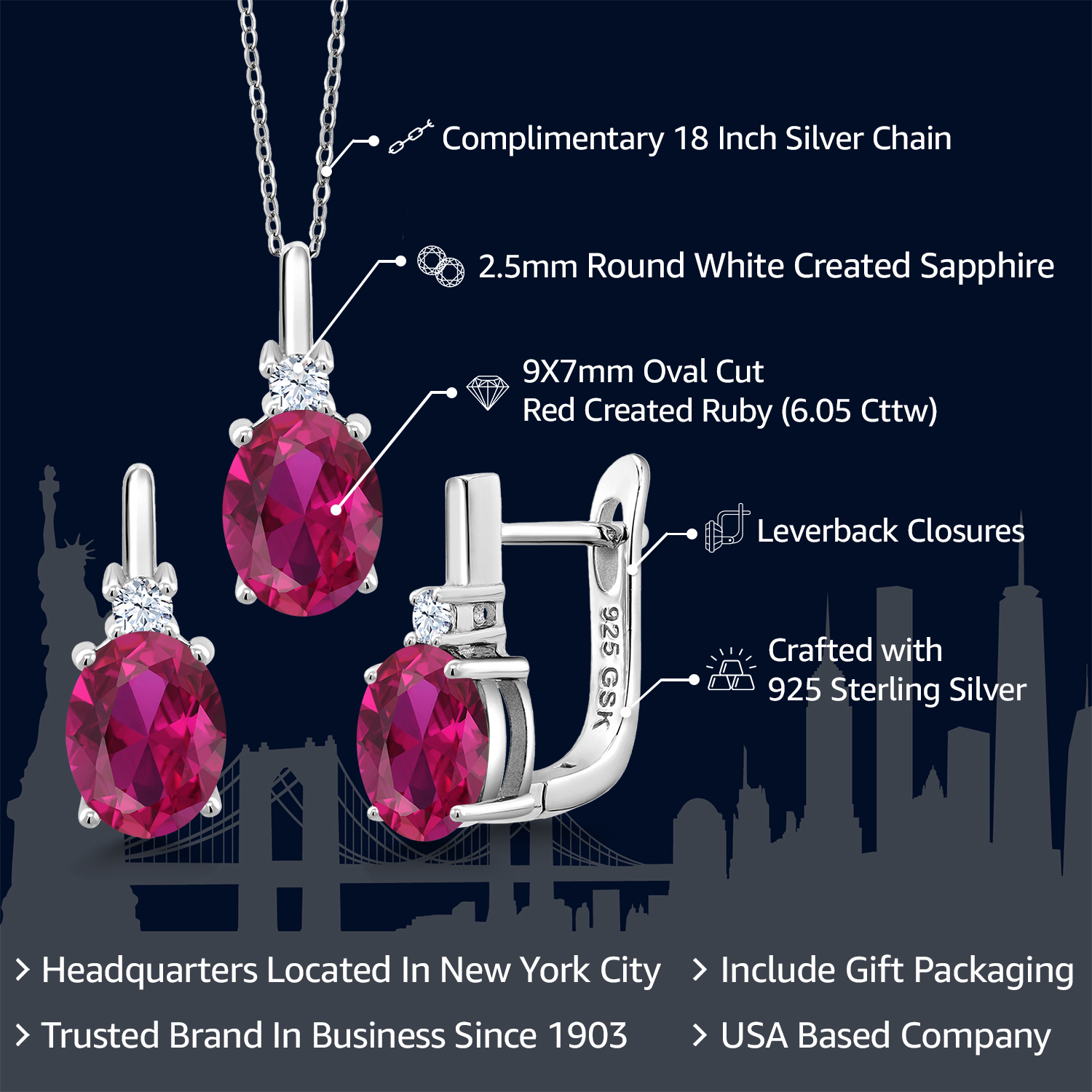 Gemstone Birthstone and White Created Sapphire Pendant and Earrings Jewelry Set for Women in 925 Sterling Silver | Oval 8X6MM and Round 2.5MM | With 18 Inch Chain | Fine Jewelry for Her Mom Women Wife