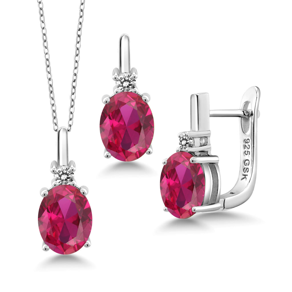 Gemstone Birthstone and White Diamond Pendant and Earrings Jewelry Set for Women in 925 Sterling Silver | Oval 8X6MM and Round 2.5MM | Fine Jewelry Set for Her Mom Women Wife | With 18 Inch Chain
