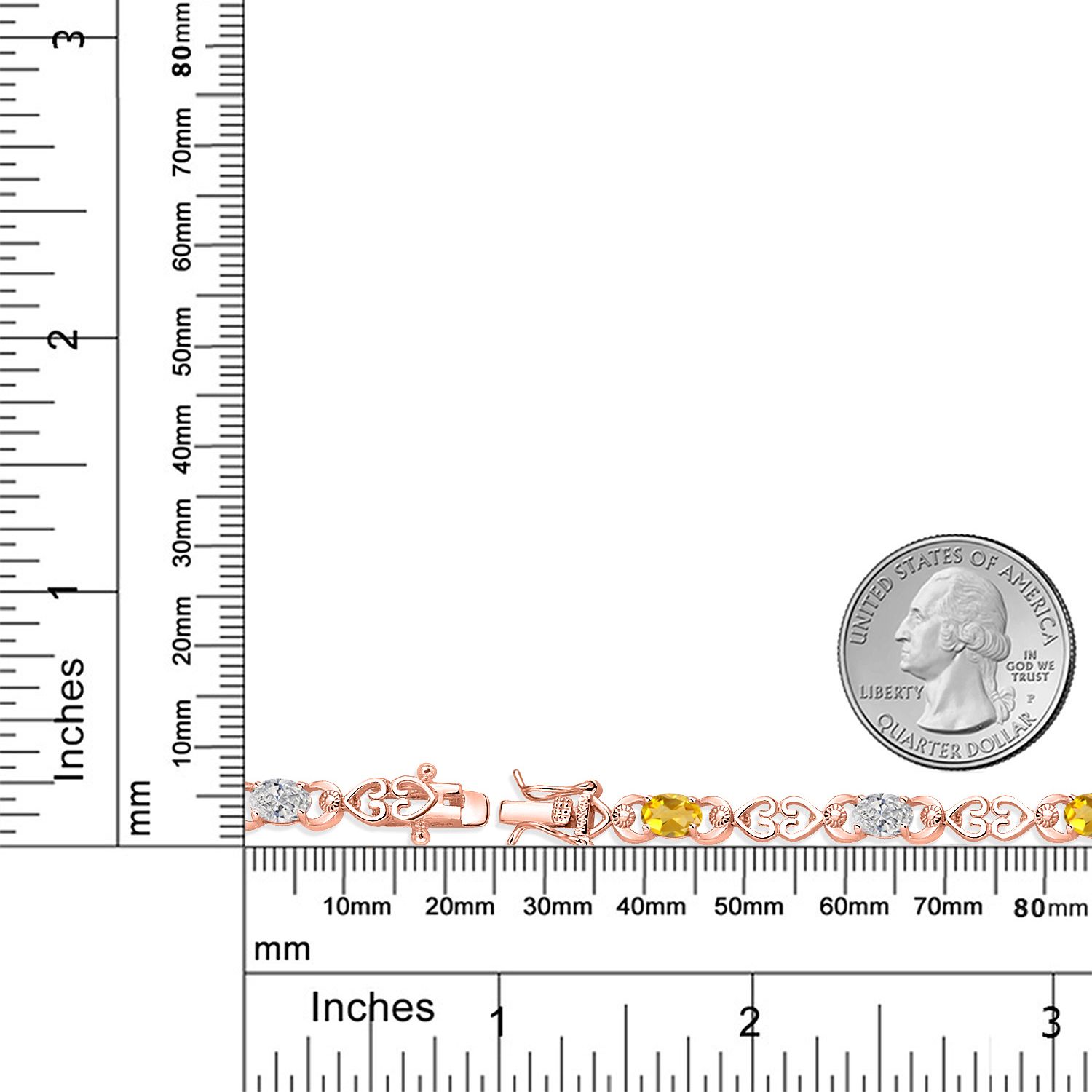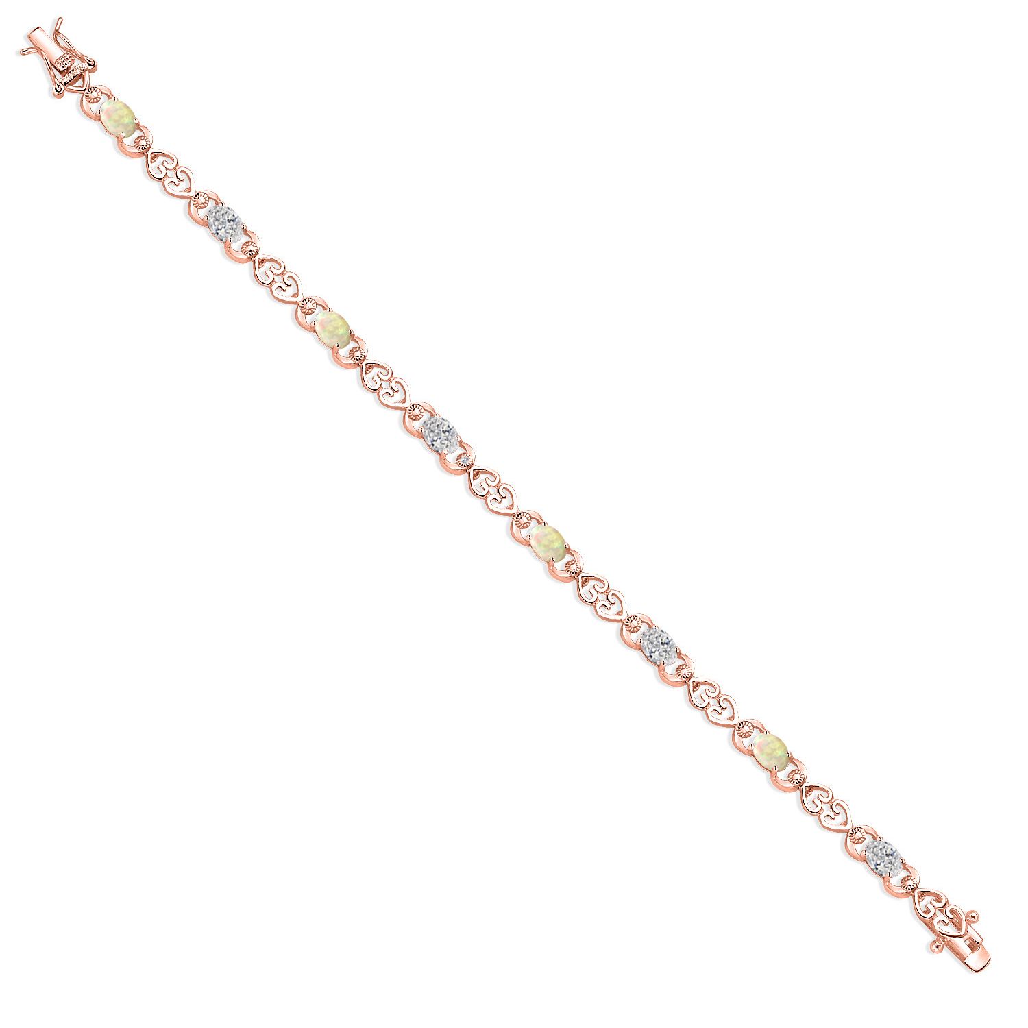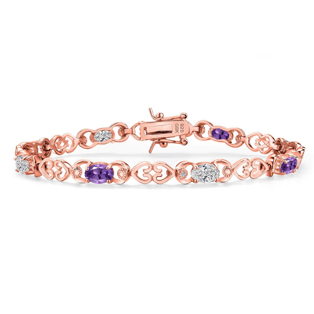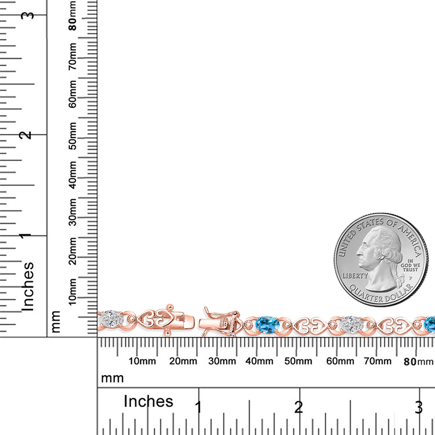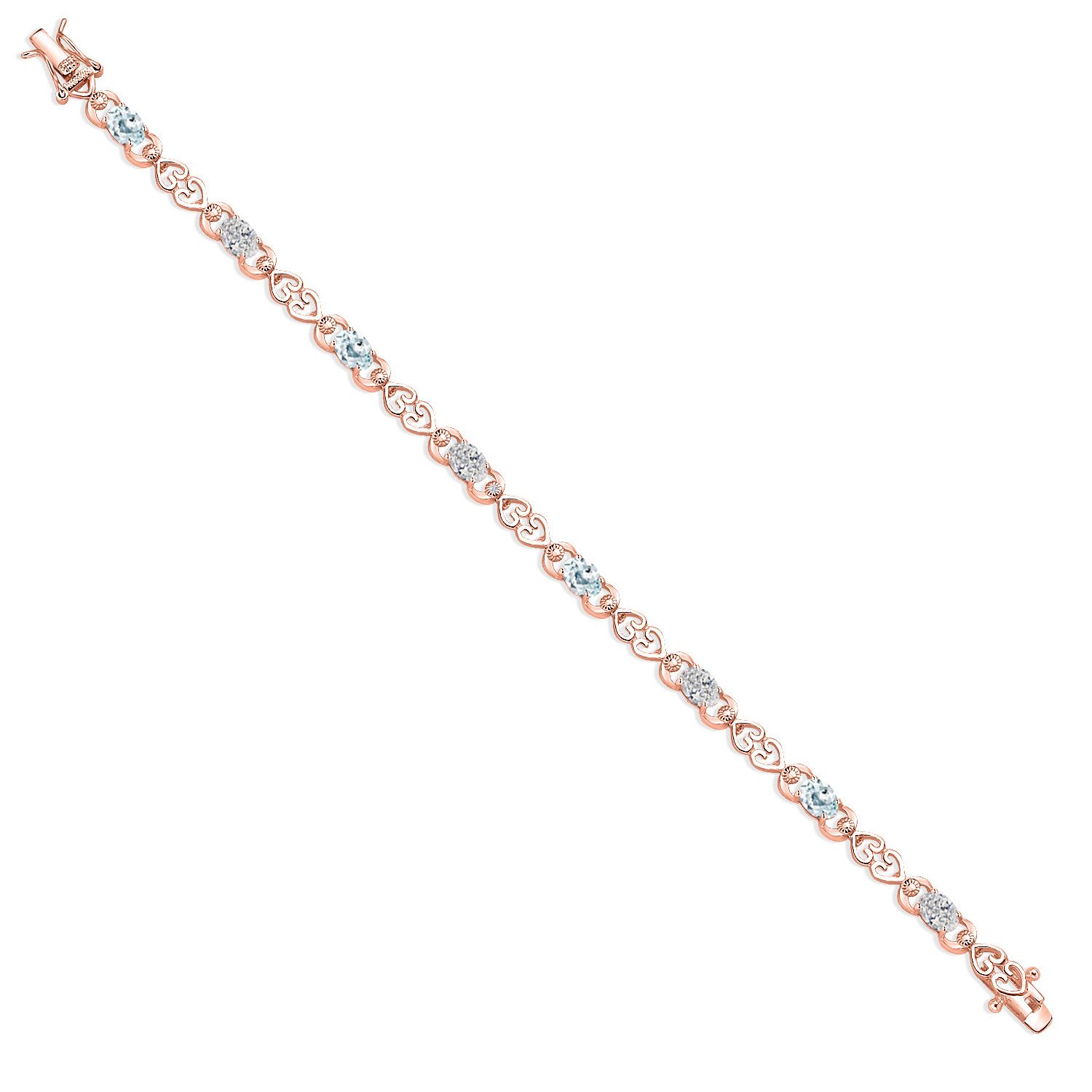 Gemstone Birthstone and White Lab Grown Diamond Heart Link Tennis Bracelet for Women | 18K Rose Gold Plated Silver | Oval 6X4MM | 7.25 Inch Length | Double Locking Fold Over Clasp