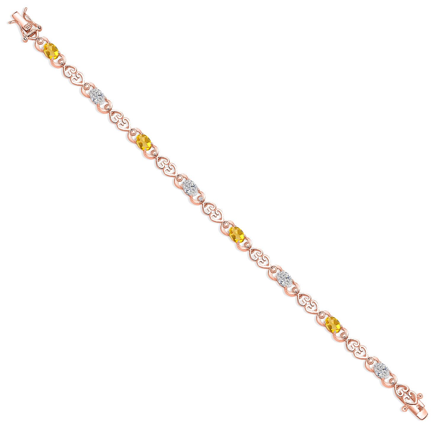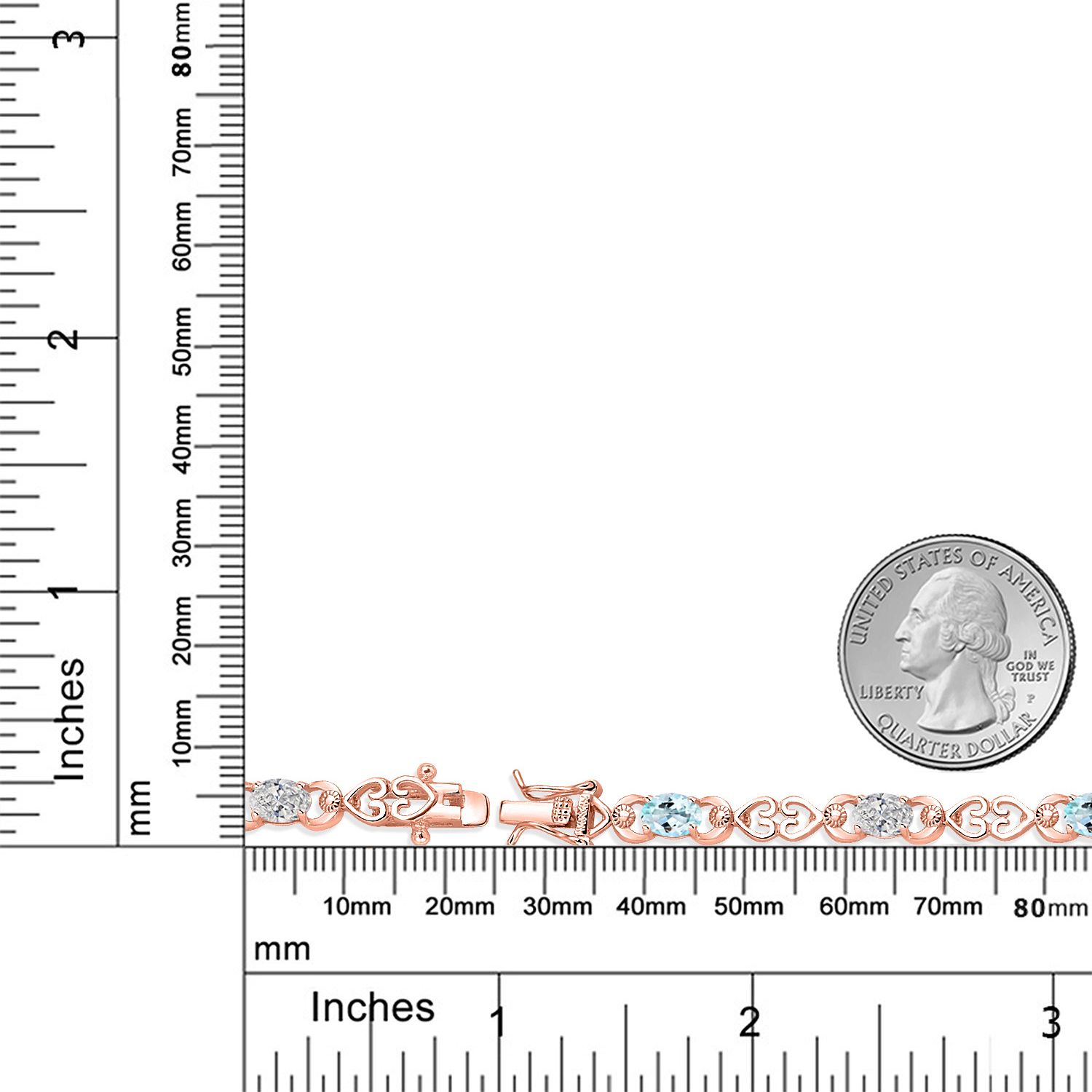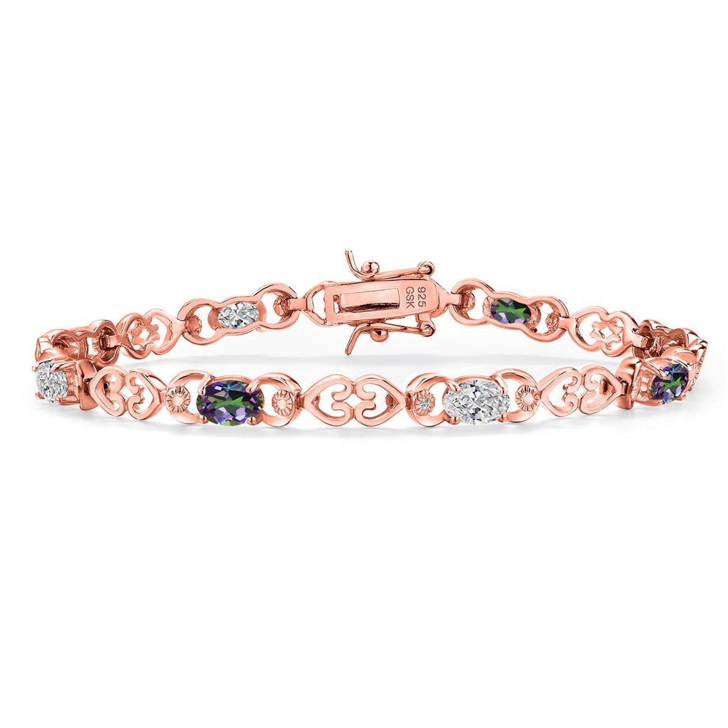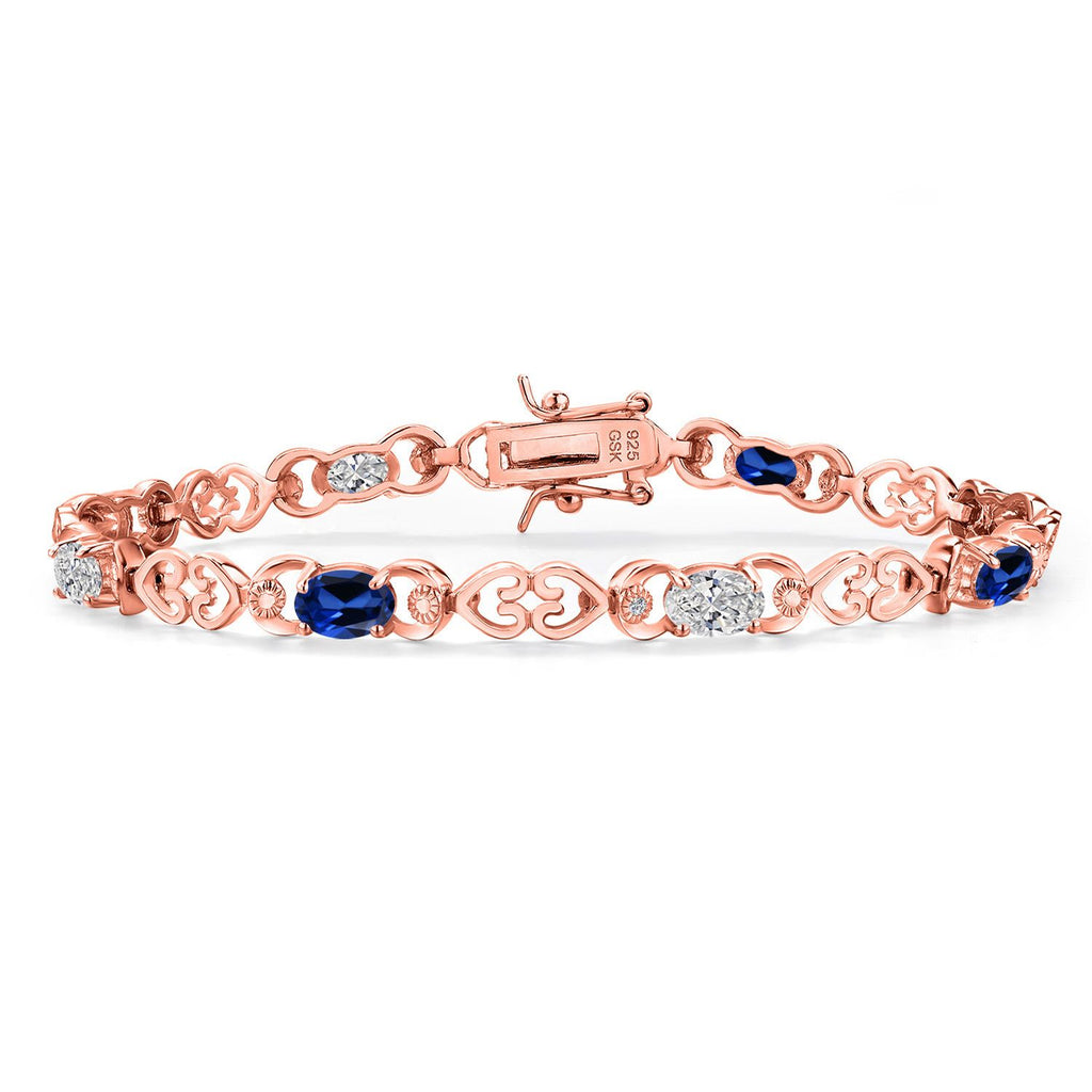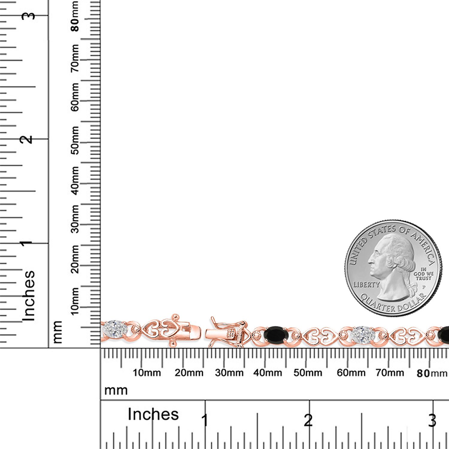 Gemstone Birthstone and White Lab Grown Diamond Heart Link Tennis Bracelet for Women | 18K Rose Gold Plated Silver | Oval 6X4MM | 7.25 Inch Length | Double Locking Fold Over Clasp