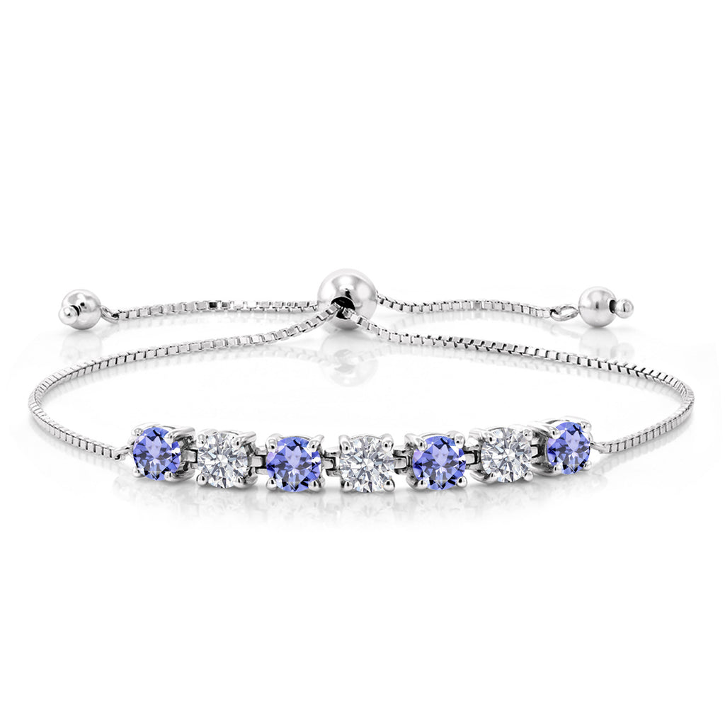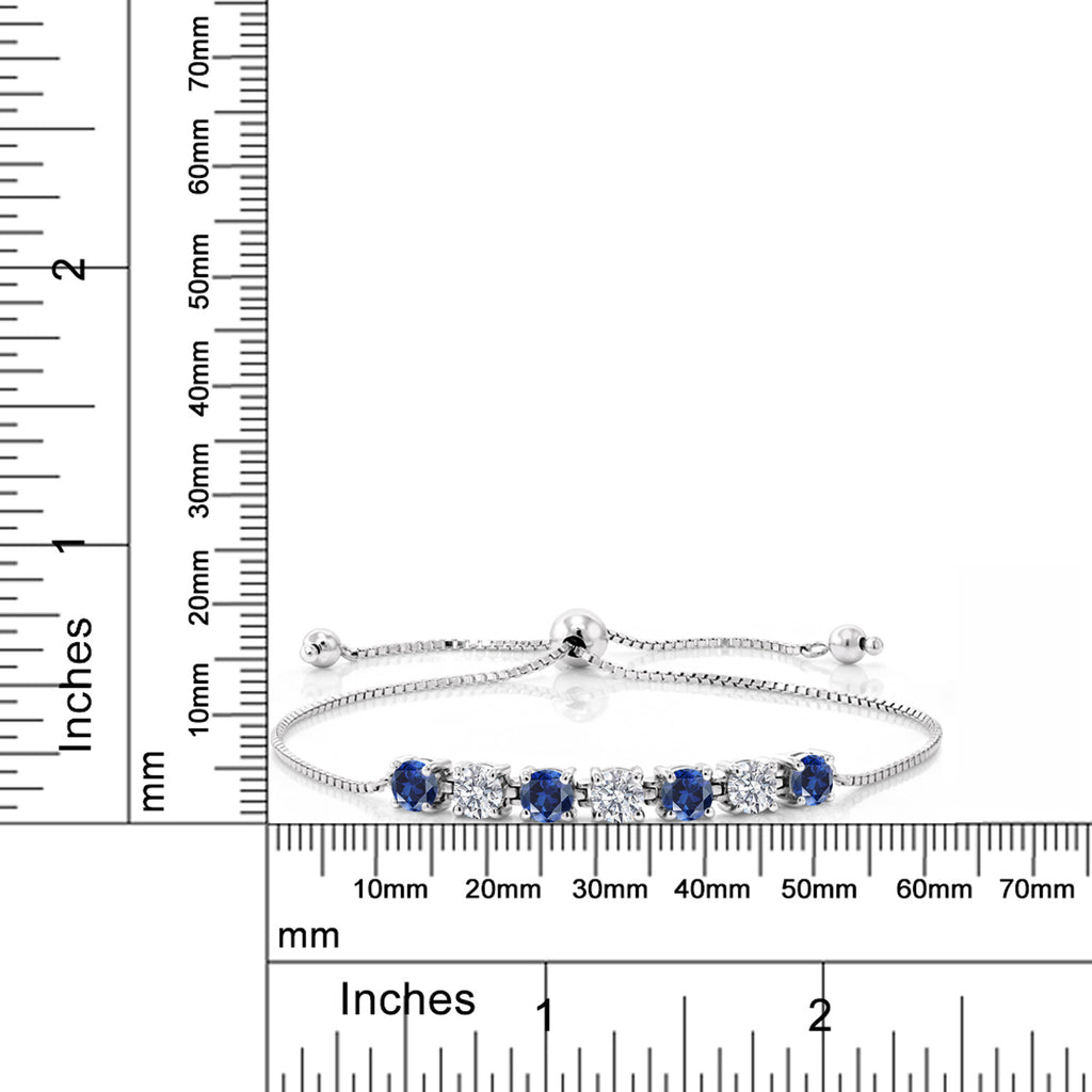 2-3 Cttw Alternate Tennis Bracelet For Women | Gemstone Birthstone and White Lab Grown Diamond | 925 Sterling Silver | Round 4.5MM | Adjustable Bolo Bracelet For Women