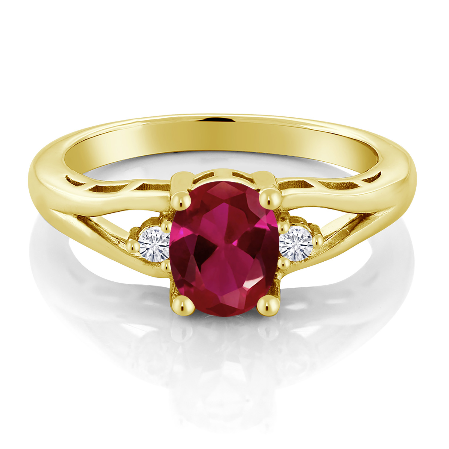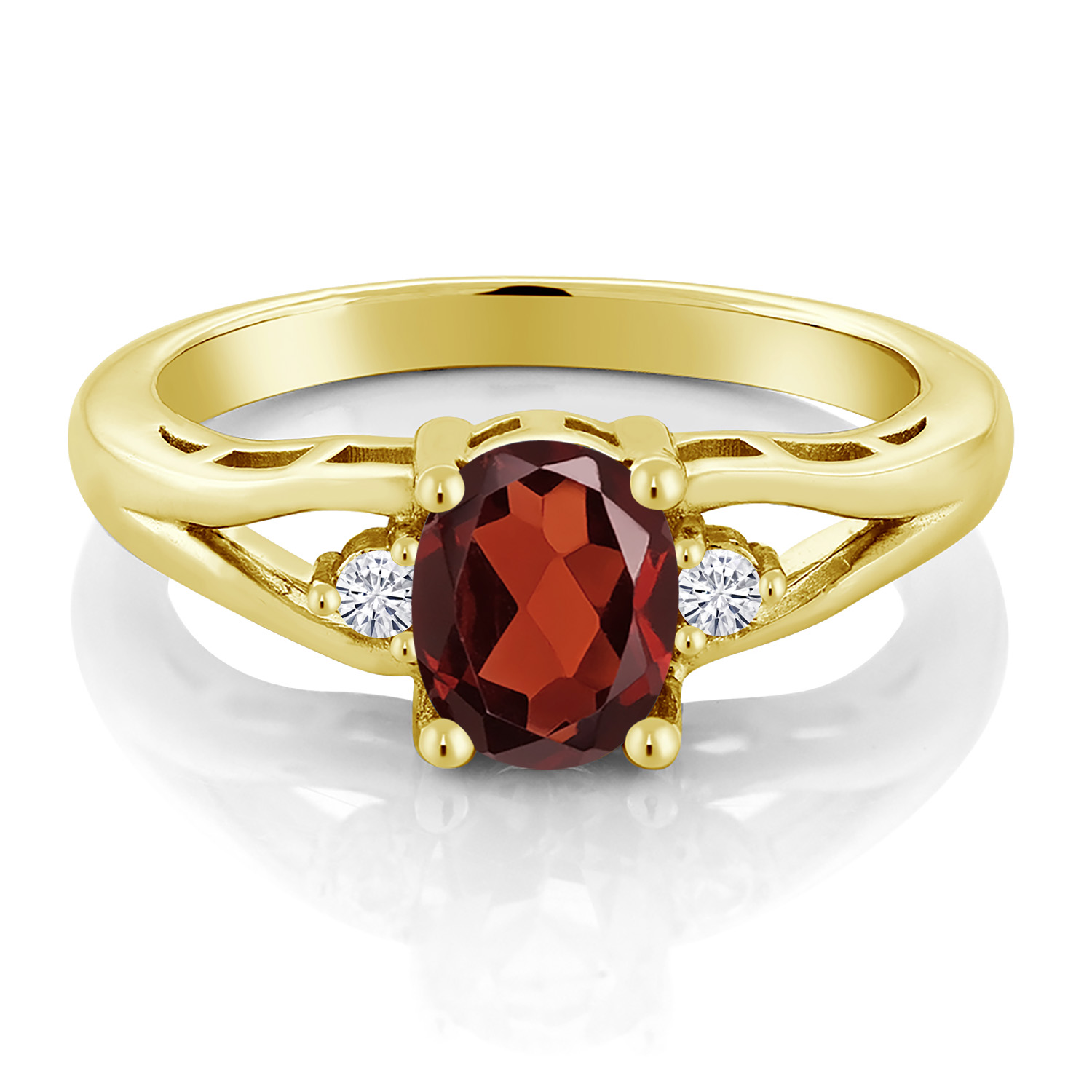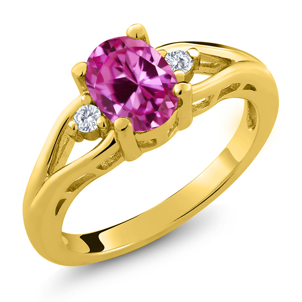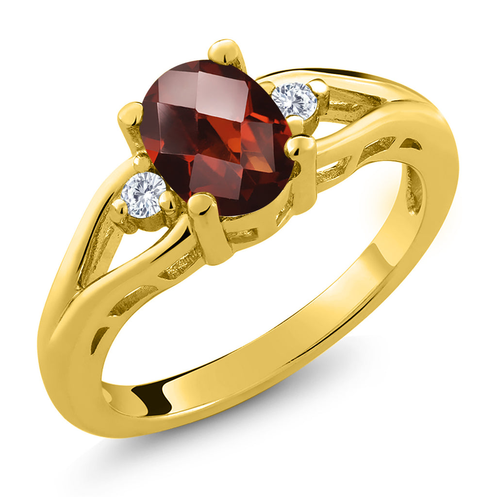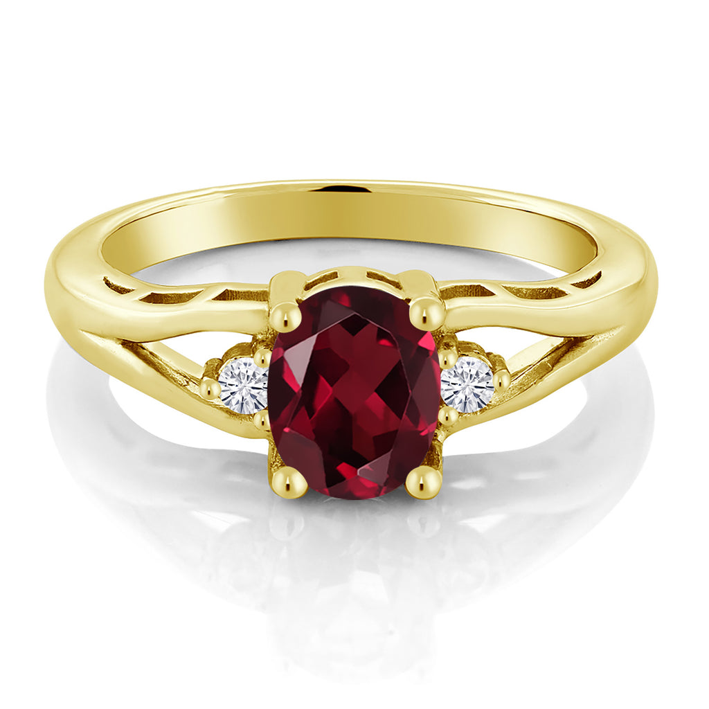 Gemstone Birthstone and White Moissanite 3-Stone Engagement Ring for Women | 18K Yellow Gold Plated Silver | Oval 8X6MM and Round 2MM | Elegant Three-Stone Wedding Anniversary Promise Ring | Sizes 5-9
