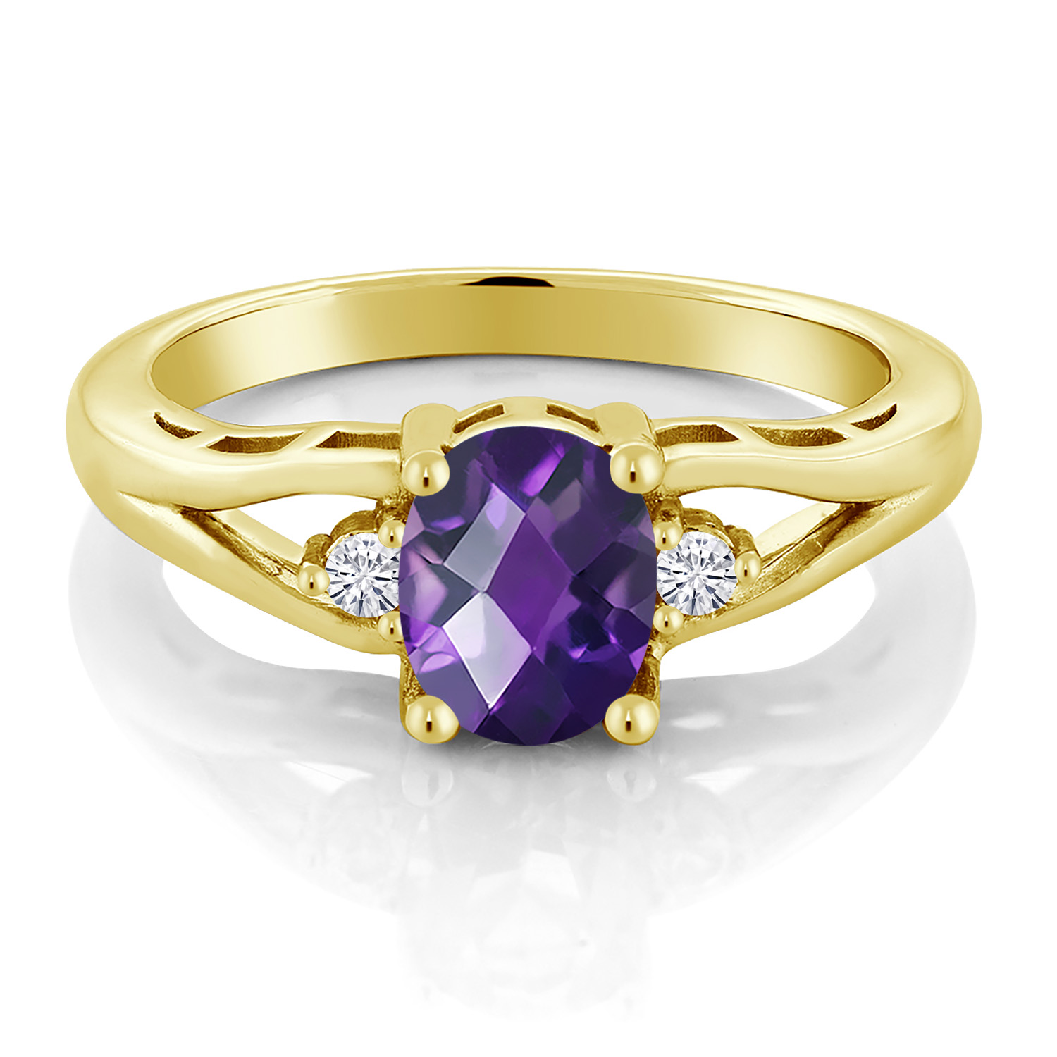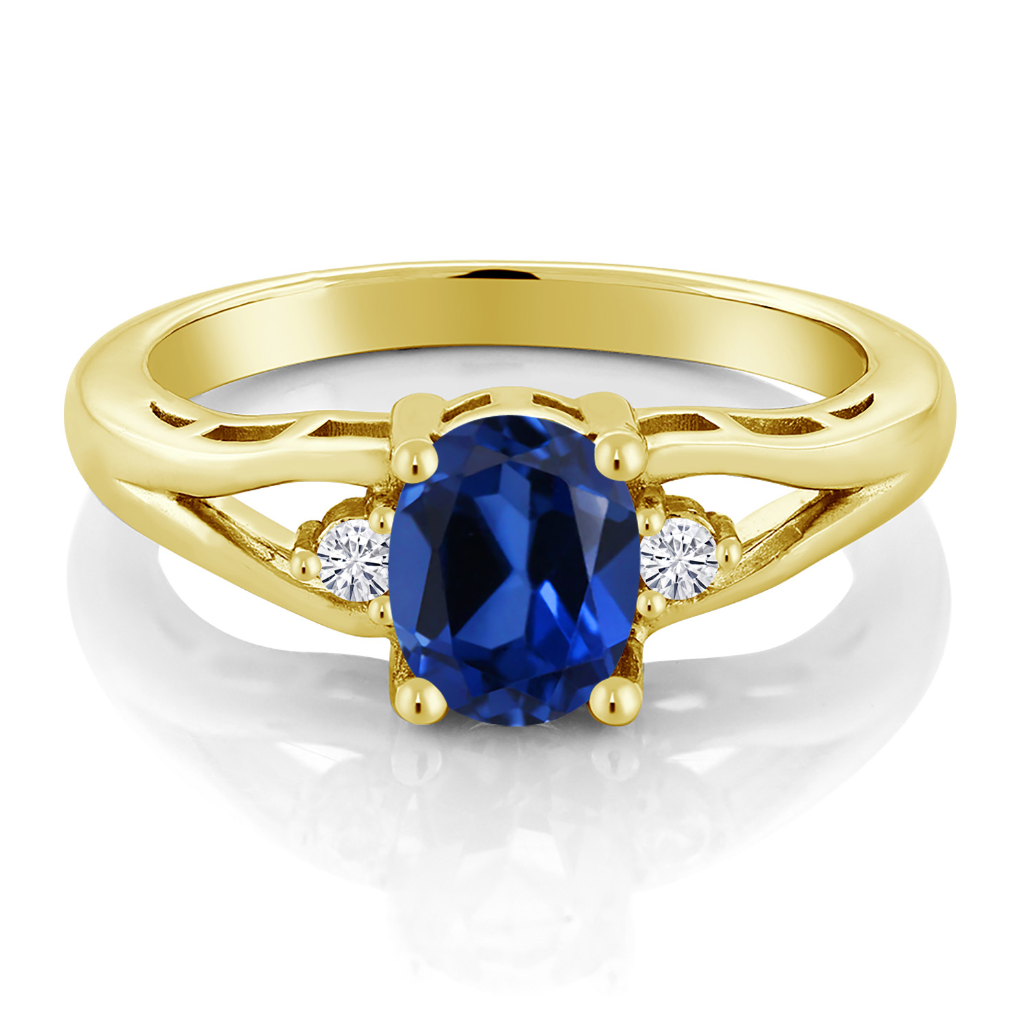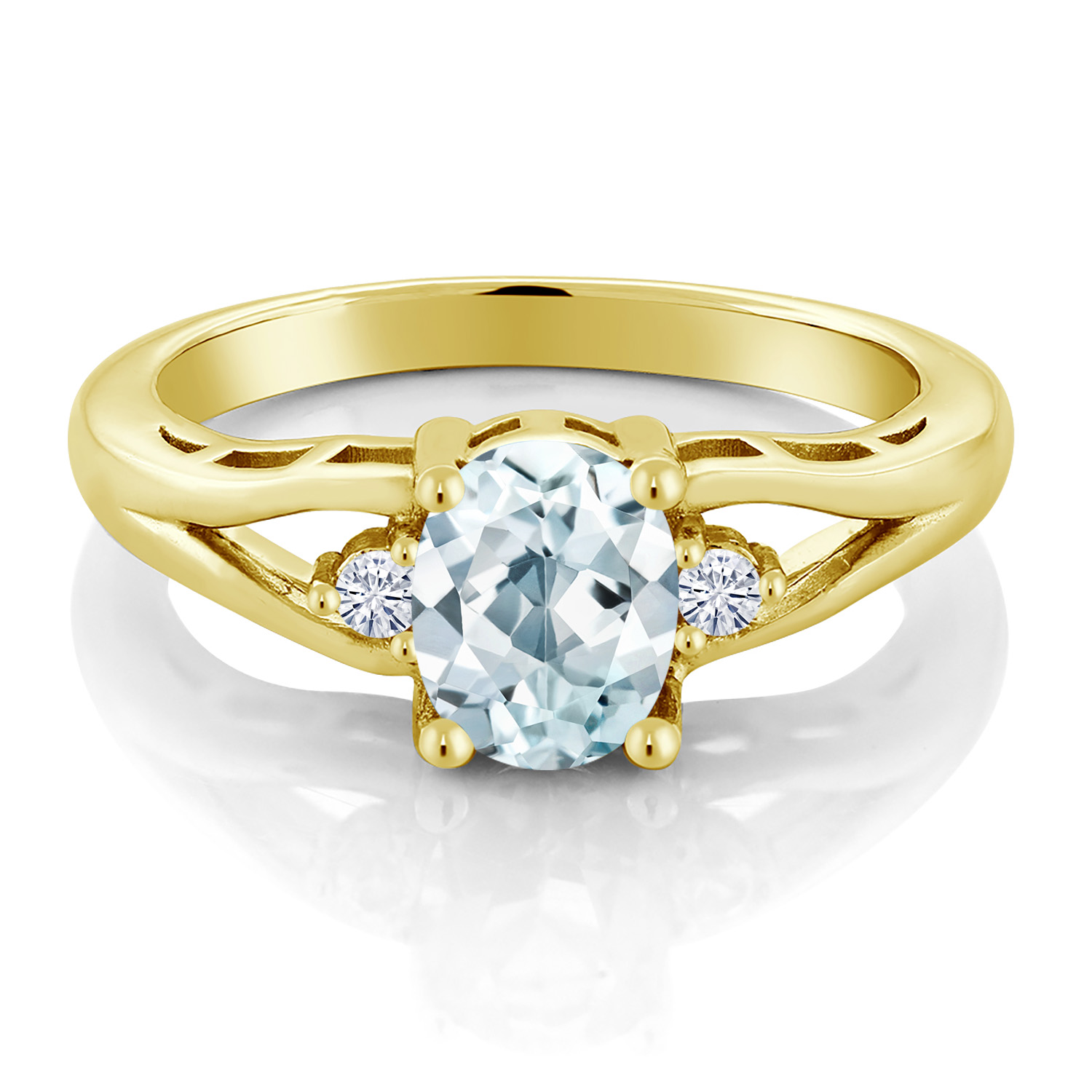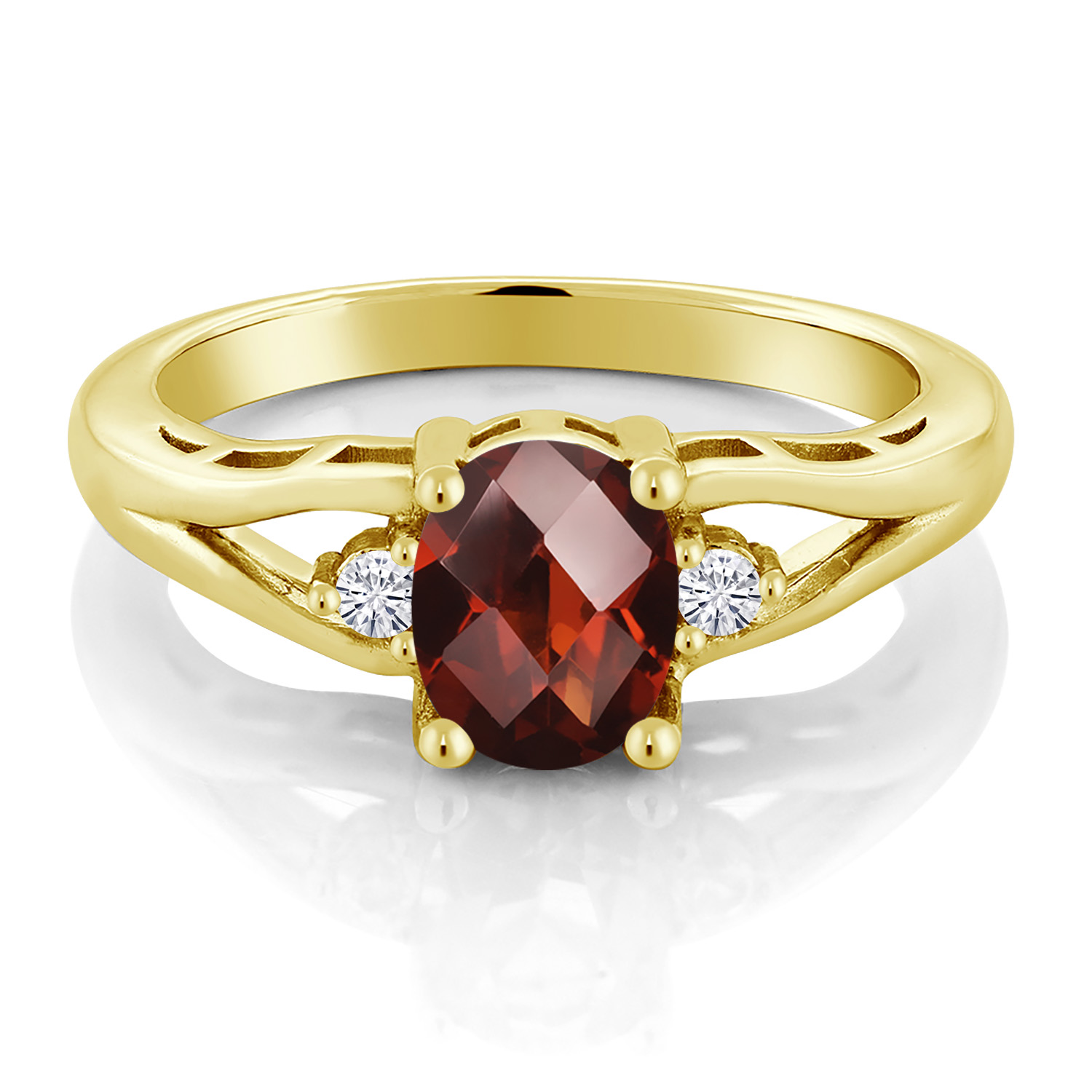 Gemstone Birthstone and White Moissanite 3-Stone Engagement Ring for Women | 18K Yellow Gold Plated Silver | Oval 8X6MM and Round 2MM | Elegant Three-Stone Wedding Anniversary Promise Ring | Sizes 5-9