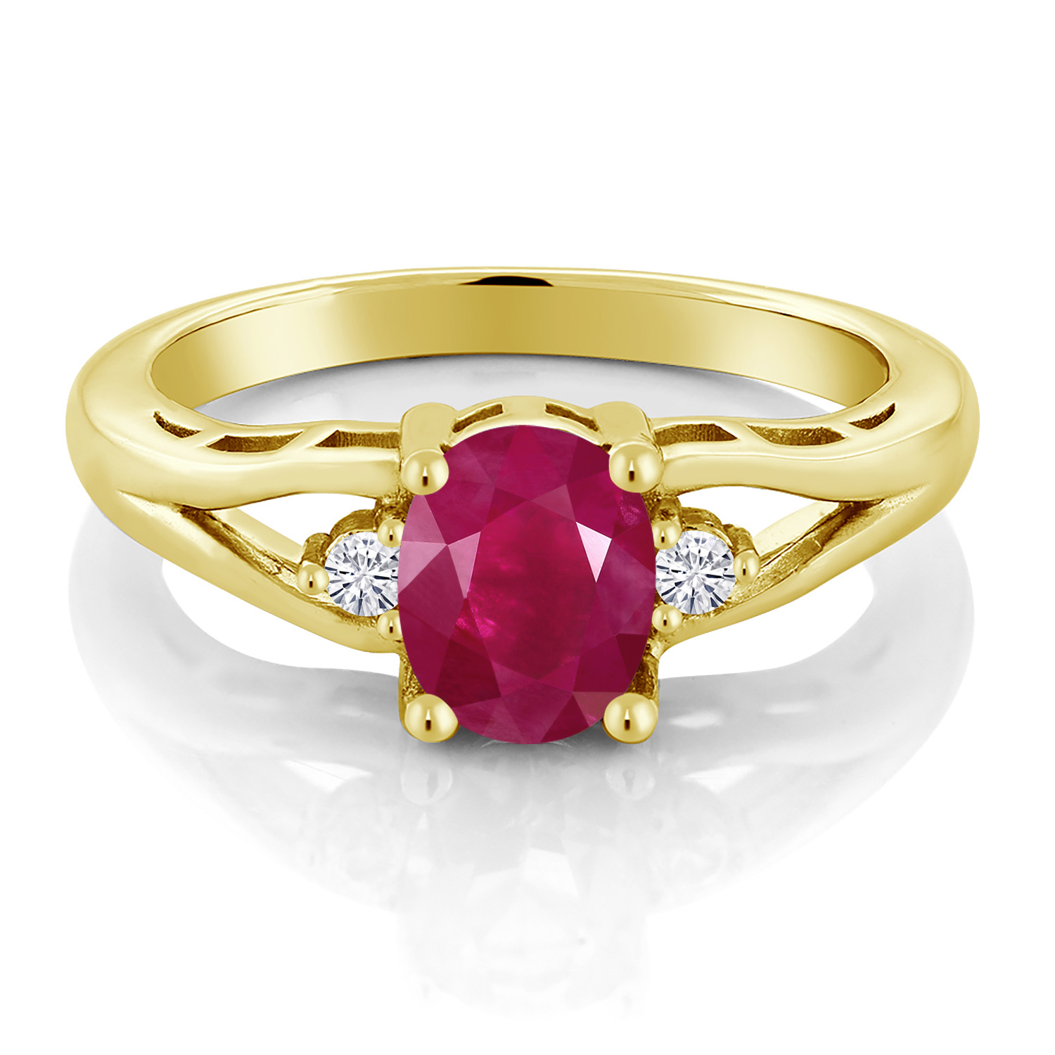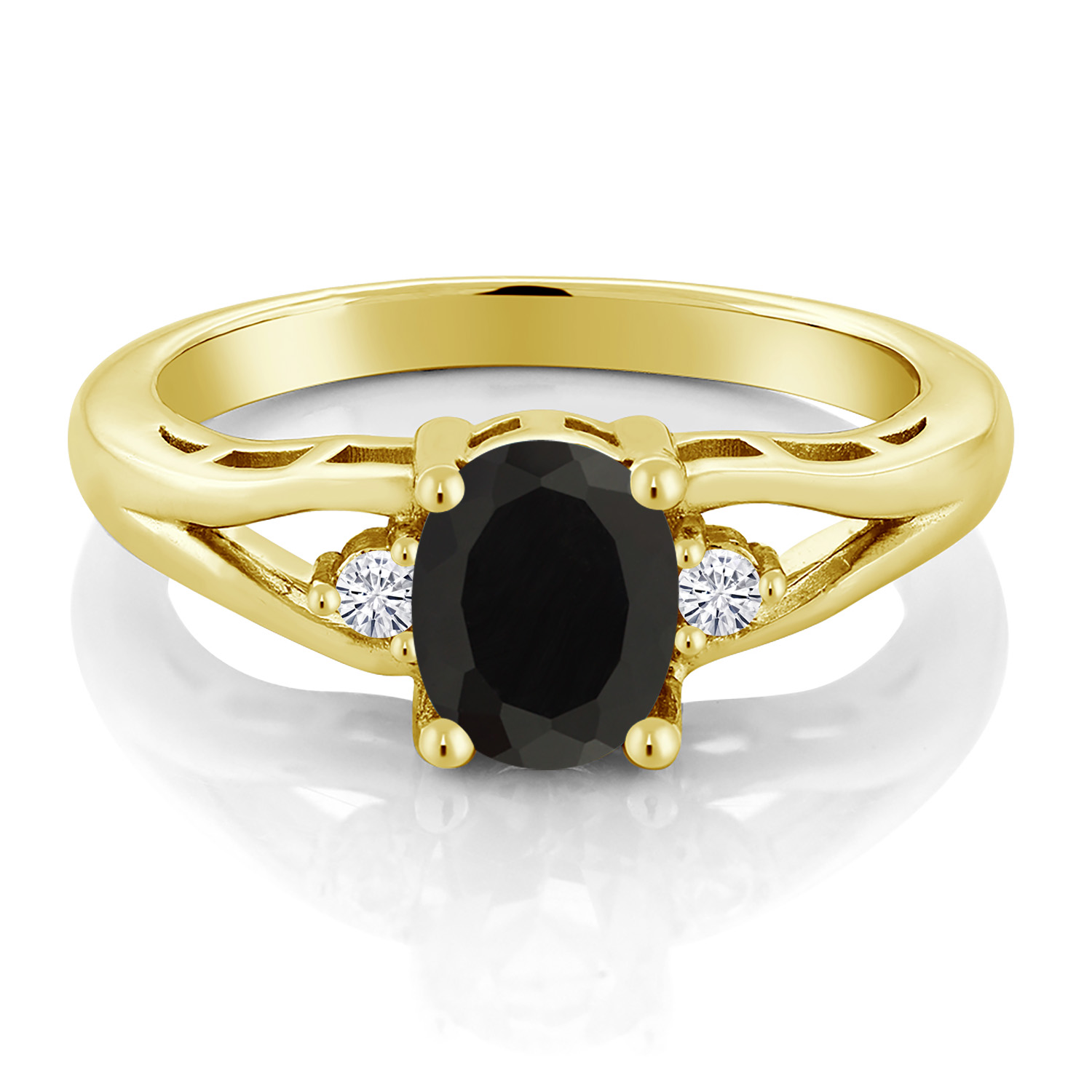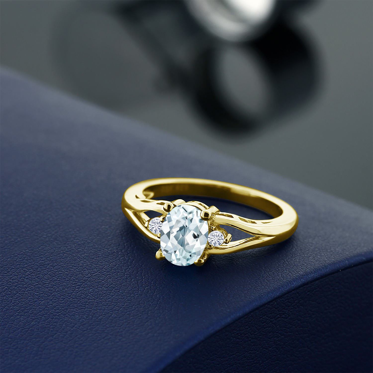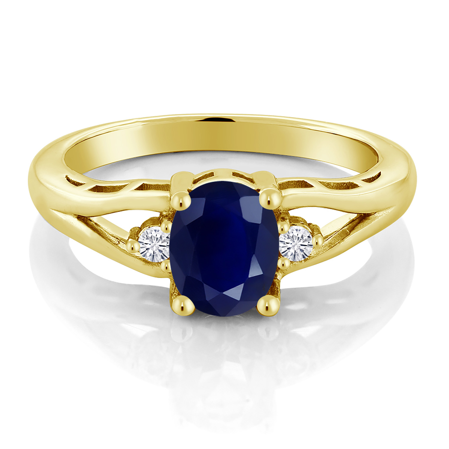 Gemstone Birthstone and White Moissanite 3-Stone Engagement Ring for Women | 18K Yellow Gold Plated Silver | Oval 8X6MM and Round 2MM | Elegant Three-Stone Wedding Anniversary Promise Ring | Sizes 5-9