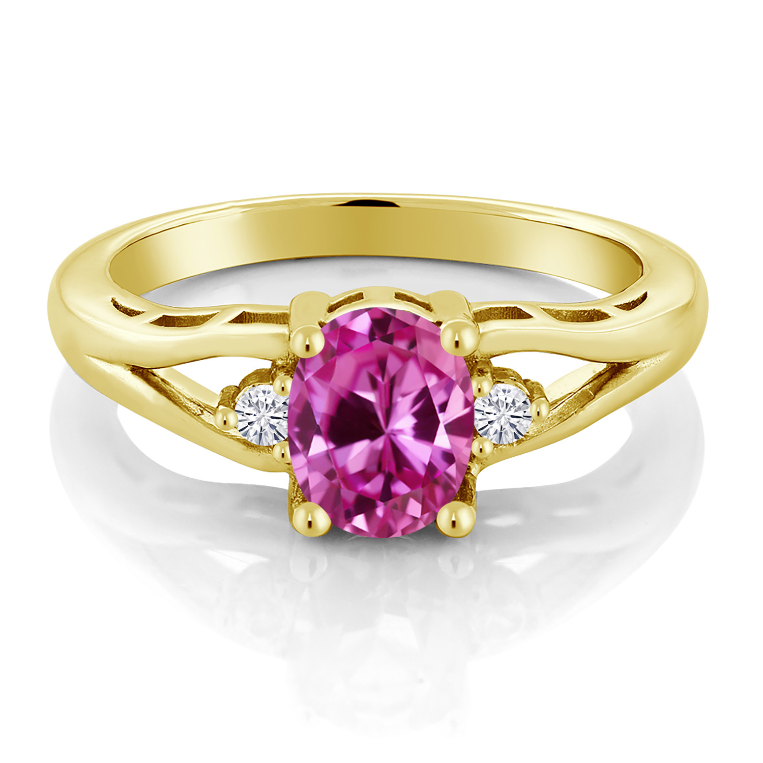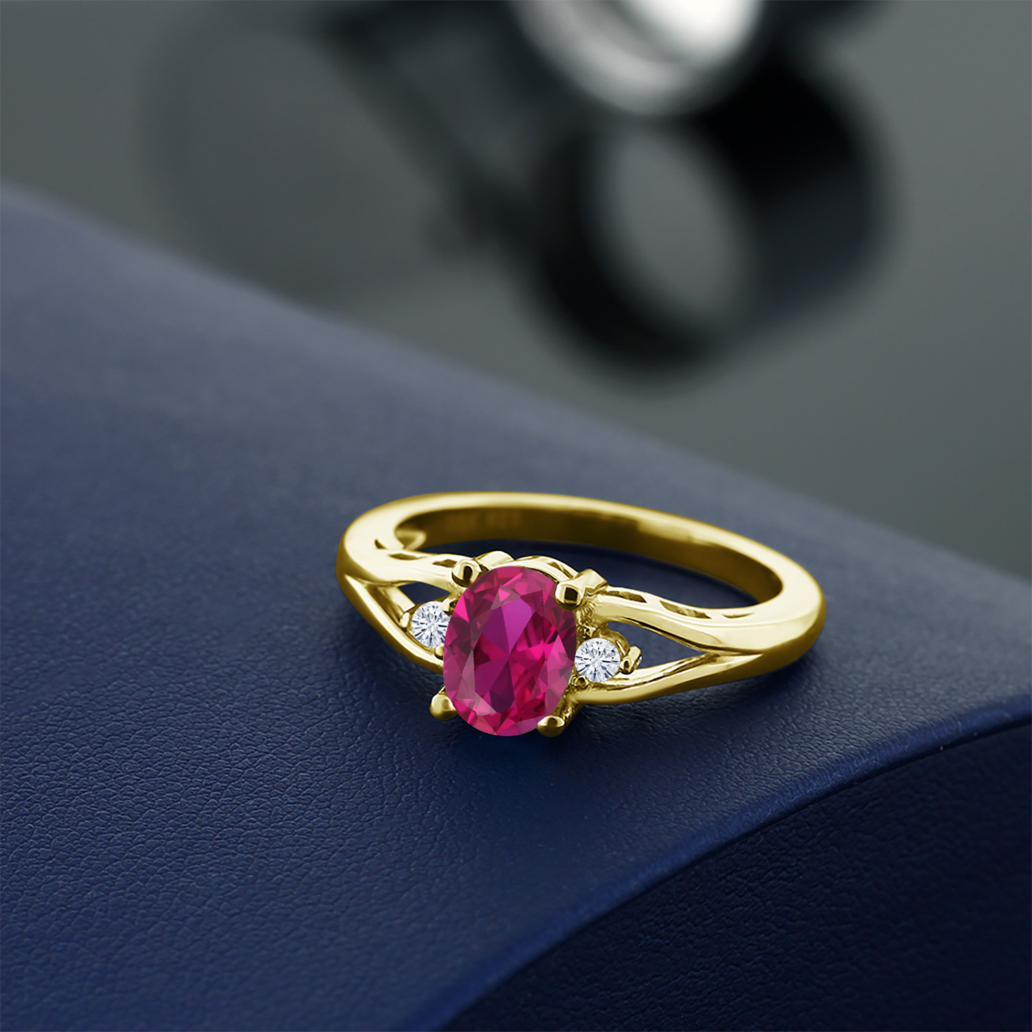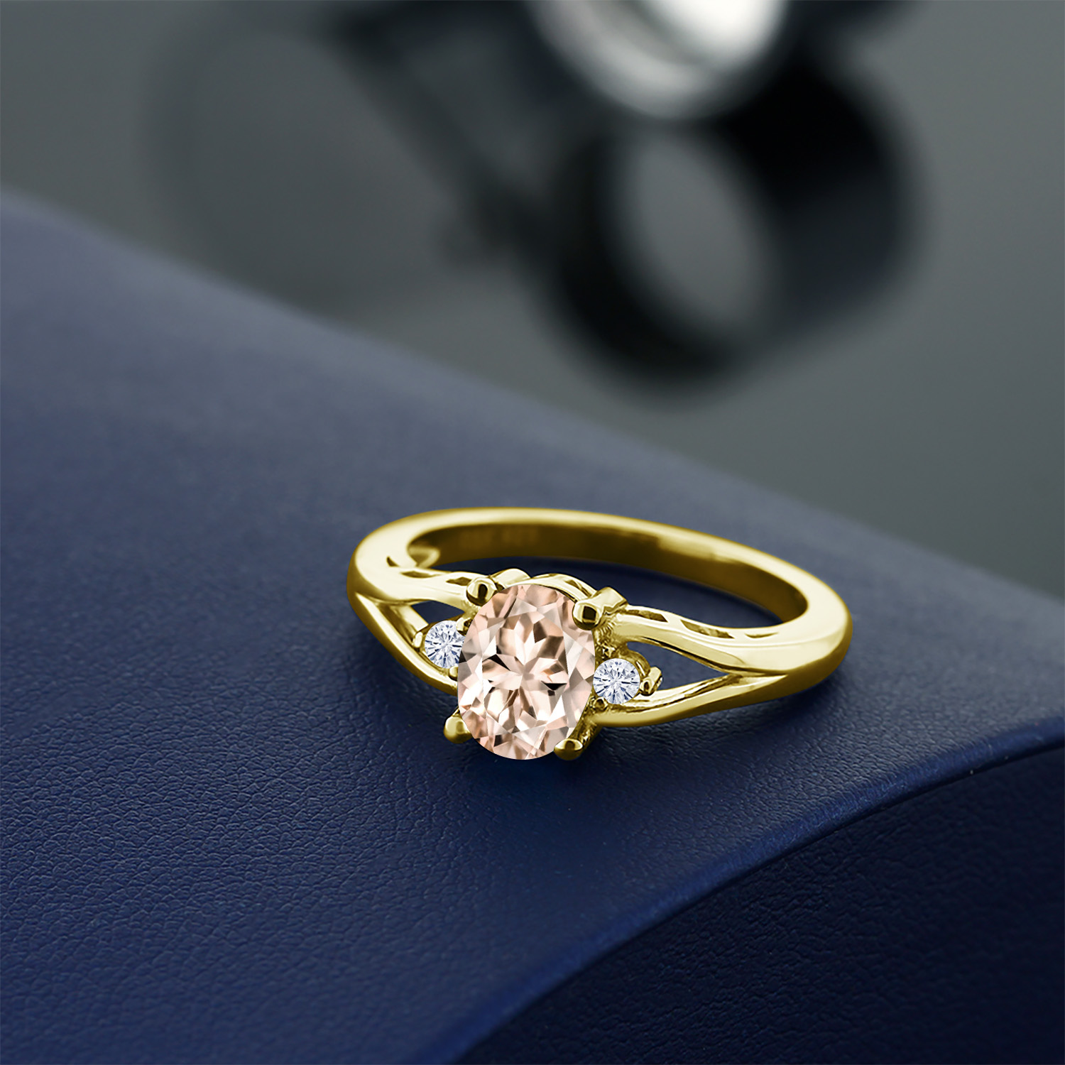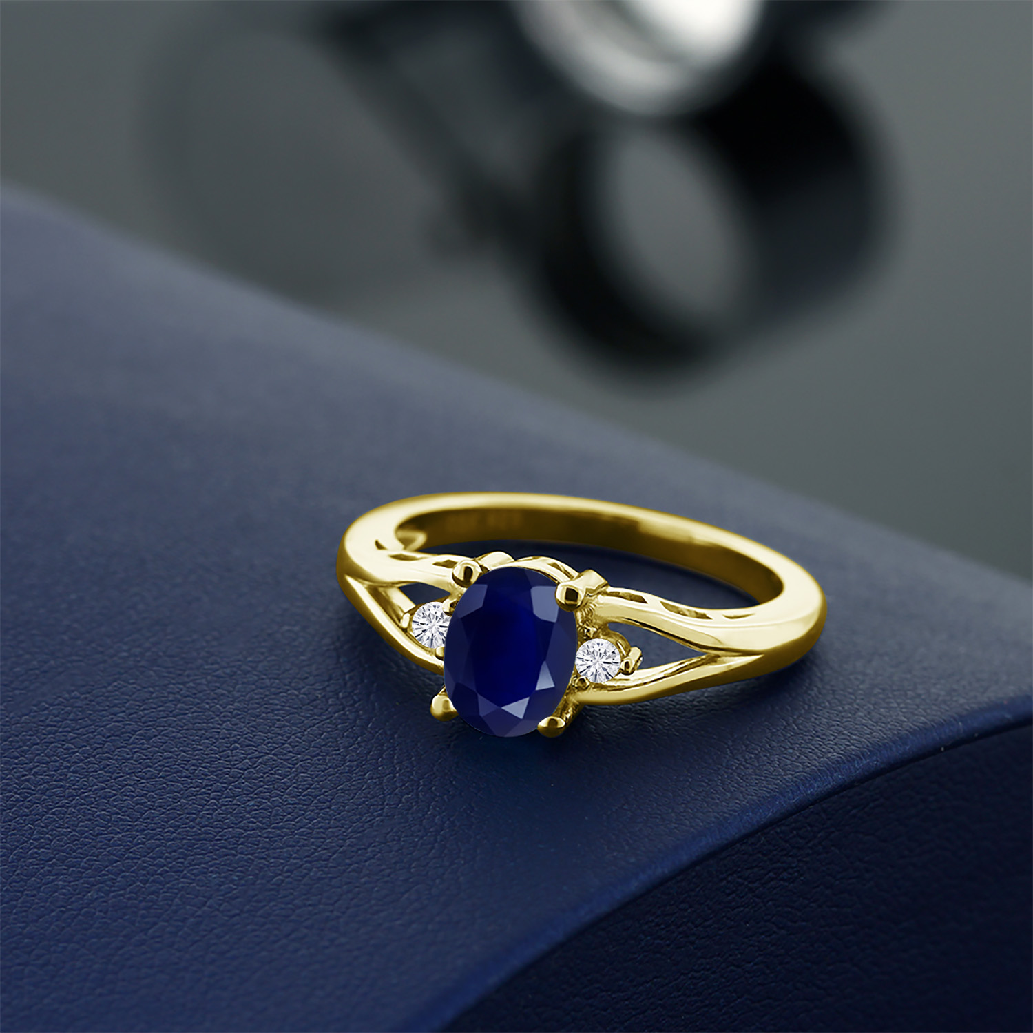 Gemstone Birthstone and White Moissanite 3-Stone Engagement Ring for Women | 18K Yellow Gold Plated Silver | Oval 8X6MM and Round 2MM | Elegant Three-Stone Wedding Anniversary Promise Ring | Sizes 5-9