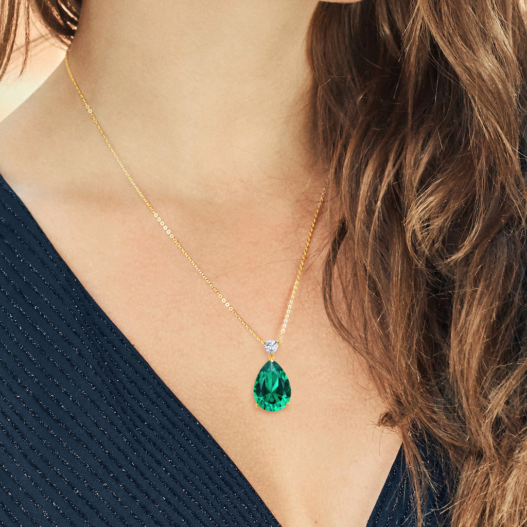 CAPTIVATING GEMSTONE ELEGANCE: The centerpiece of this stunning necklace features a lavish 18X13MM pear-shaped gemstone, harmoniously complemented by a 5MM trillion accent stone. With its classic teardrop silhouette, the pendant offers a brilliant play of light, showcasing the gemstone's clarity and depth. As a birthstone option, this piece not only captures attention but also resonates personally with its wearer, making it a cherished symbol of individuality.