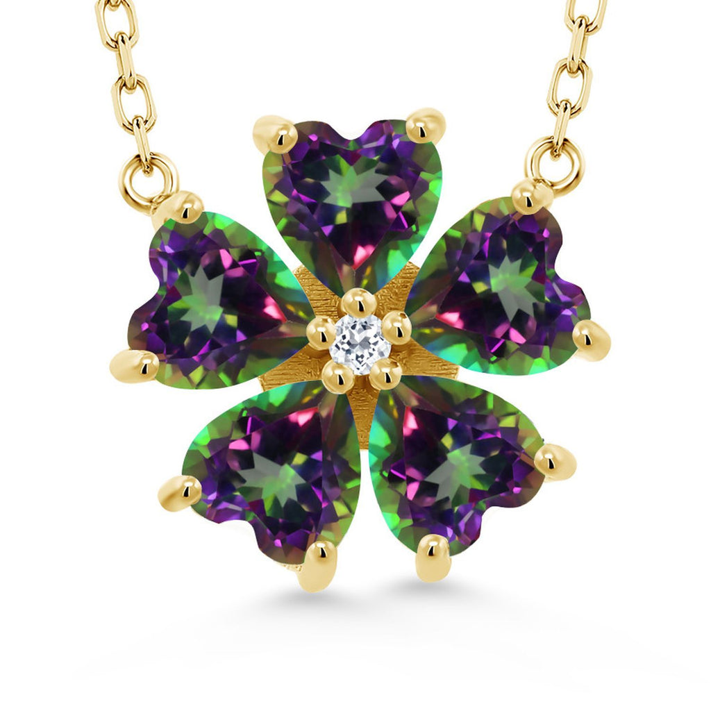 FLORAL DESIGN WITH SPARKLING WHITE TOPAZ: The pendant features a stunning floral motif, with heart-shaped gemstone petals and a sparkling 2MM round white topaz center. This intricate design is a testament to exceptional craftsmanship, blending contemporary style with classic elegance. The attention to detail in each petal and the radiant center stone elevates this piece, making it a standout accessory for any occasion.