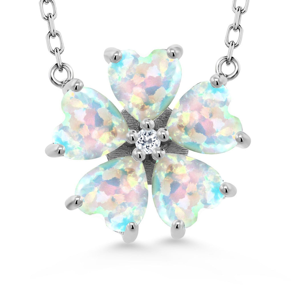 Gemstone Birthstone and White Topaz Flower Pendant Necklace for Women | 925 Sterling Silver | Heart Shape 6MM Petals and Round 2MM Center | With 18 Inch Chain | Fine Jewelry for Her Mom Wife