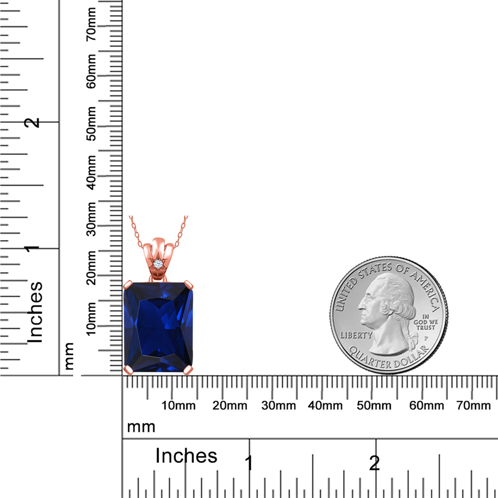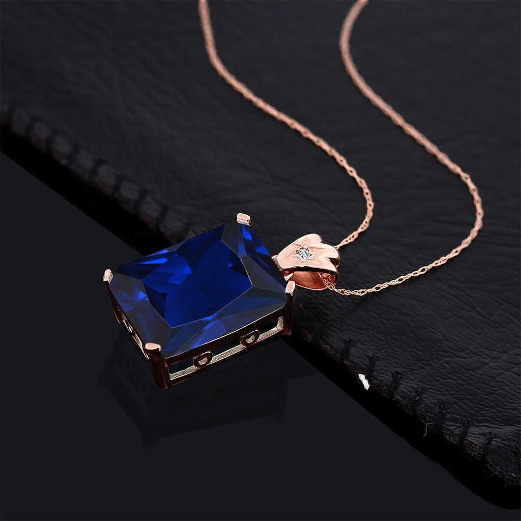 Gemstone Birthstone and White Topaz Pendant Necklace for Women in 18K Rose Gold Plated Silver | Emerald Cut 18X13MM with 1.8MM Accent in Star-Set Bail | 18 Inch Chain | Fine Jewelry for Her Mom Wife