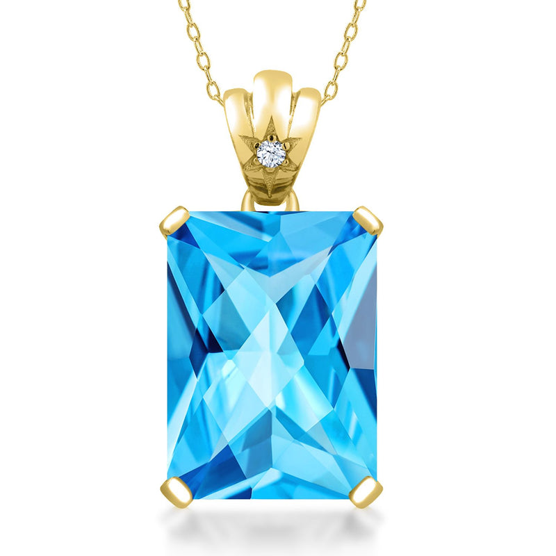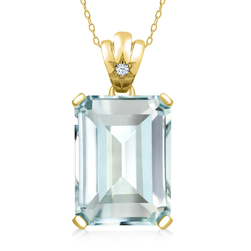 Gemstone Birthstone and White Topaz Pendant Necklace for Women in 18K Yellow Gold Plated Silver | Emerald Cut 18X13MM with 1.8MM Accent in Star-Set Bail | 18 Inch Chain | Fine Jewelry for Her Mom Wife